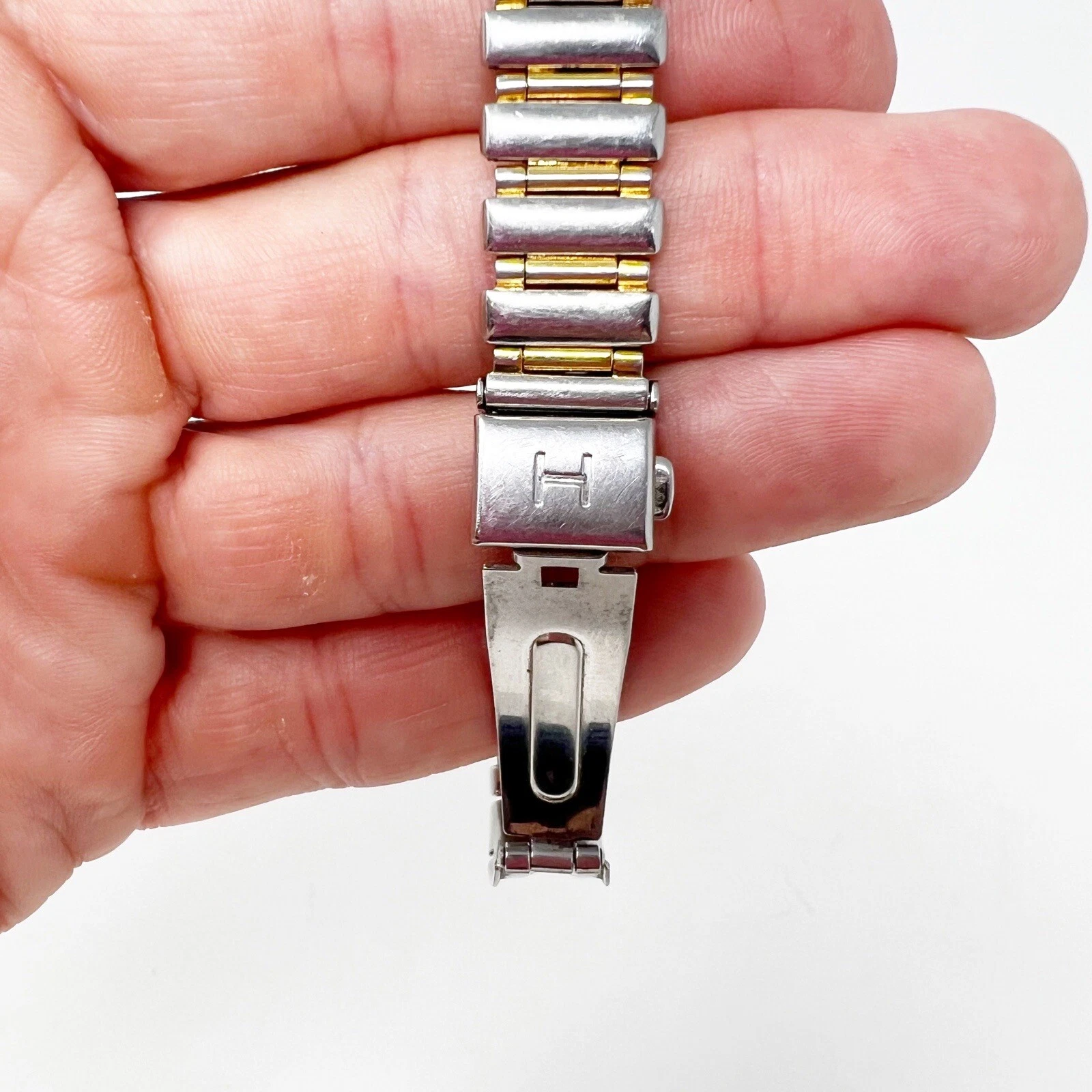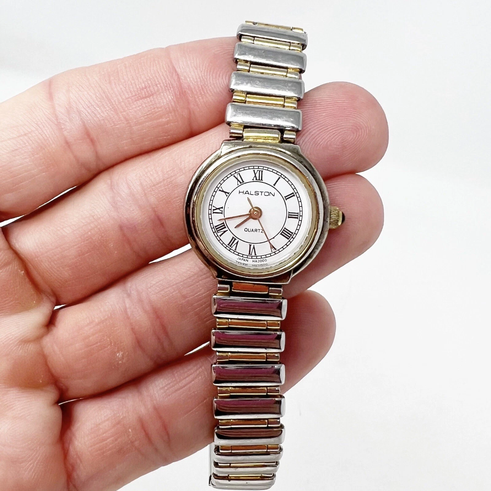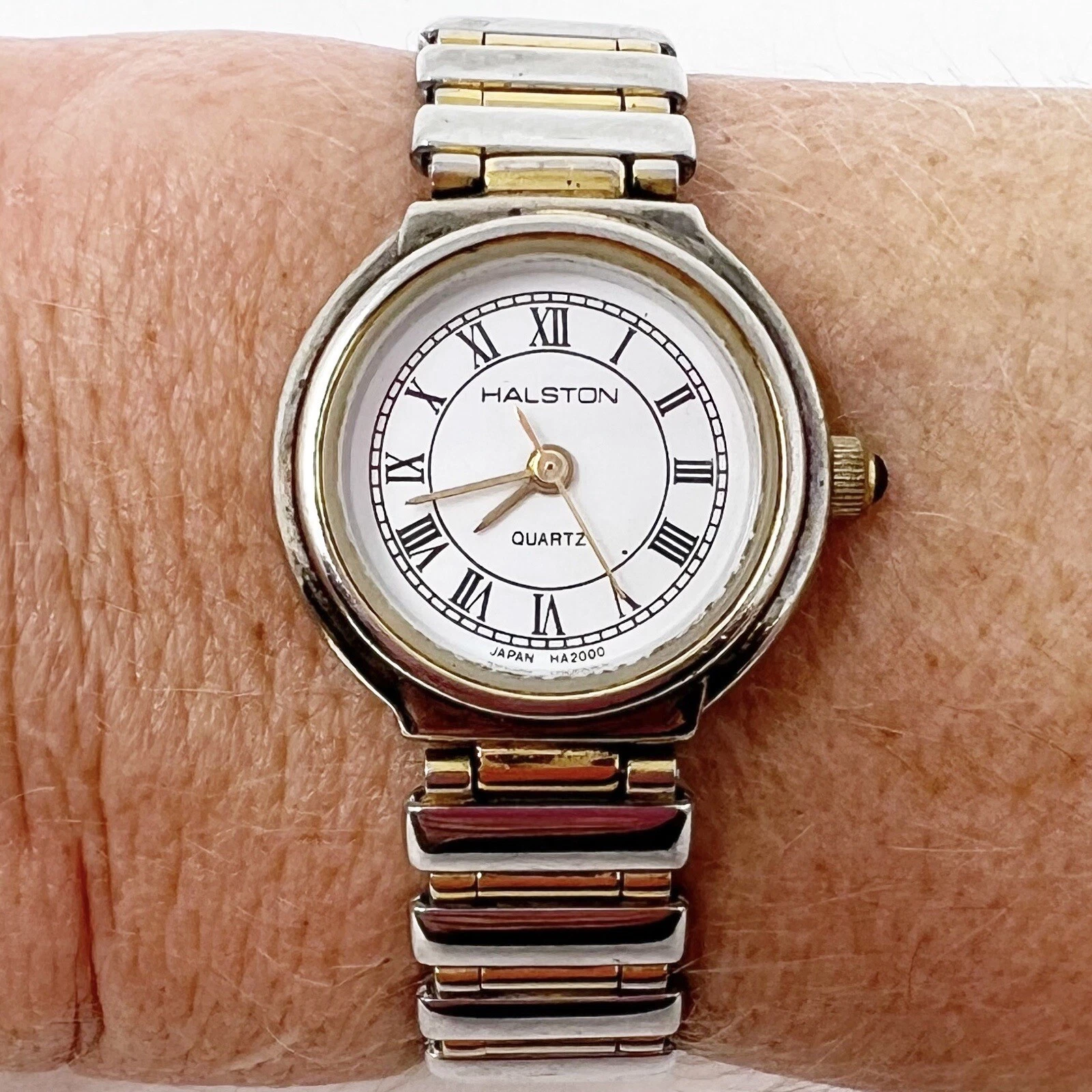 HALSTON SILVER/GOLD TONE ROMAN NUMERAL WOMENS WATCH