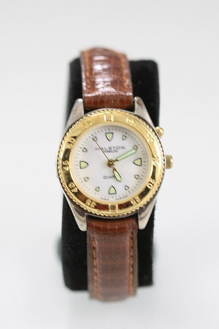 Halston Watch Women Stainless Gold Silver WR Leather Brown Light White Quartz