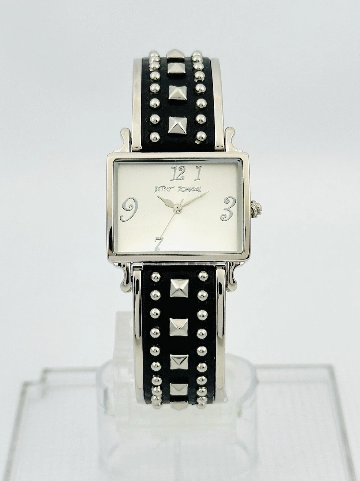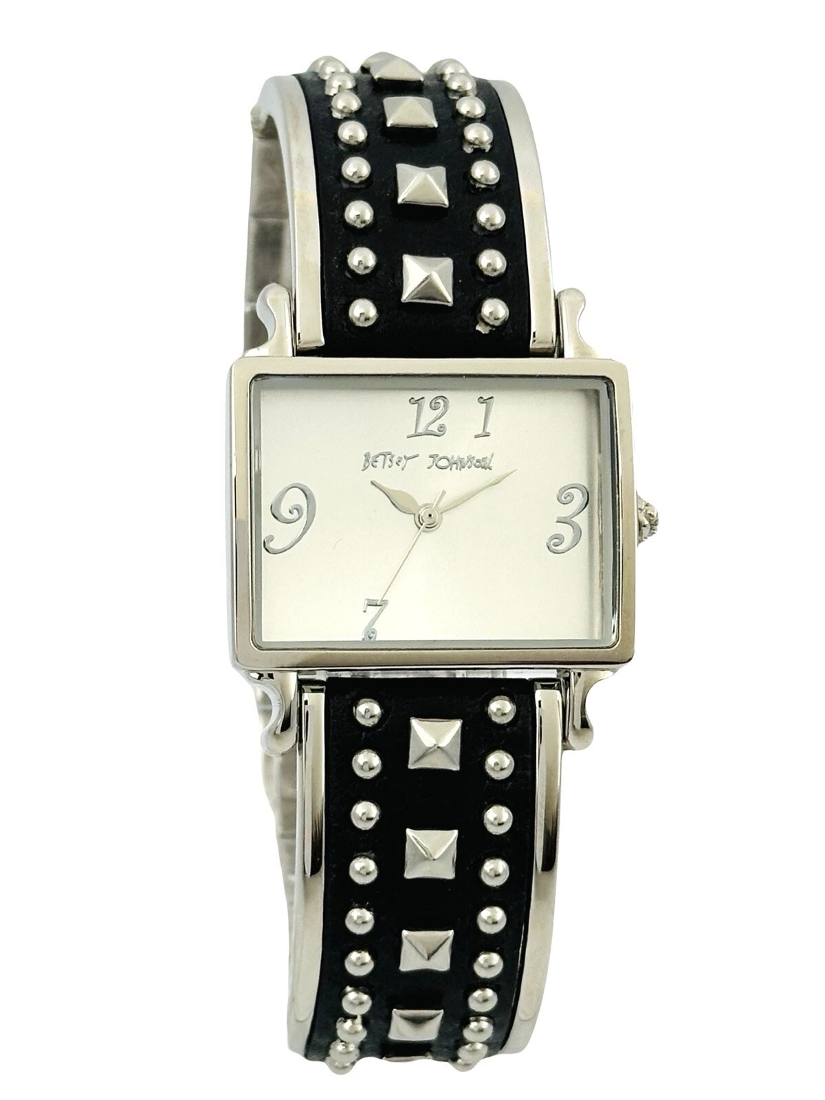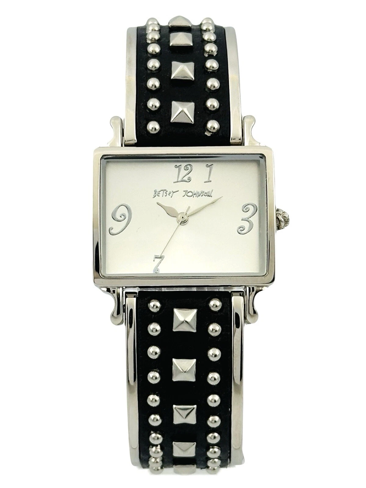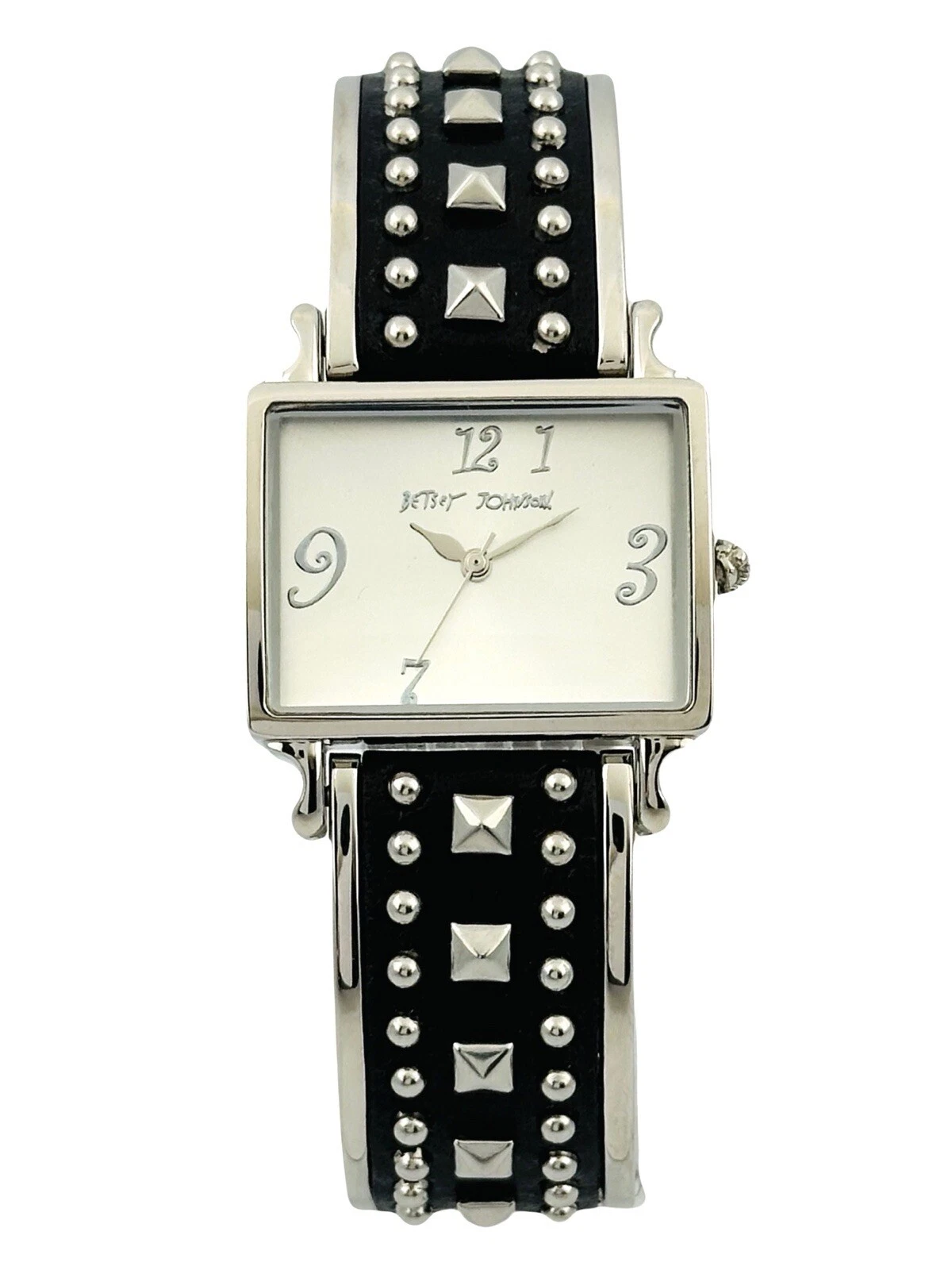 Betsey Johnson Women's BJ4050 Leather and Grommet Silver Studded Band Watch
