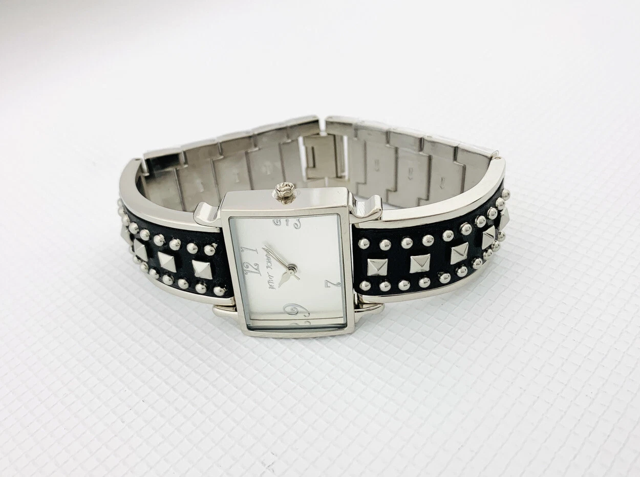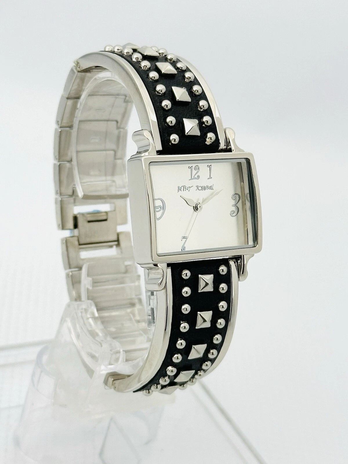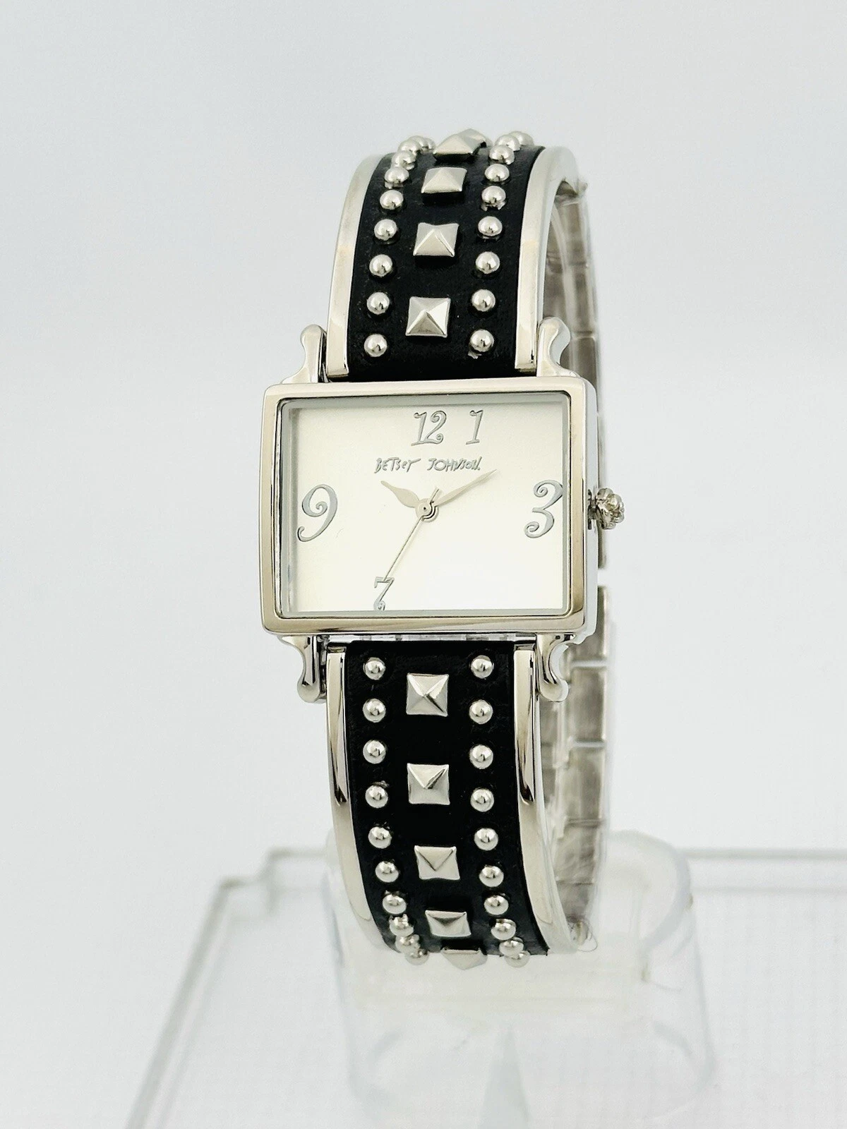Betsey Johnson Women's BJ4050 Leather and Grommet Silver Studded Band Watch