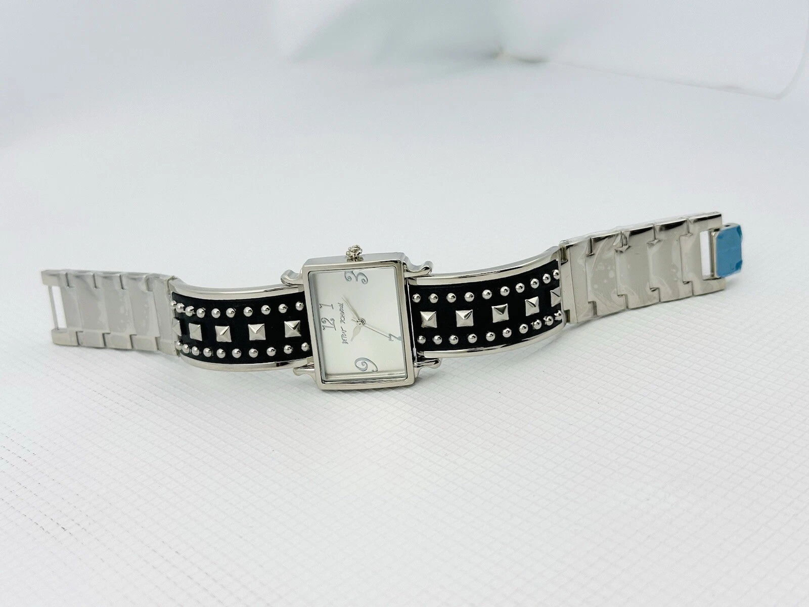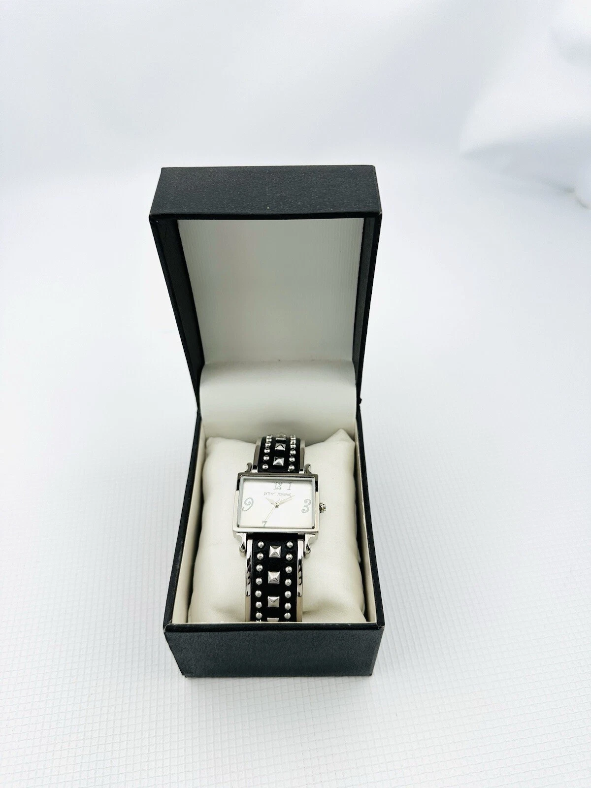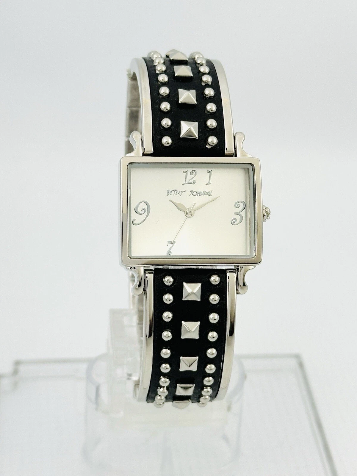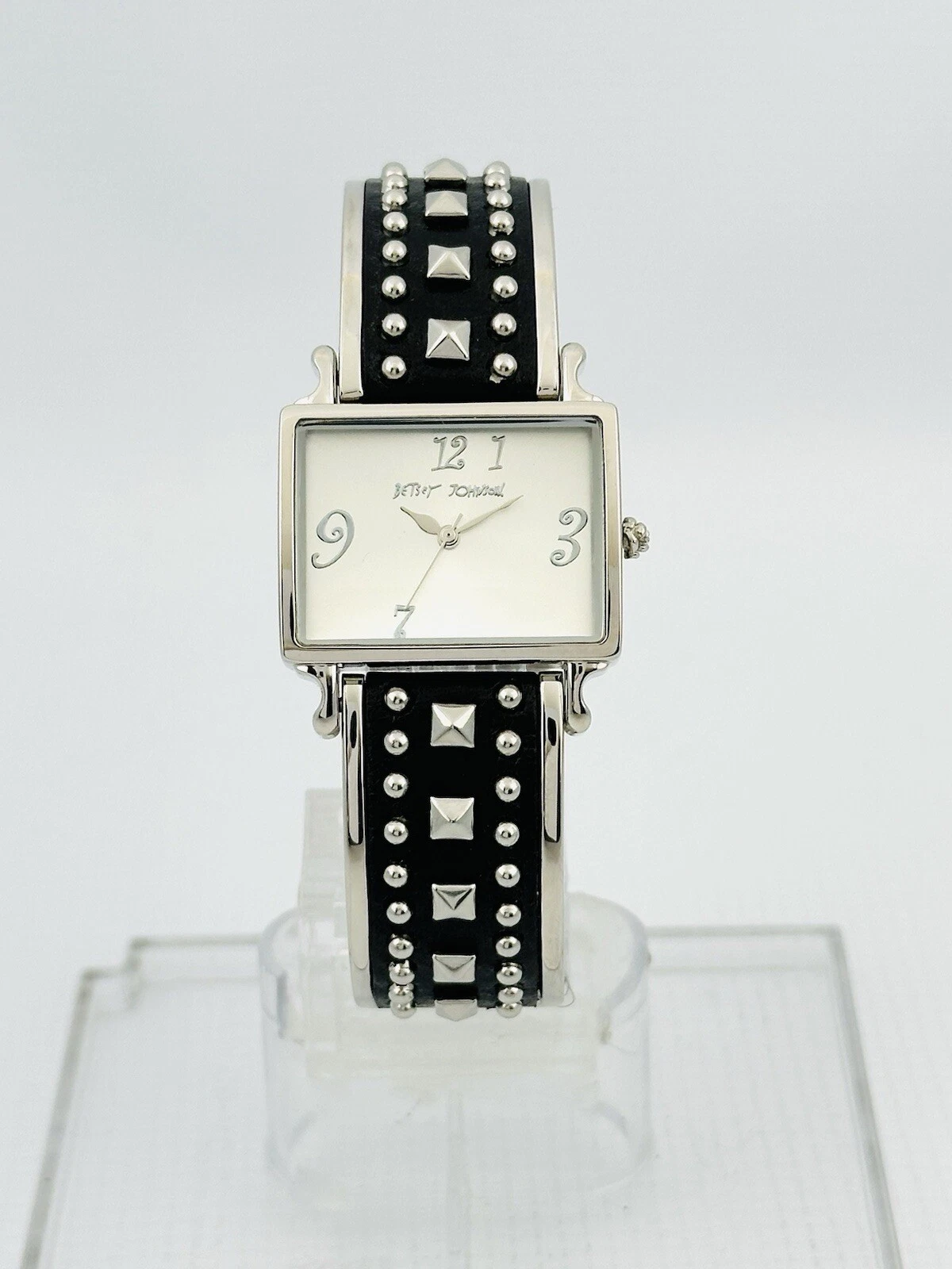 Betsey Johnson Women's BJ4050 Leather and Grommet Silver Studded Band Watch