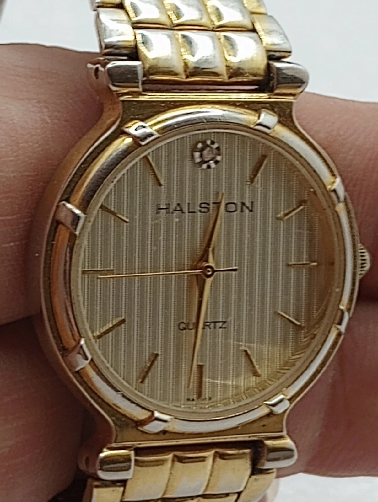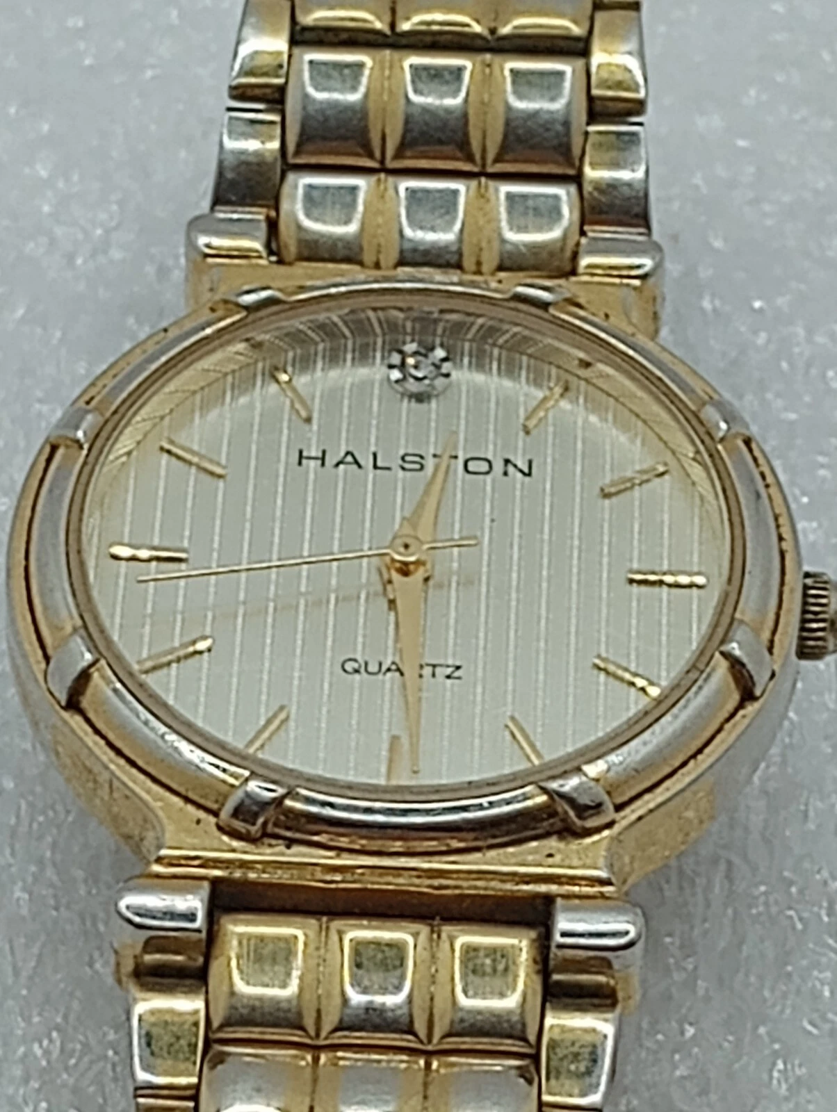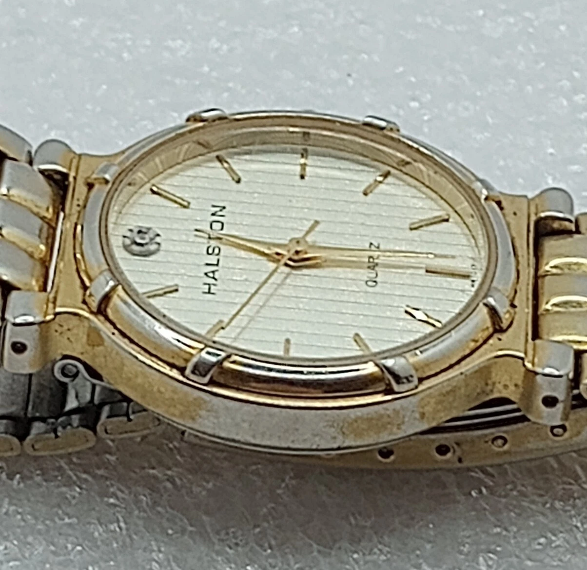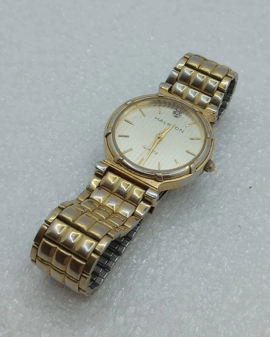 Vintage Halston Men’s Gold Tone Quartz Watch ~Swiss Movement Parts~ Used