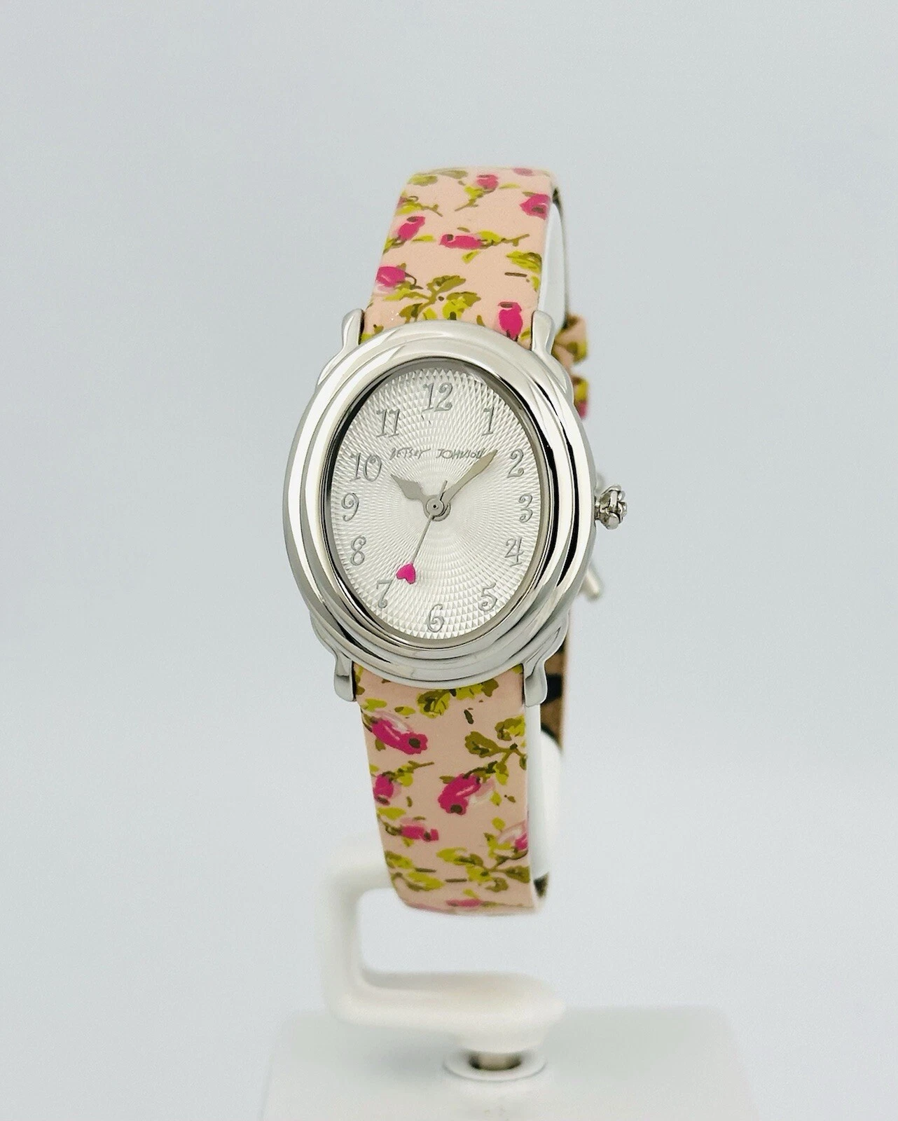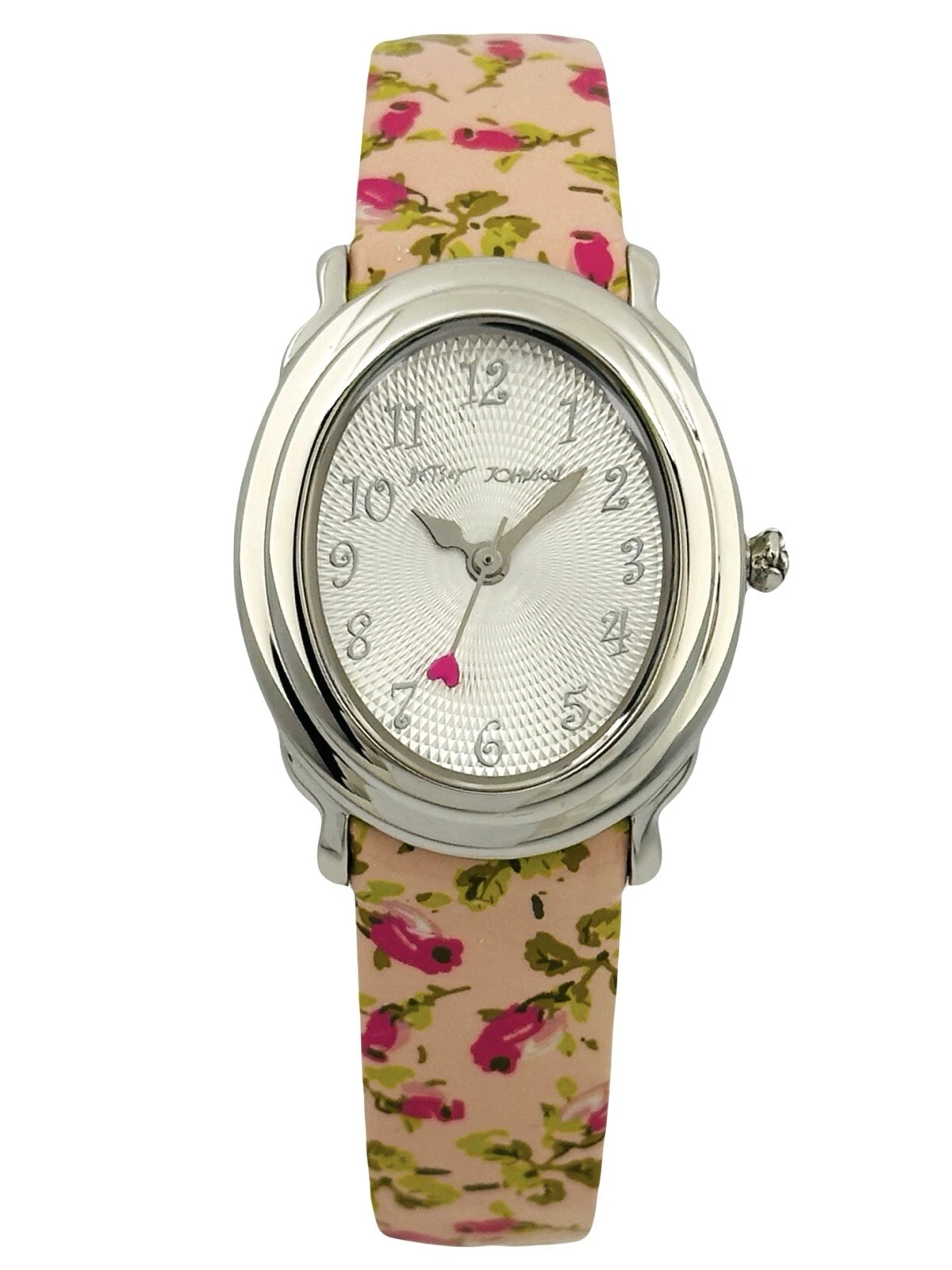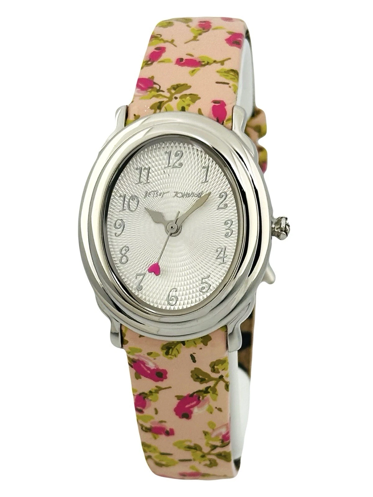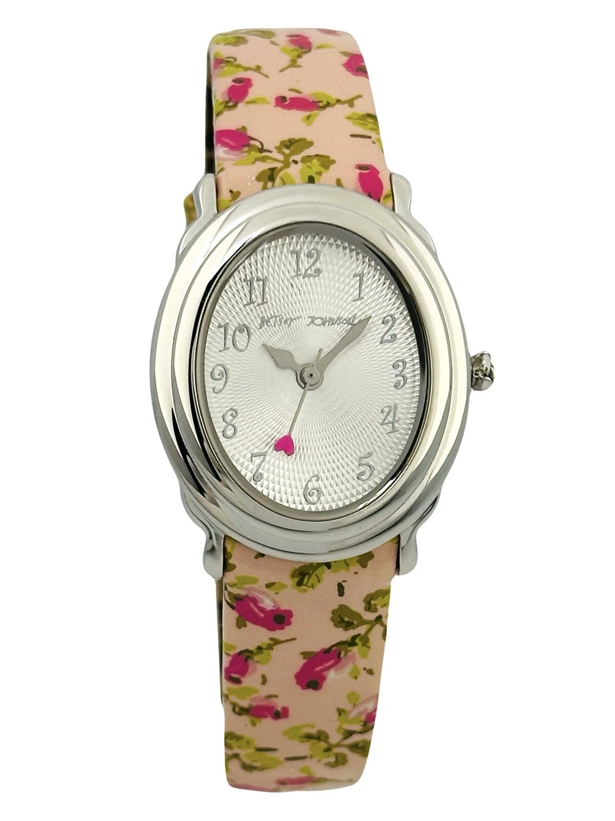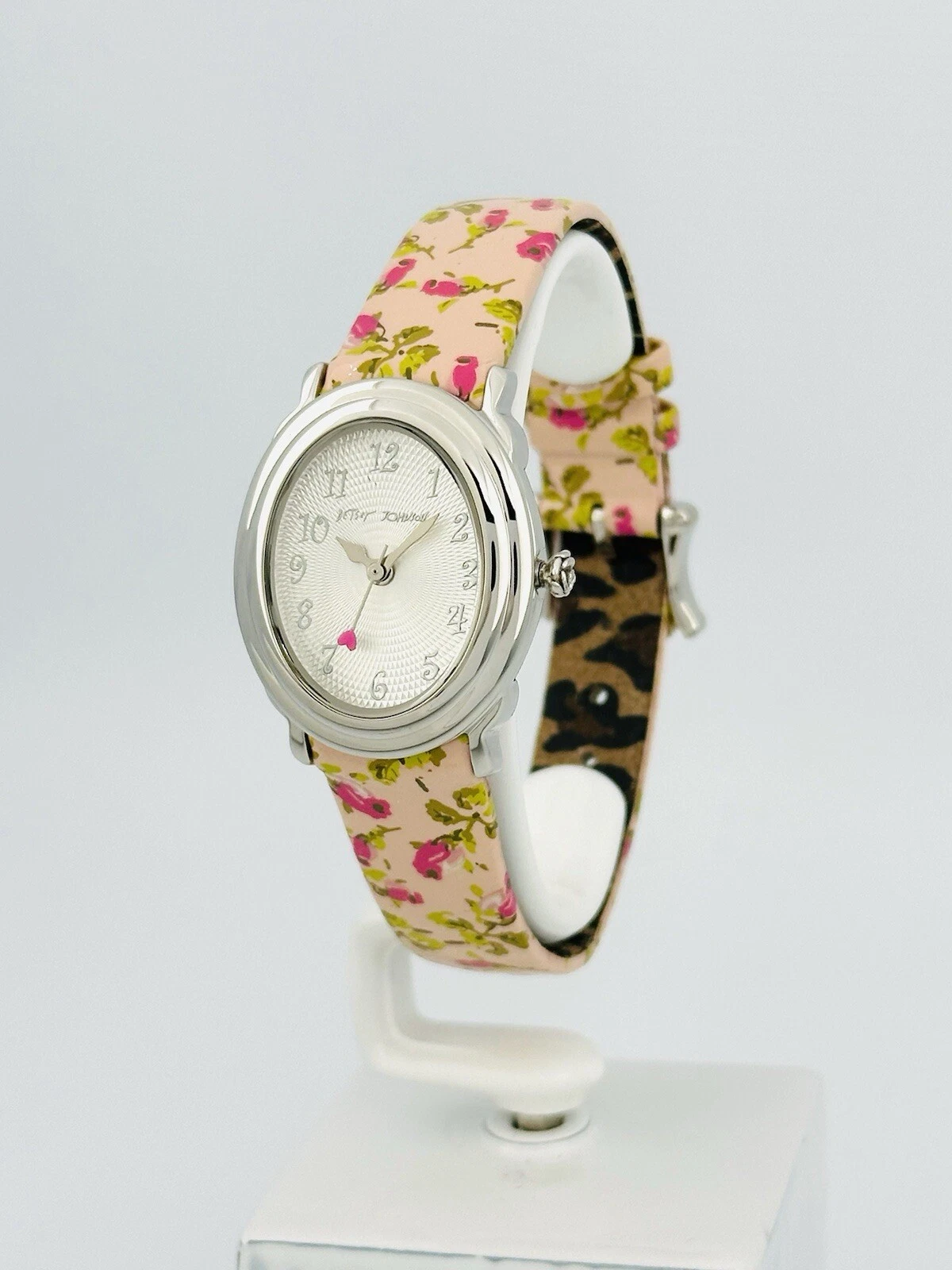 Betsey Johnson Women’s BJ2087 Pink Flower Strap Heart Hand Stainless Babd Watch