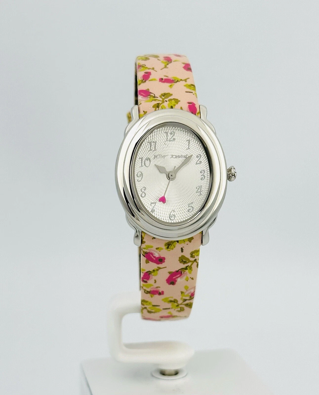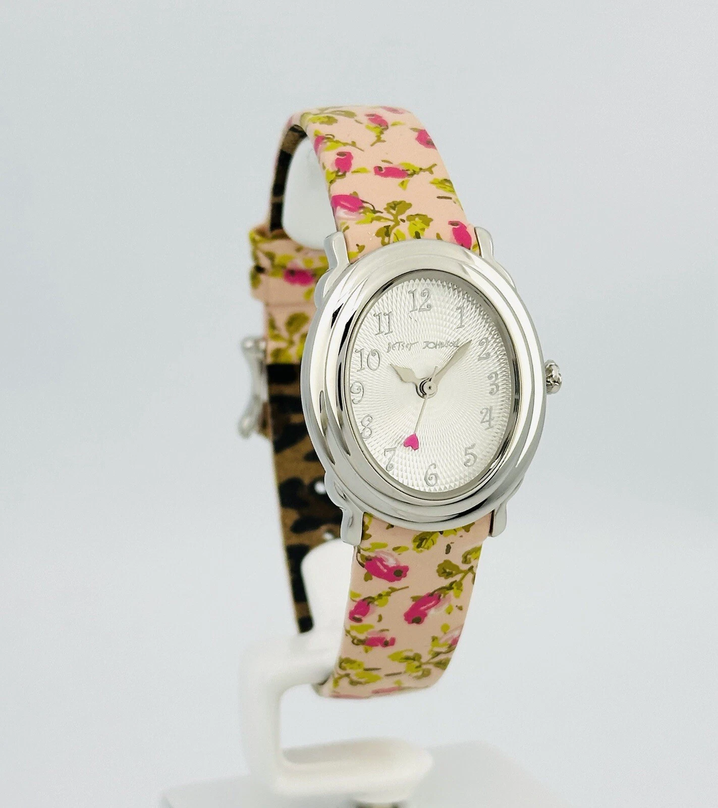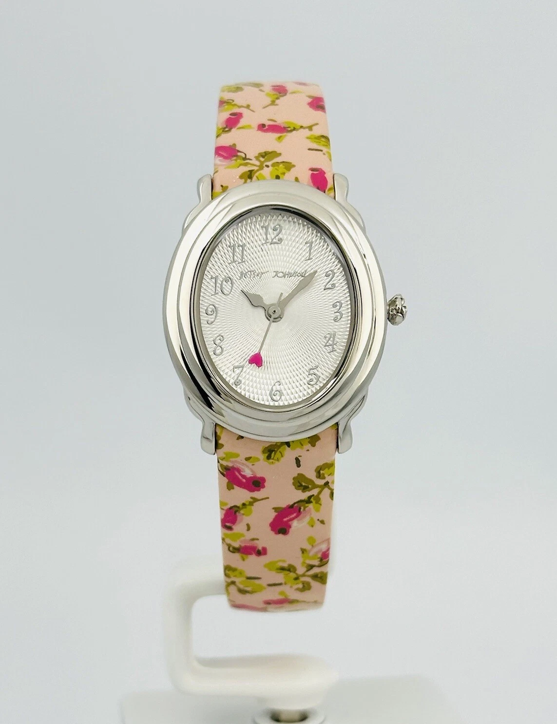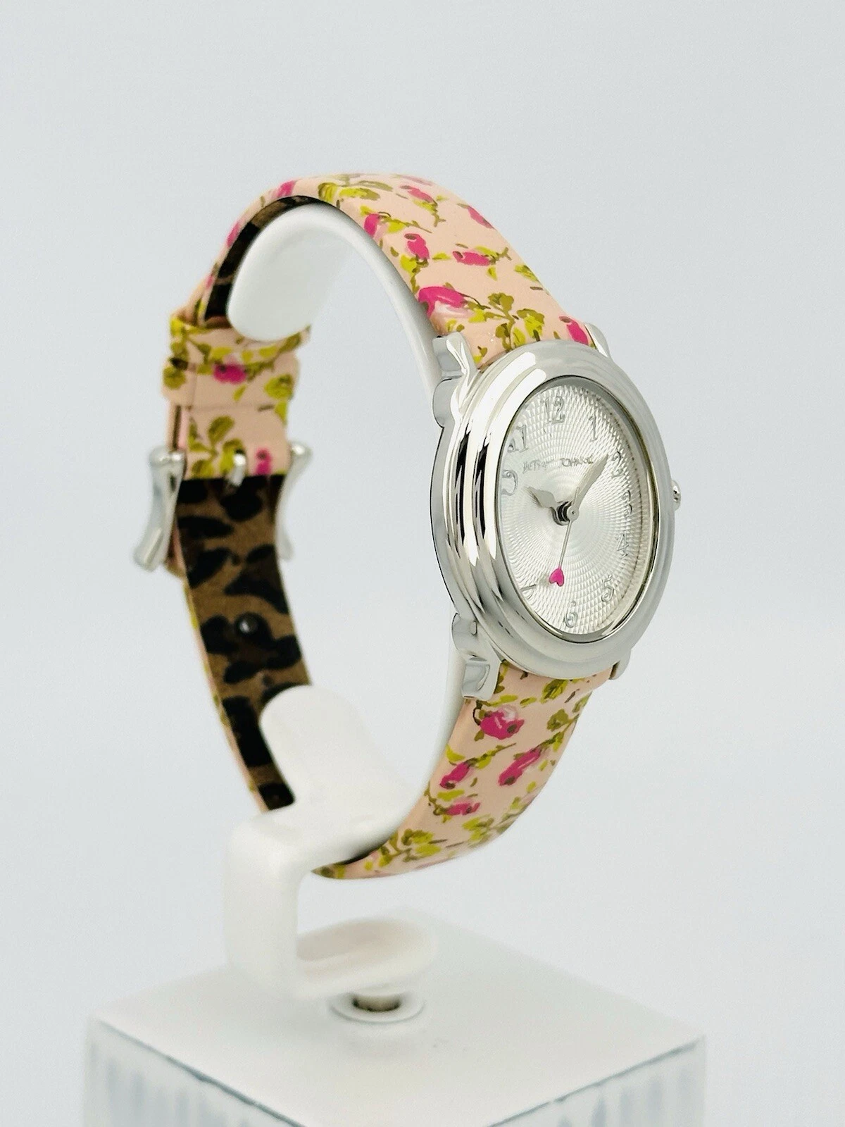 Betsey Johnson Women’s BJ2087 Pink Flower Strap Heart Hand Stainless Babd Watch