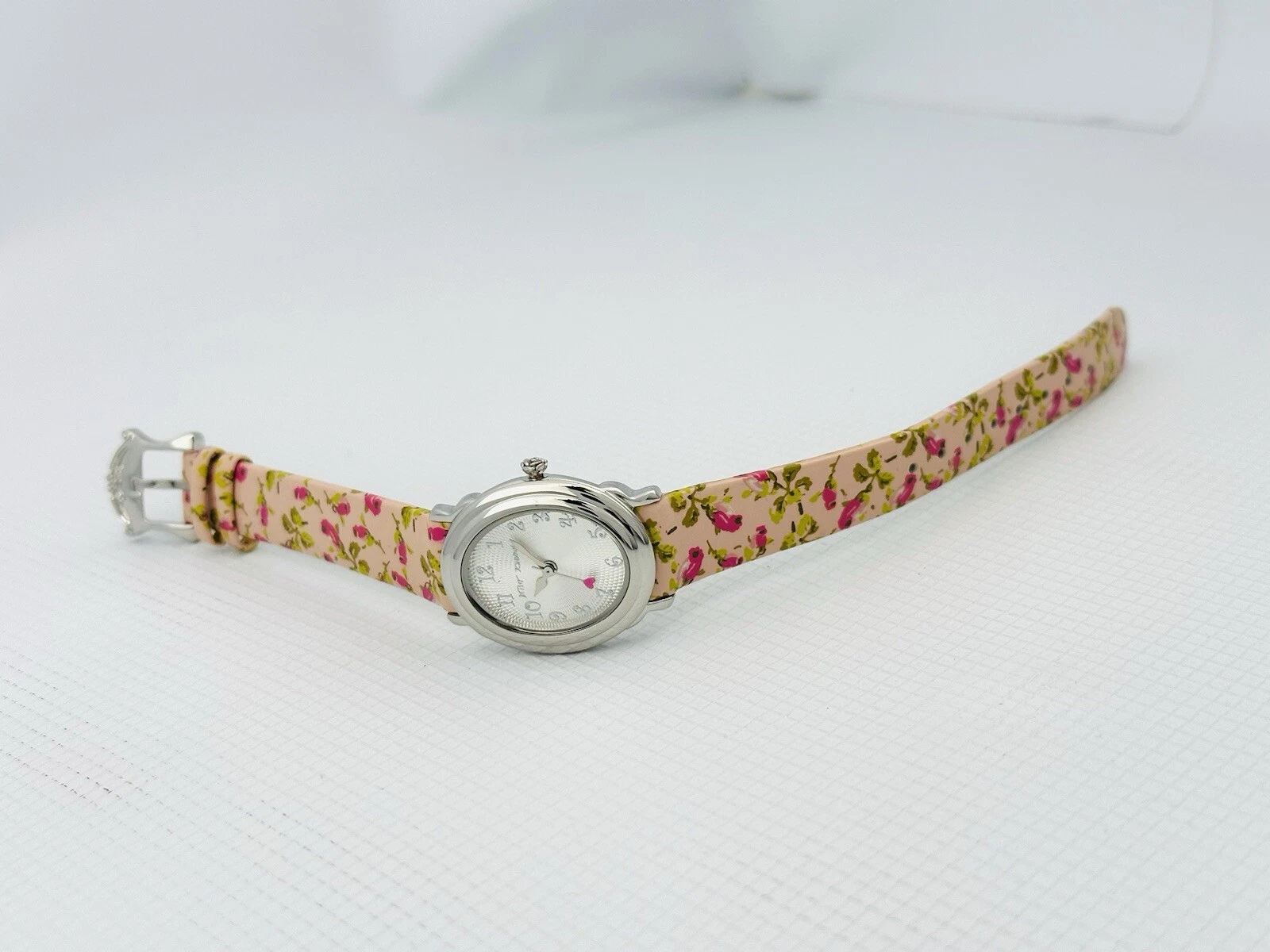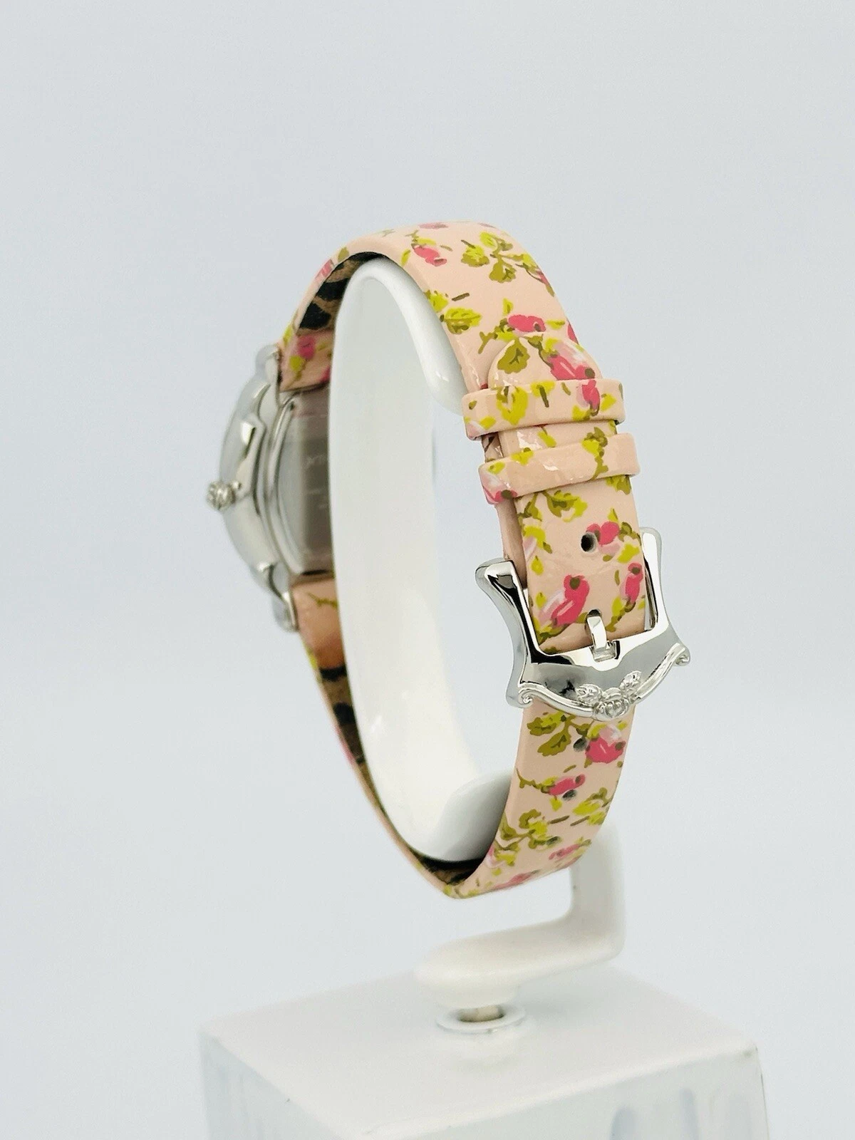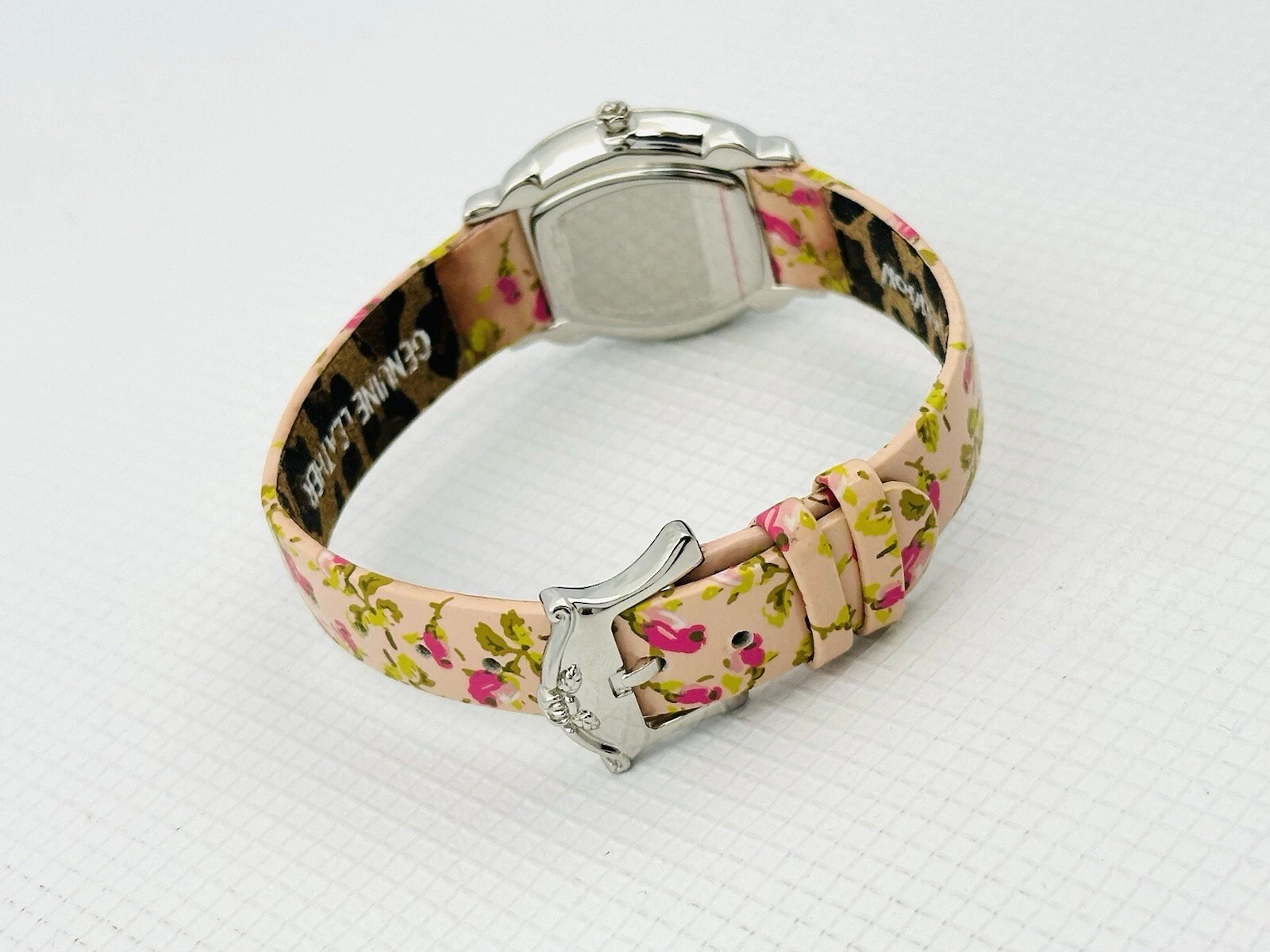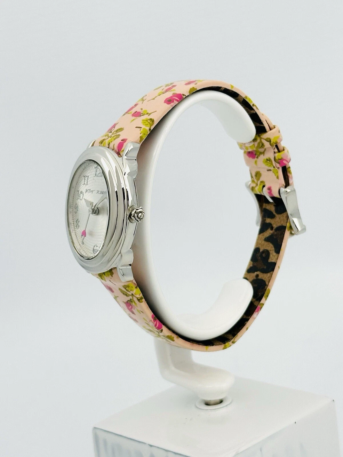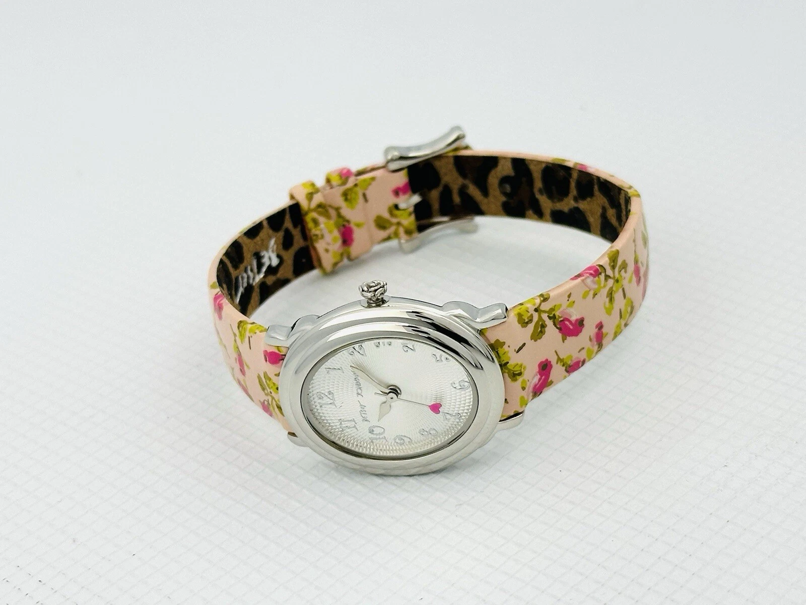 Betsey Johnson Women’s BJ2087 Pink Flower Strap Heart Hand Stainless Babd Watch