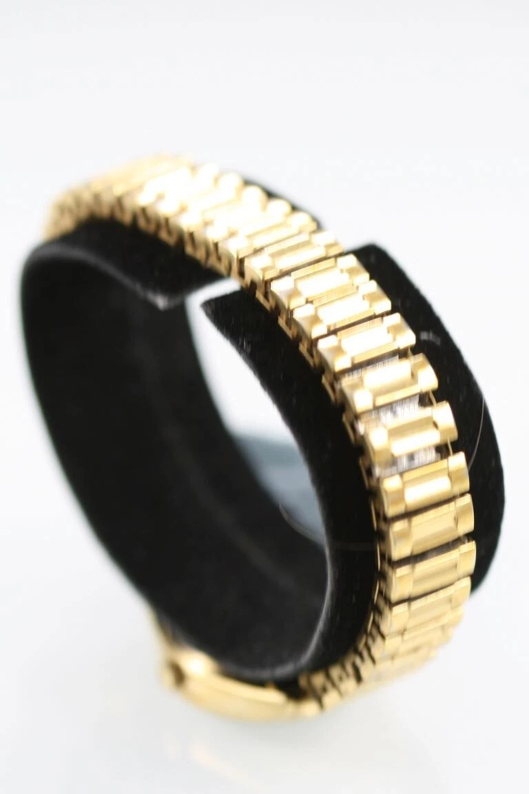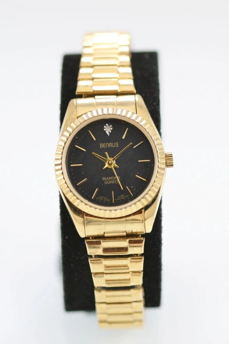 Benrus Diamond Women Watch Stainless Gold Steel Stretch Water Res Black Quartz