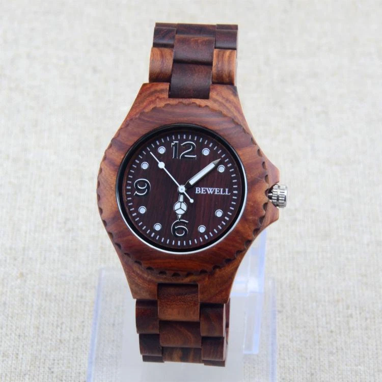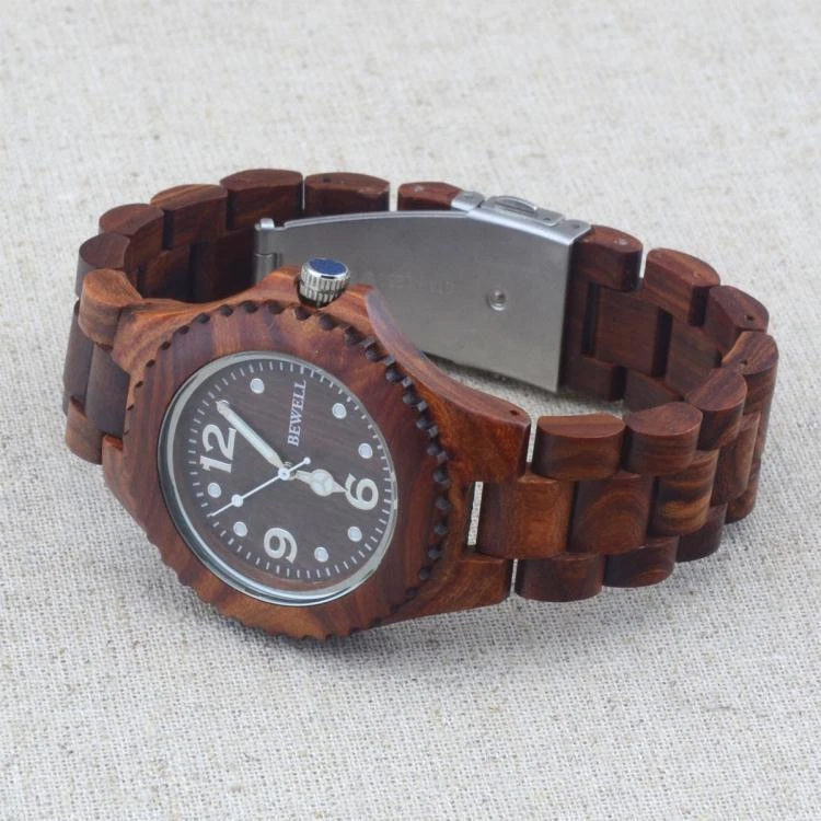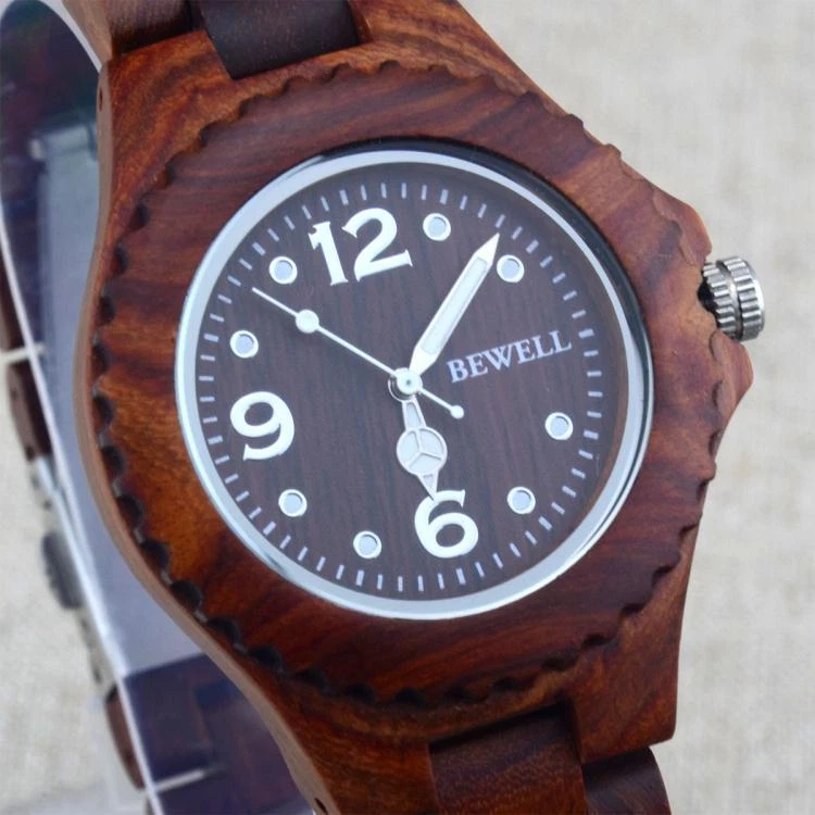 BEWELL Natural Sandalwood Numerals Mens Women Wooden Watches Japanese Quartz