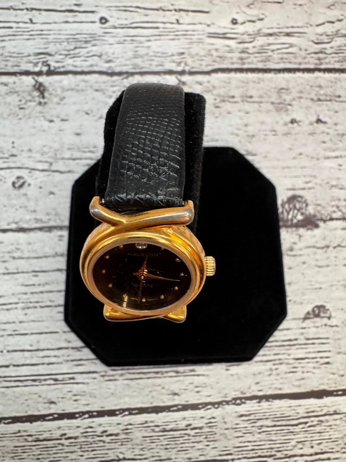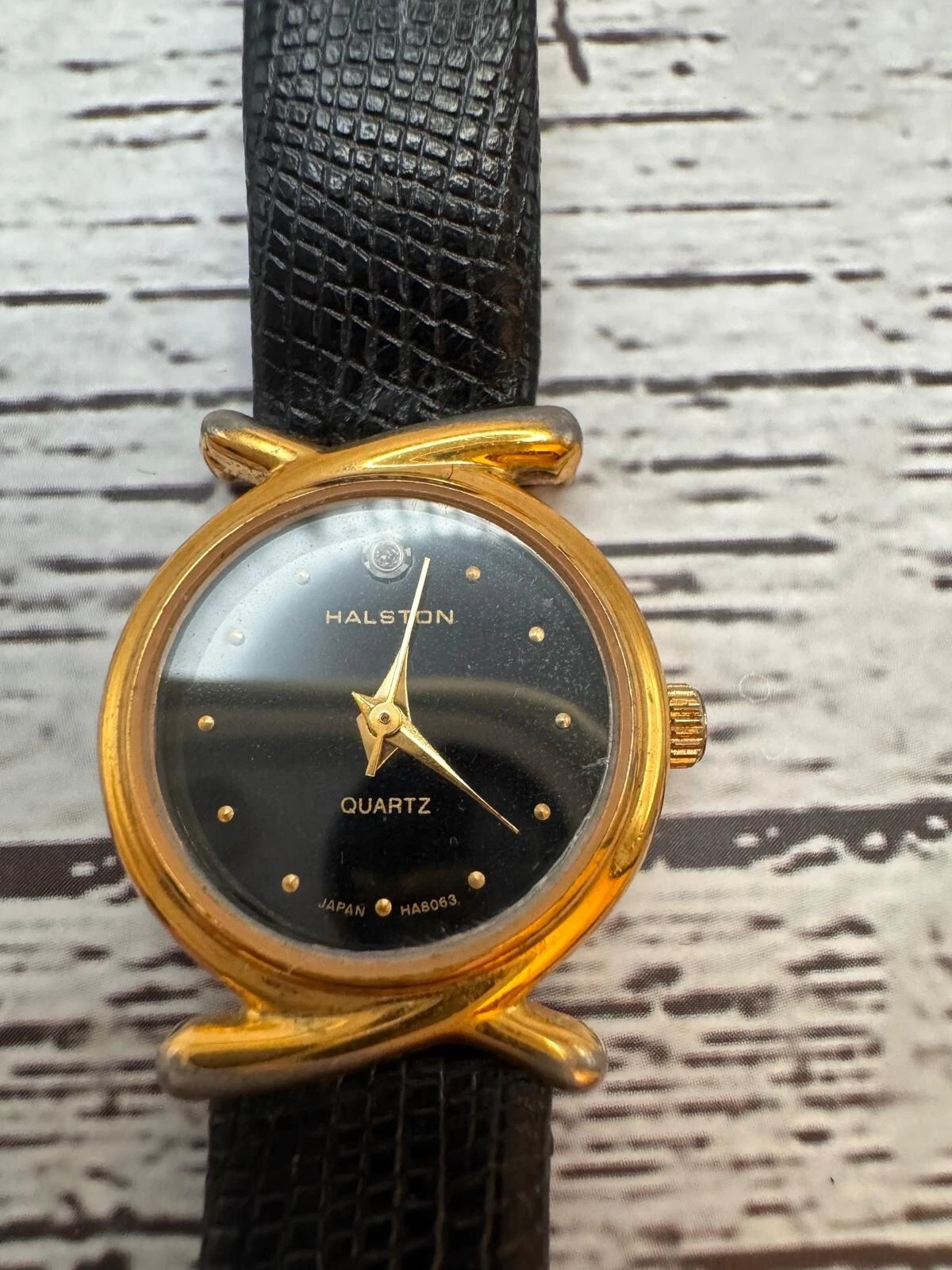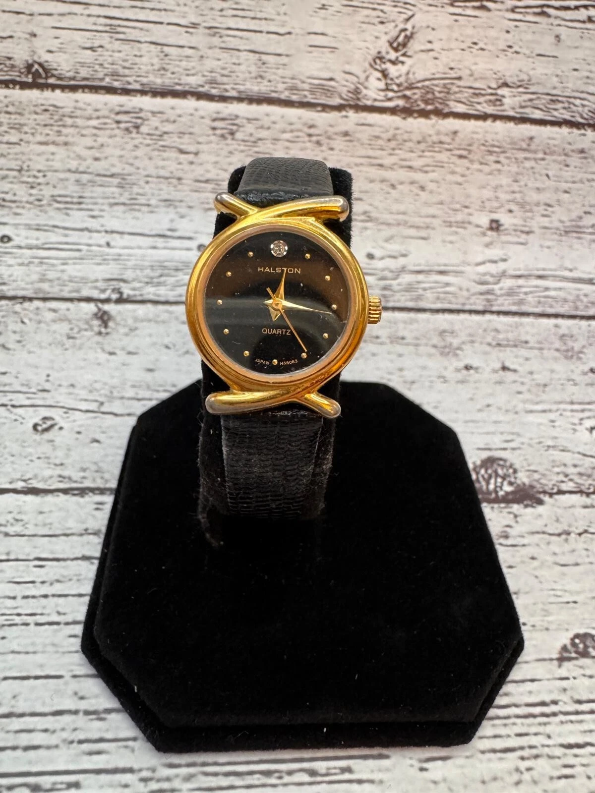 Halston Vintage Women's Leather Cuff Band Analog Watch