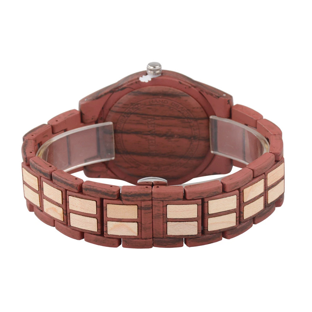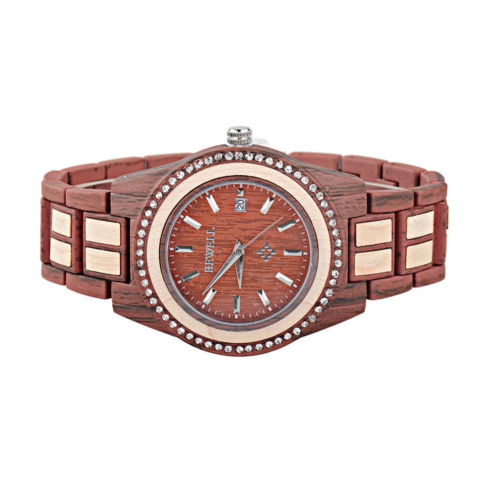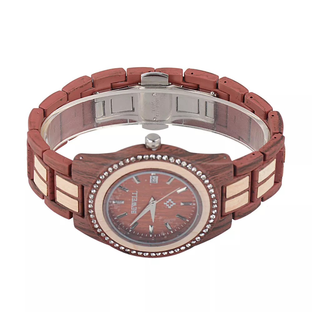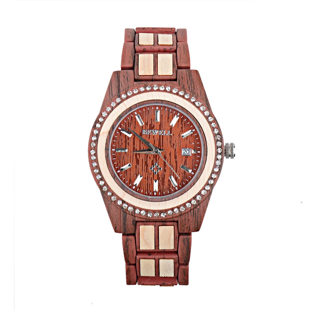 Bewell Unisex Natural Wood Watch 42MM Case Two Tone Crystal Bezel 30M WR Japan M