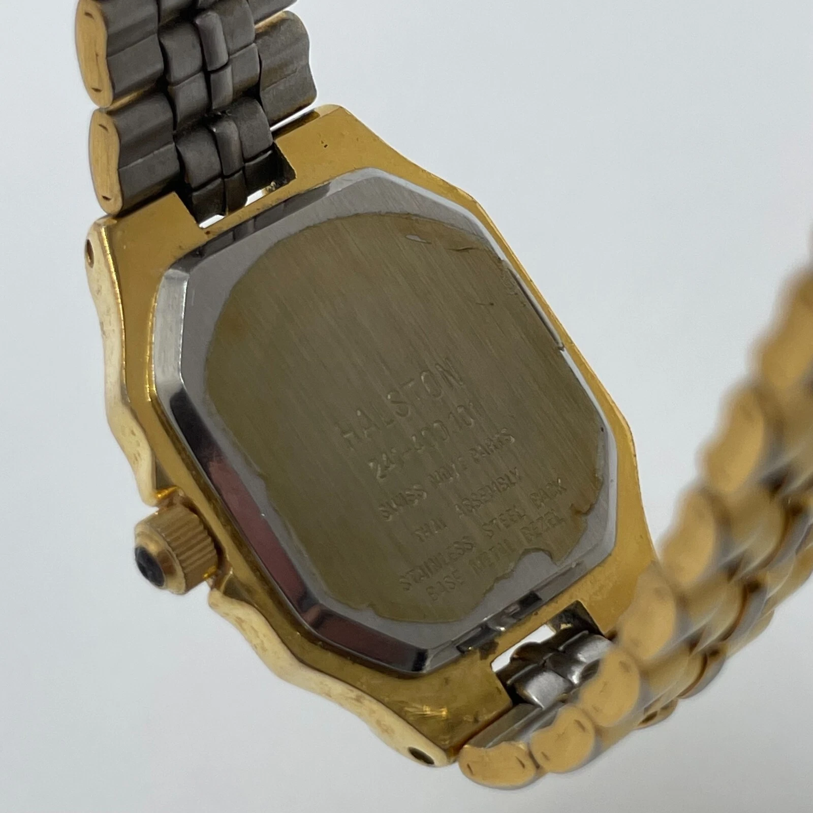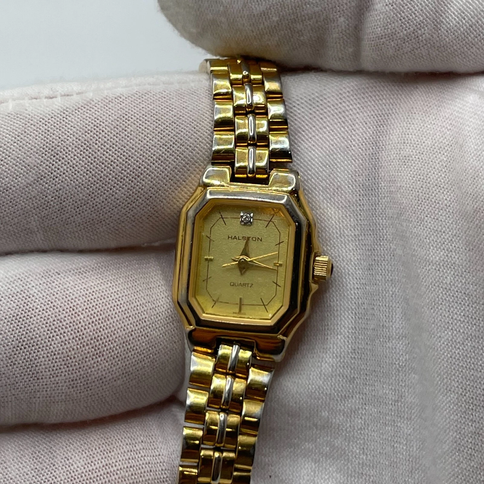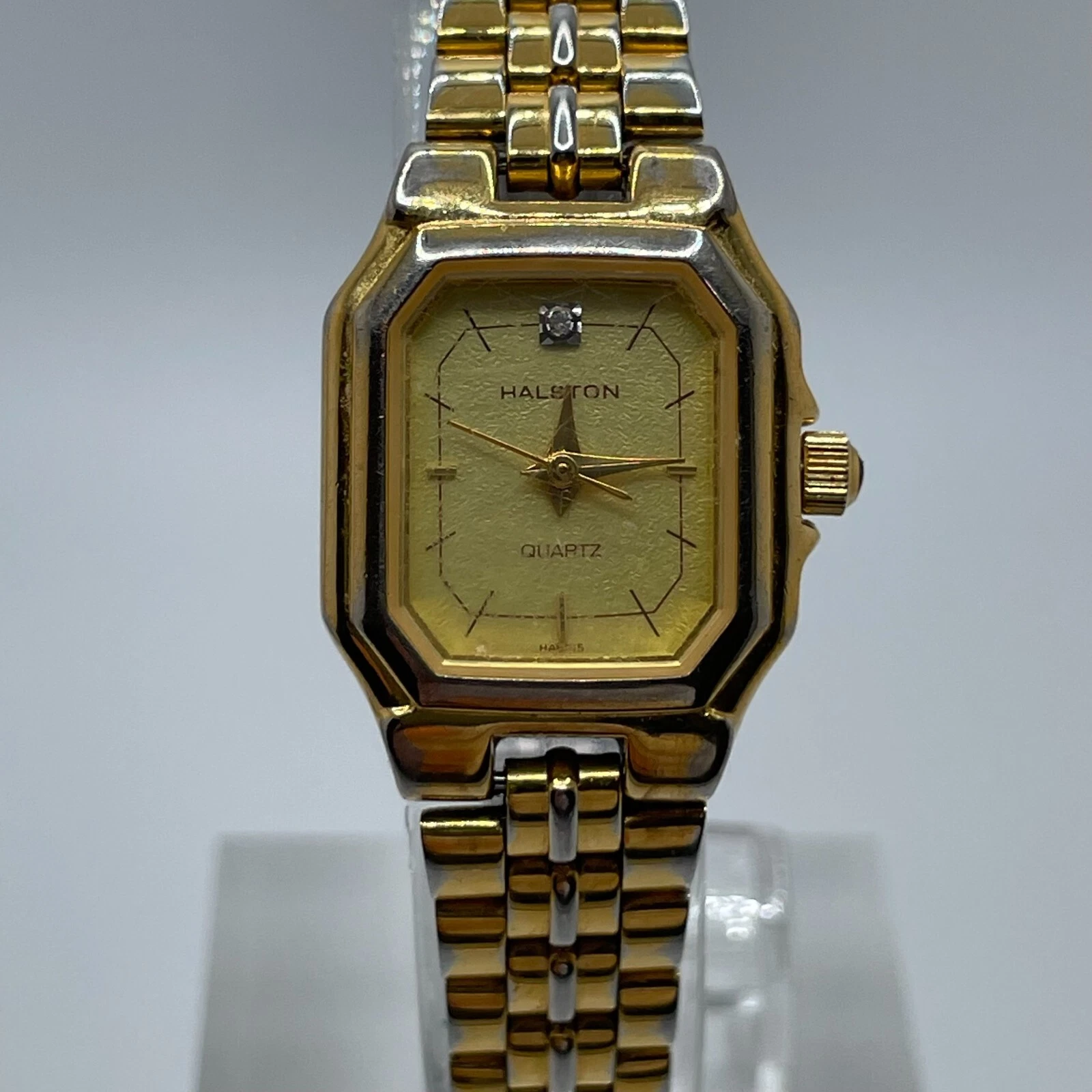 Halston Watch Womens Vintage 19mm Gold Tone Case Dial Band Quartz Analog
