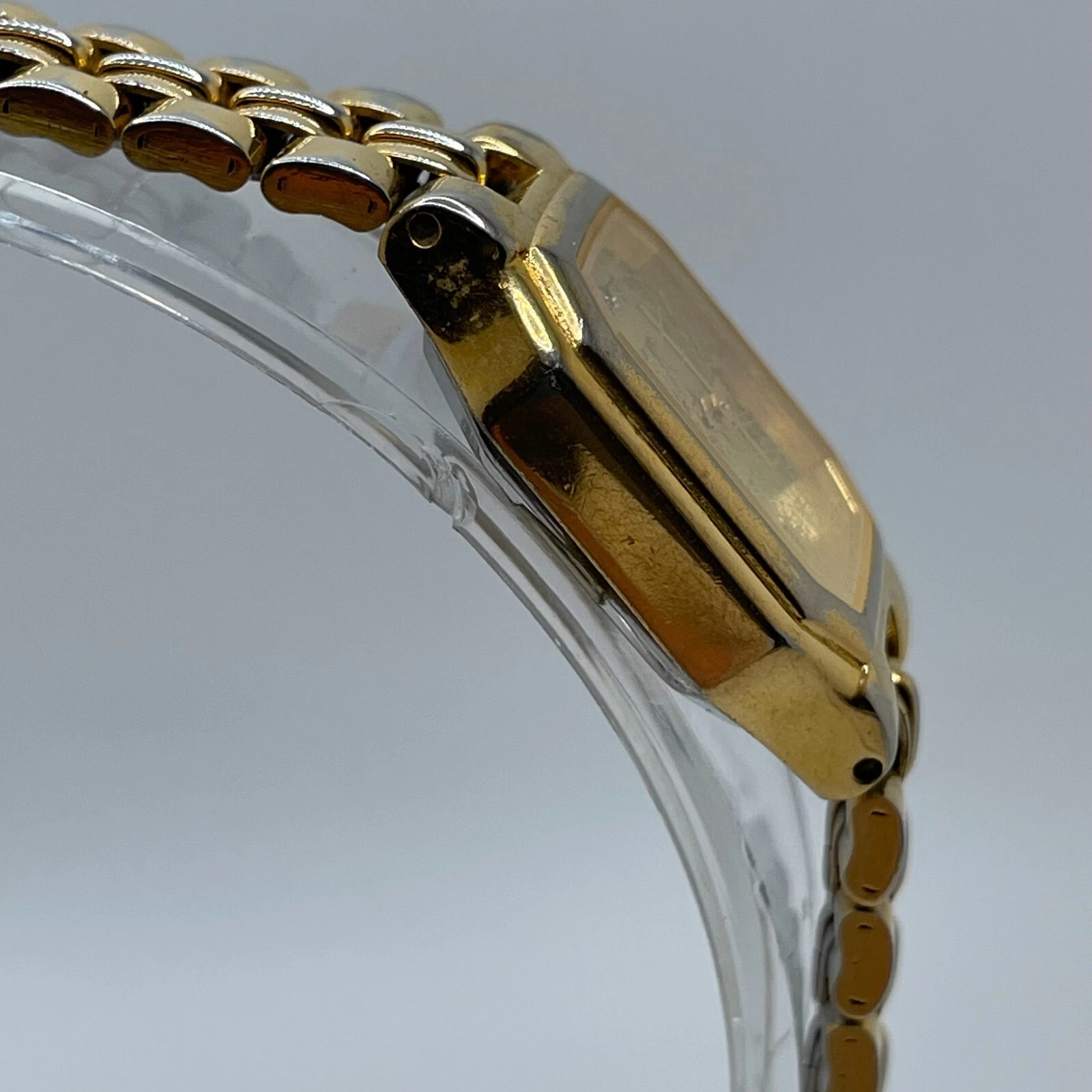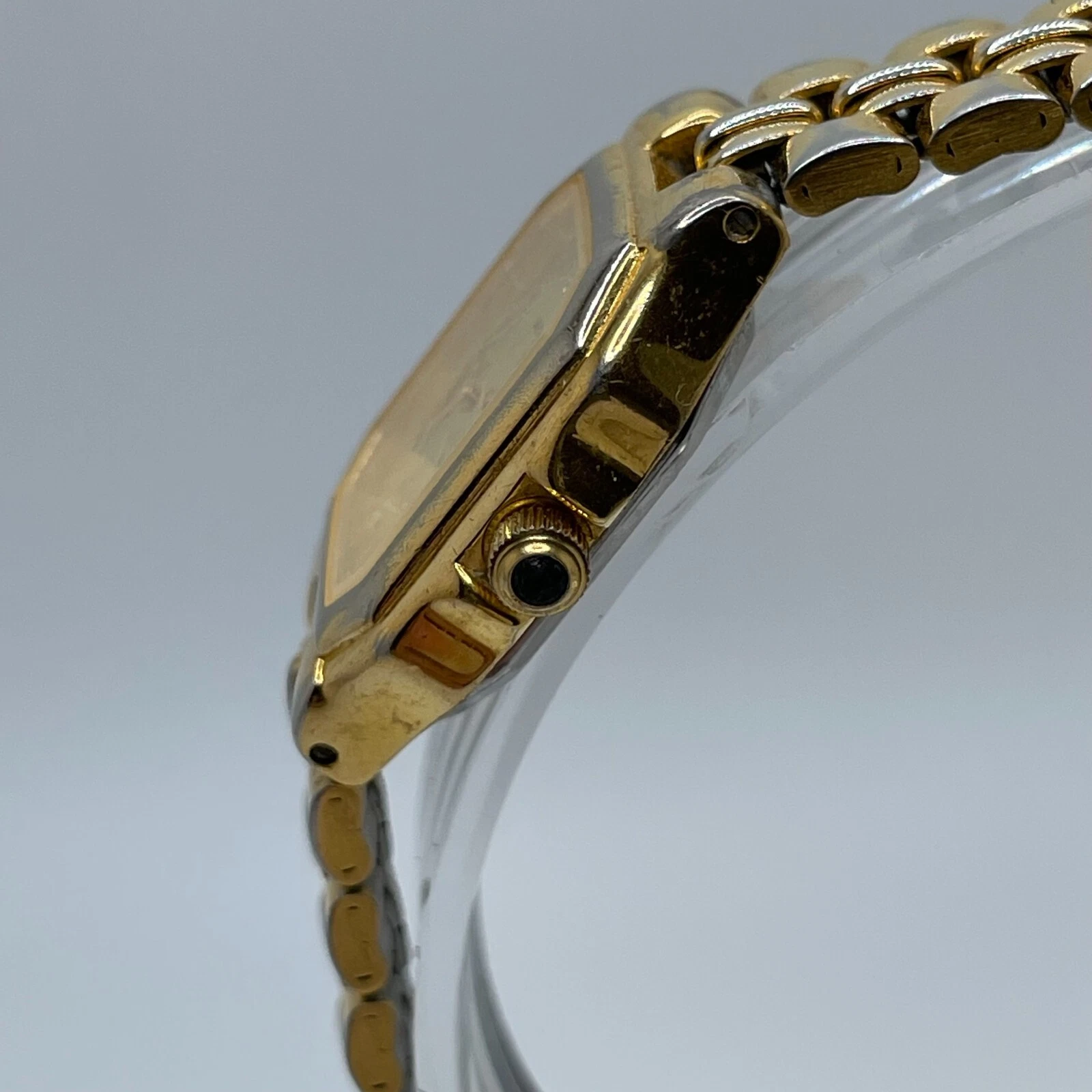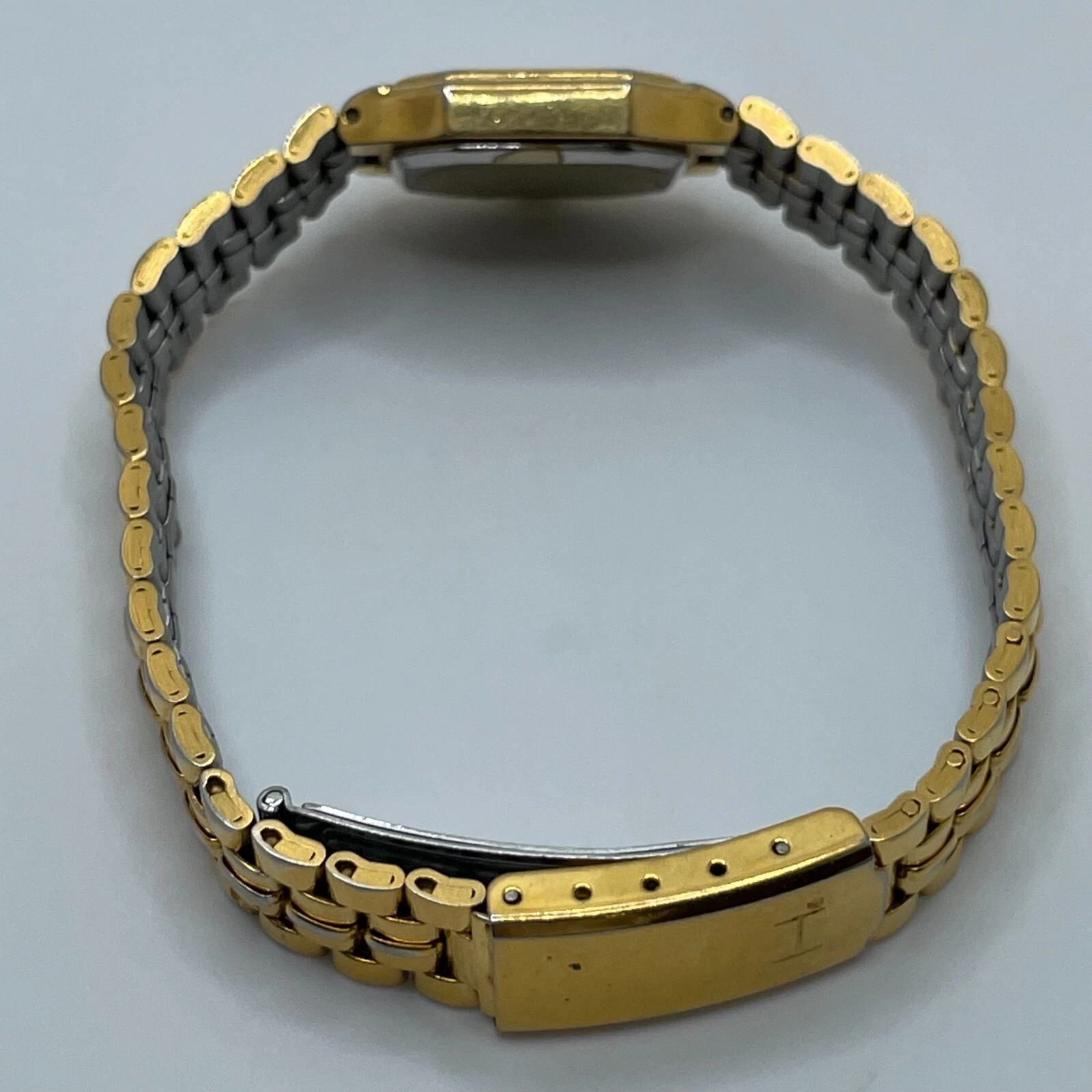 Halston Watch Womens Vintage 19mm Gold Tone Case Dial Band Quartz Analog
