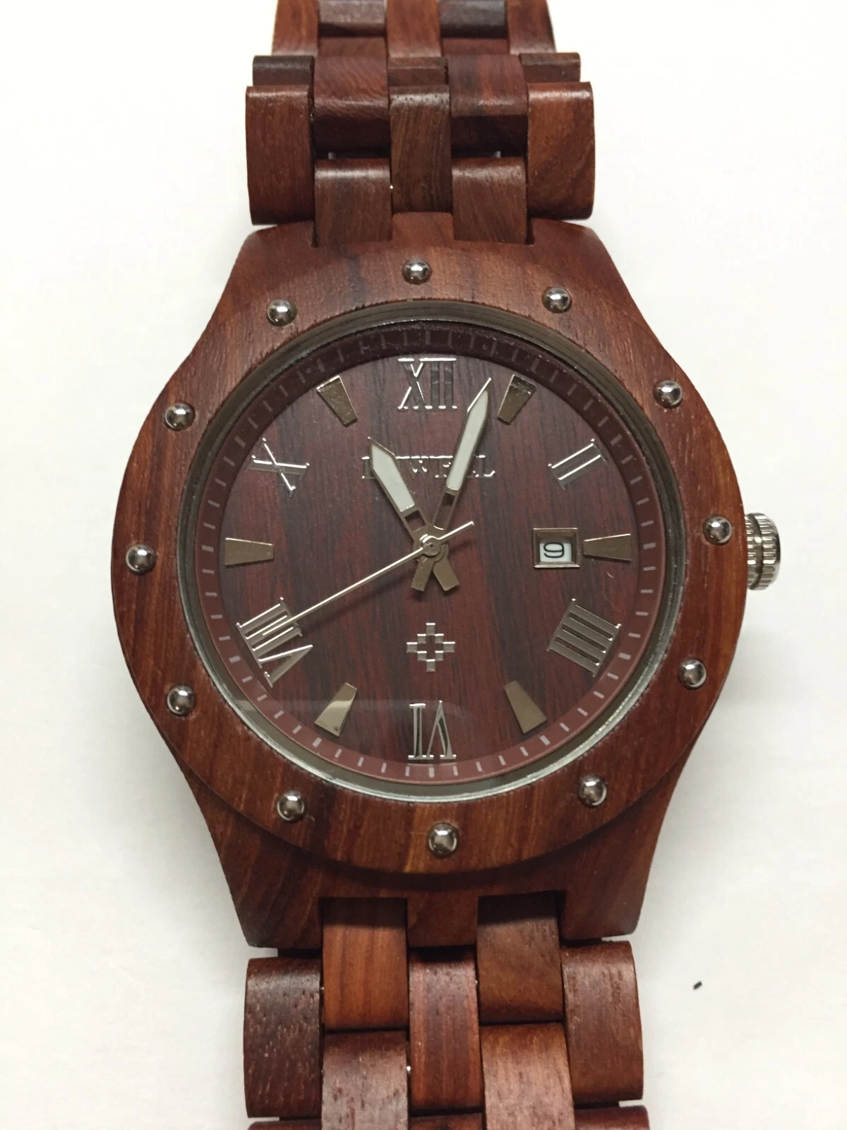 BEWELL WOOD WATCH JAPAN MIYOTA QUARTZ MOVEMENT 46 MM ROUND