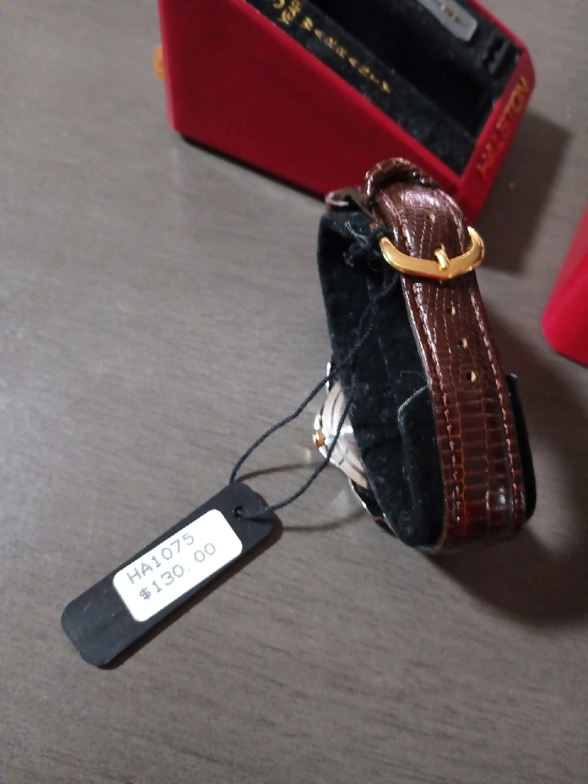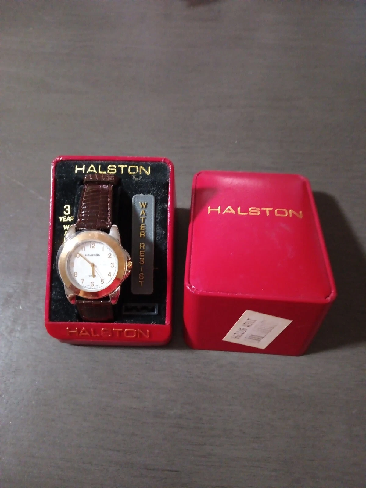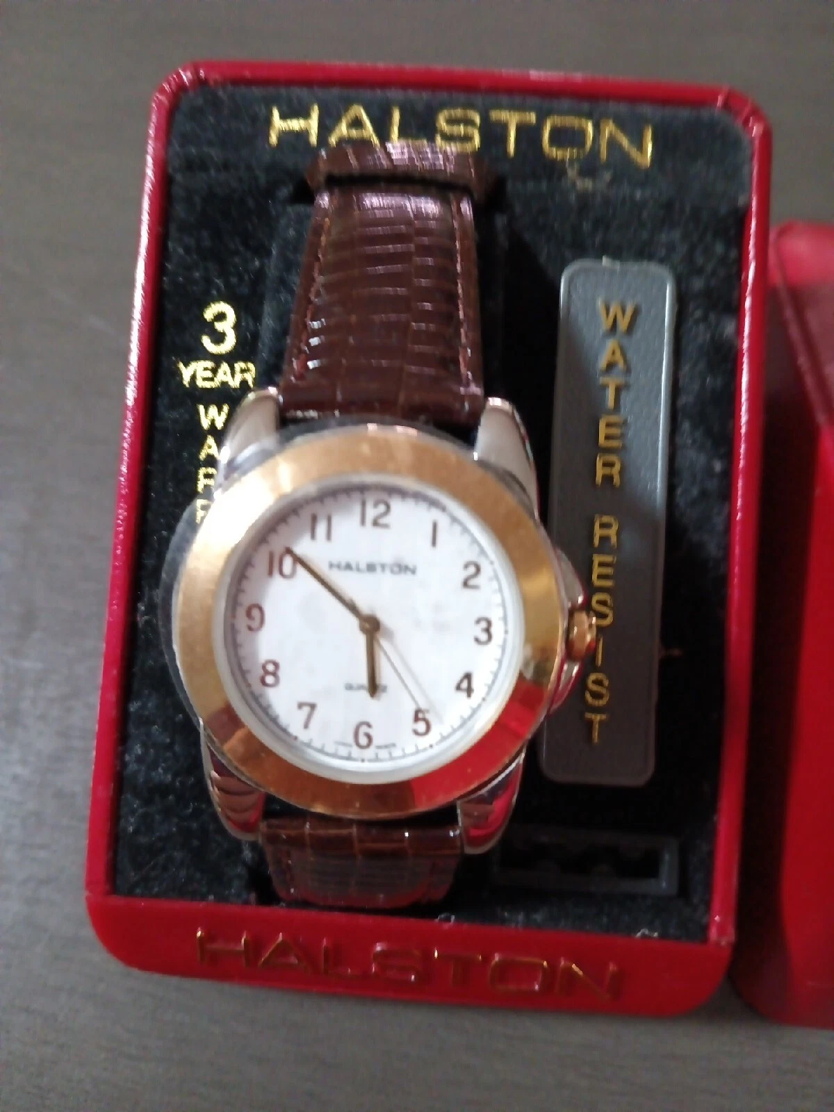Vintage Halston Watch Women Gold Tone Round White Dial Leather New Never Used