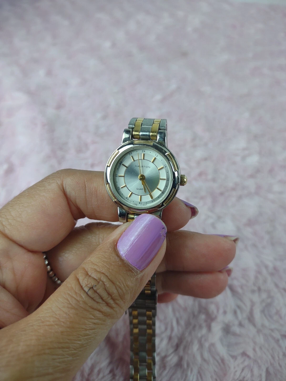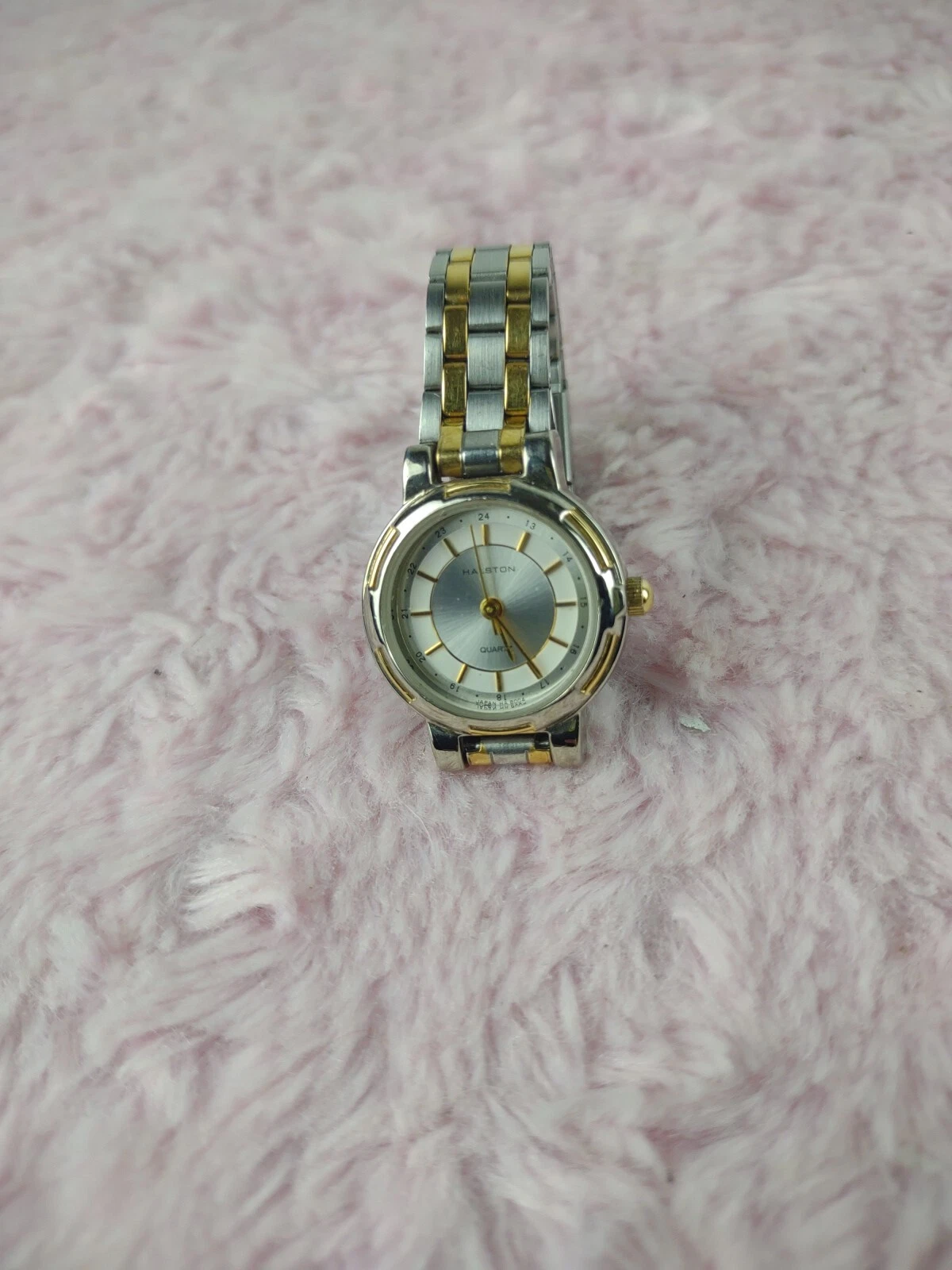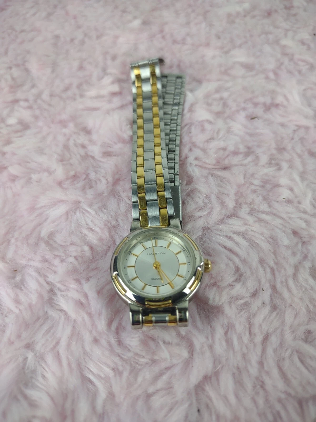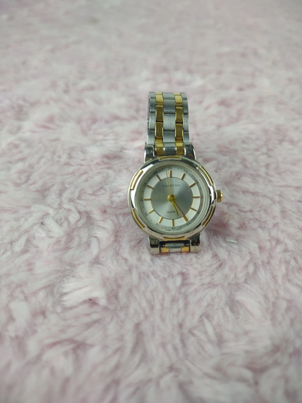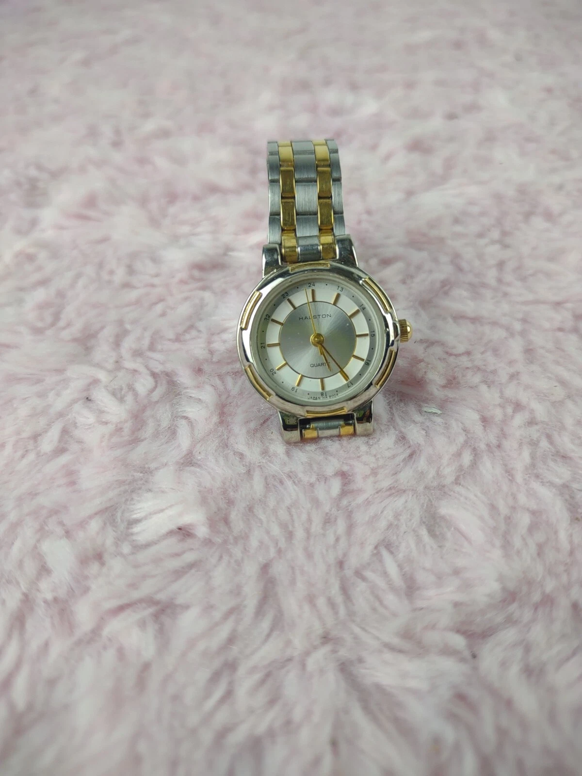 Vintage Halston Ladies Watch Diamond Accent Quartz Two Tone New Battery Included
