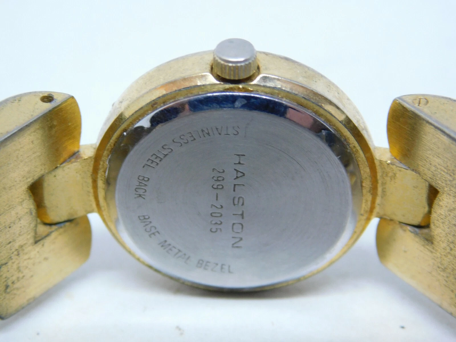 Halston 299-2035 Gold Tone Quartz Analog Ladies Watch Sz. 7"