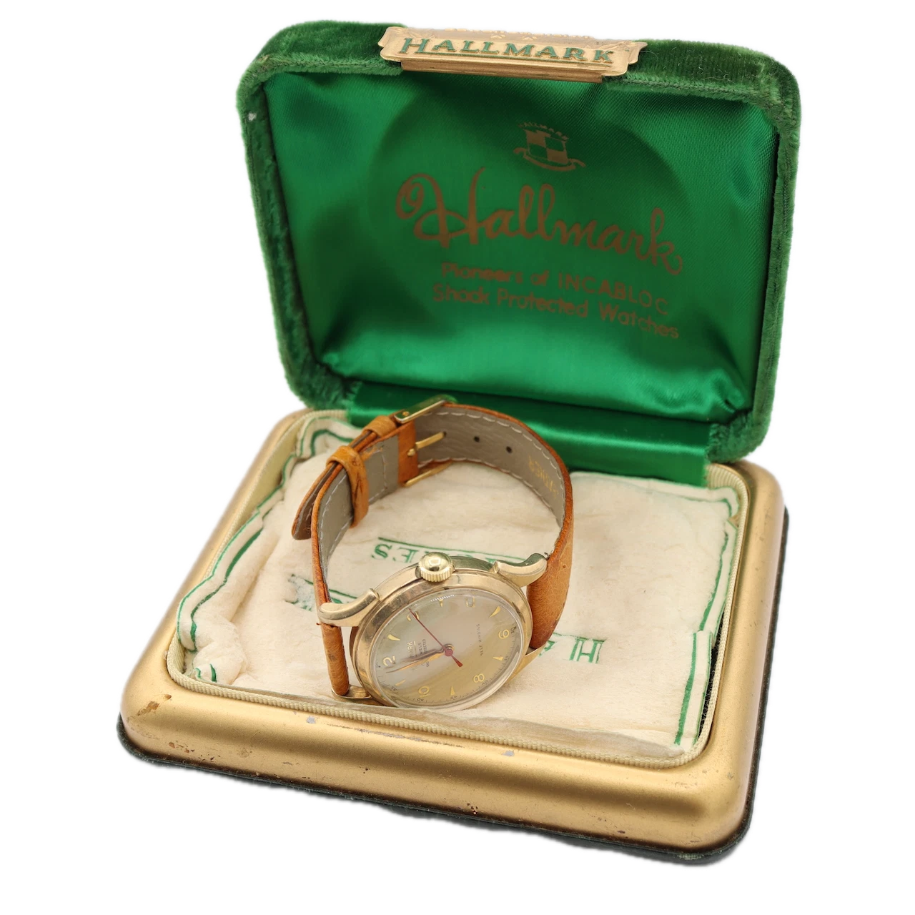Vintage Hallmark Men's Automatic Wristwatch Swiss 10k Rolled Gold Platew/Box