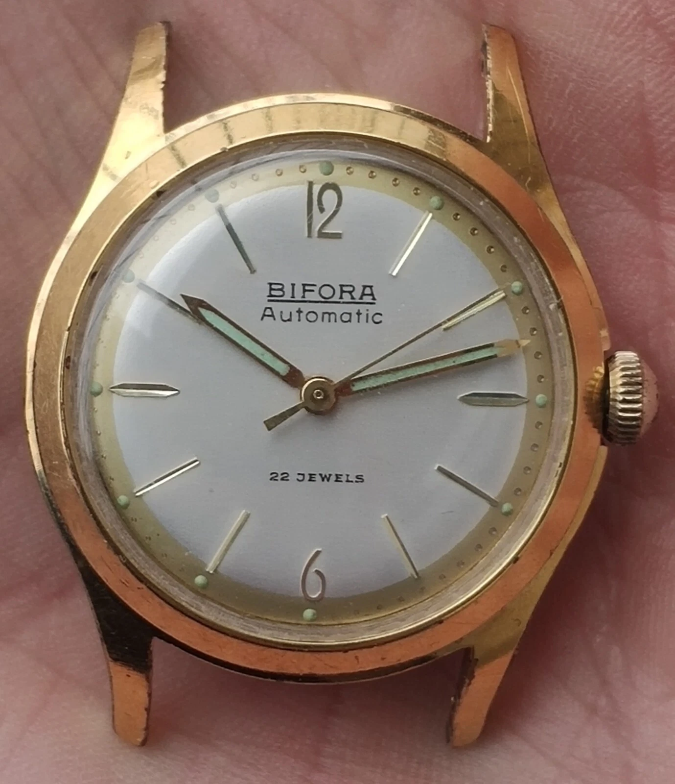 Vintage men's german Bifora automatic watch 22 jewels cal.111 two tone dial