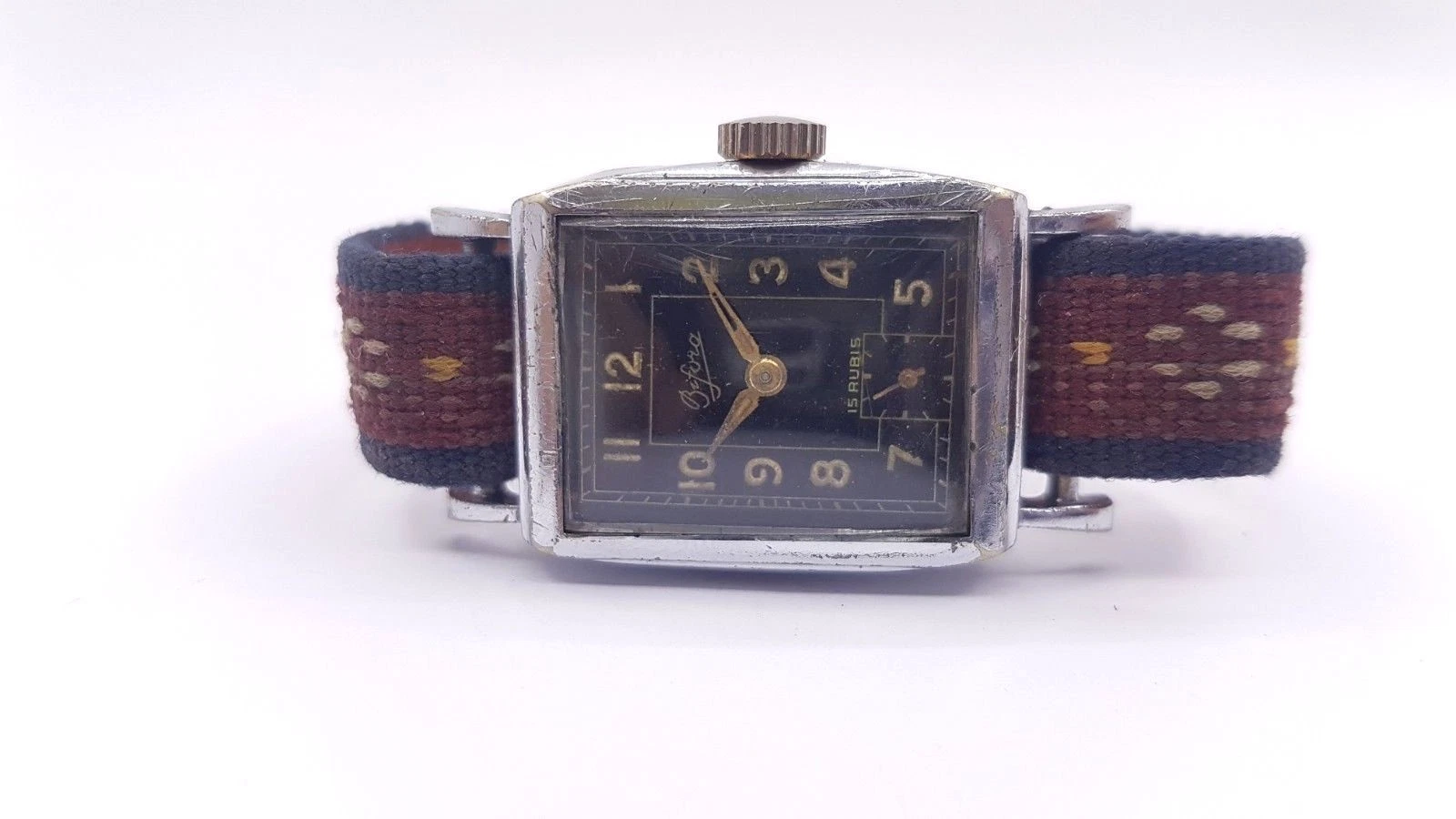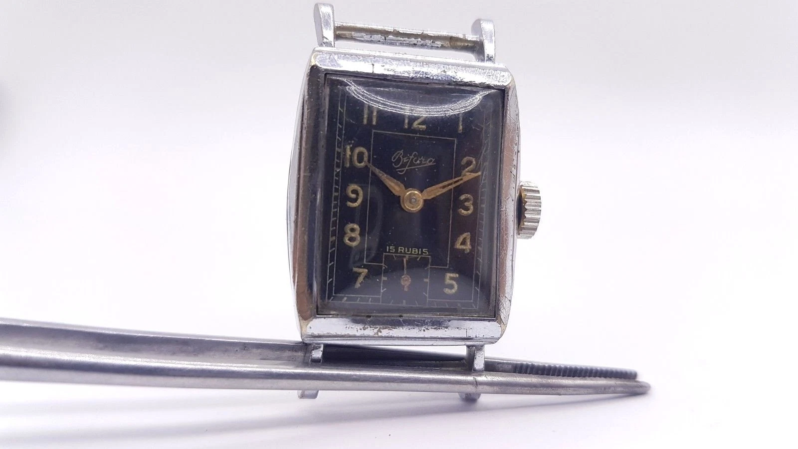 Bifora Wrist Watch 15 Jewels Black Dial Art Deco D.R.G.M. WW2