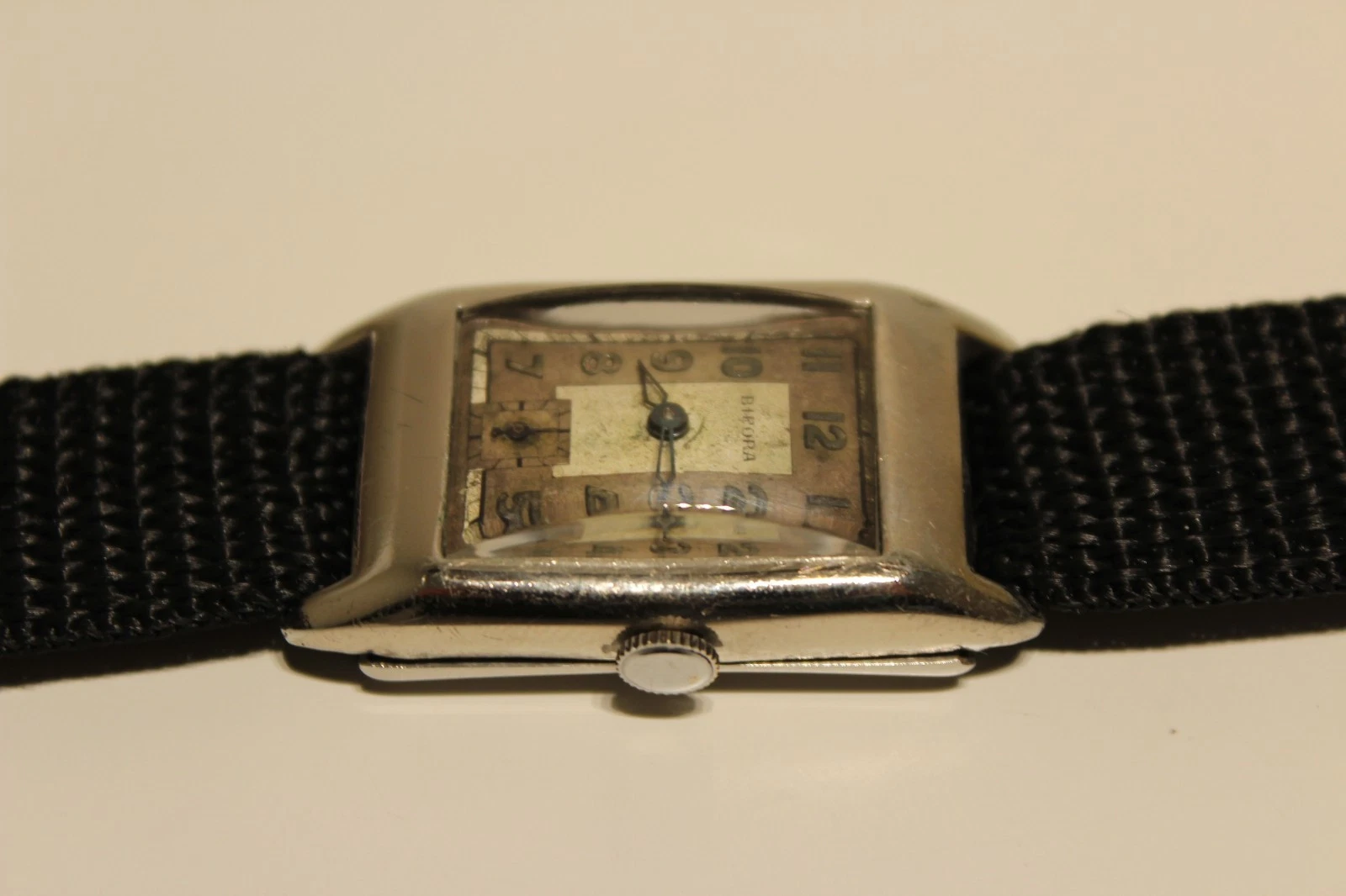 VINTAGE RARE WW2 GERMANY MILITARY RECTANGULAR MEN'S WATCH "BIFORA" 15J /D.R.G.M