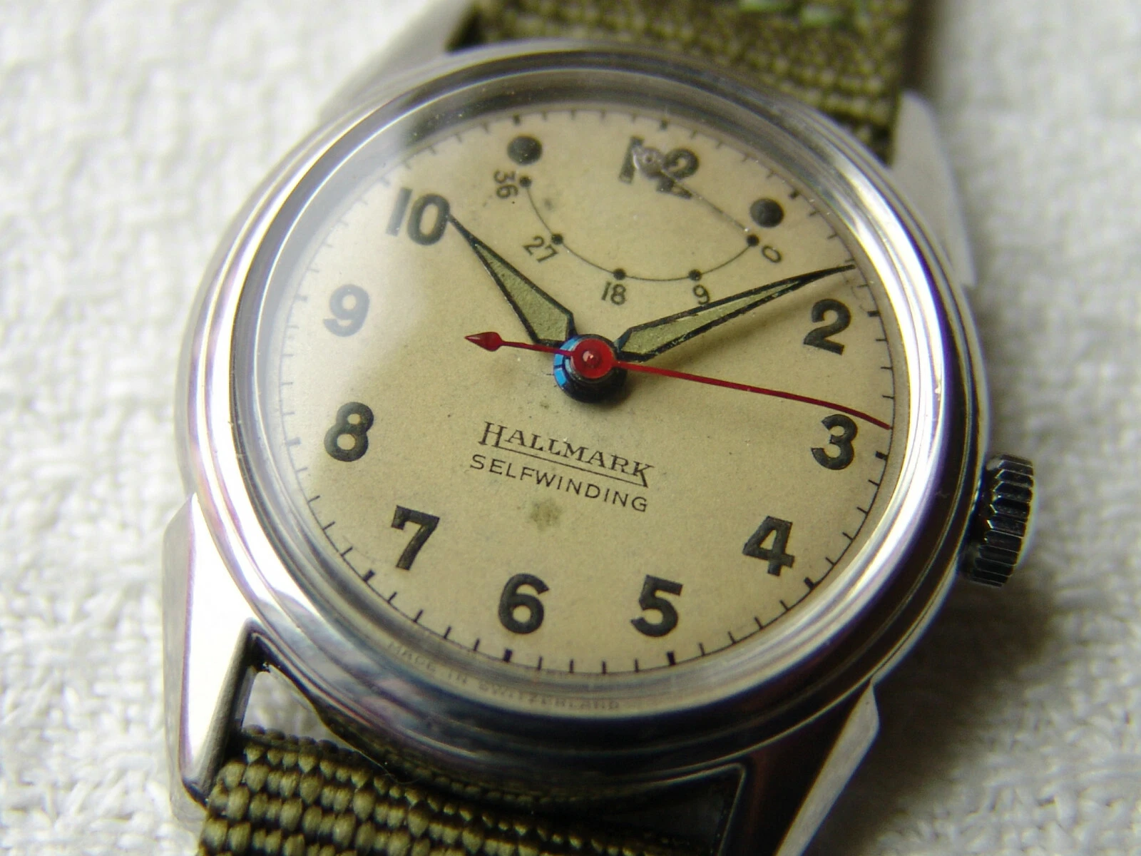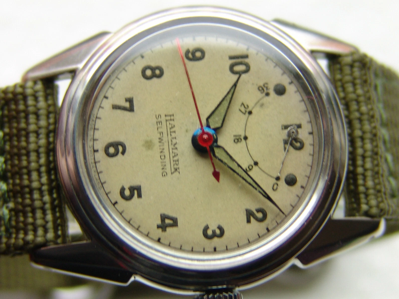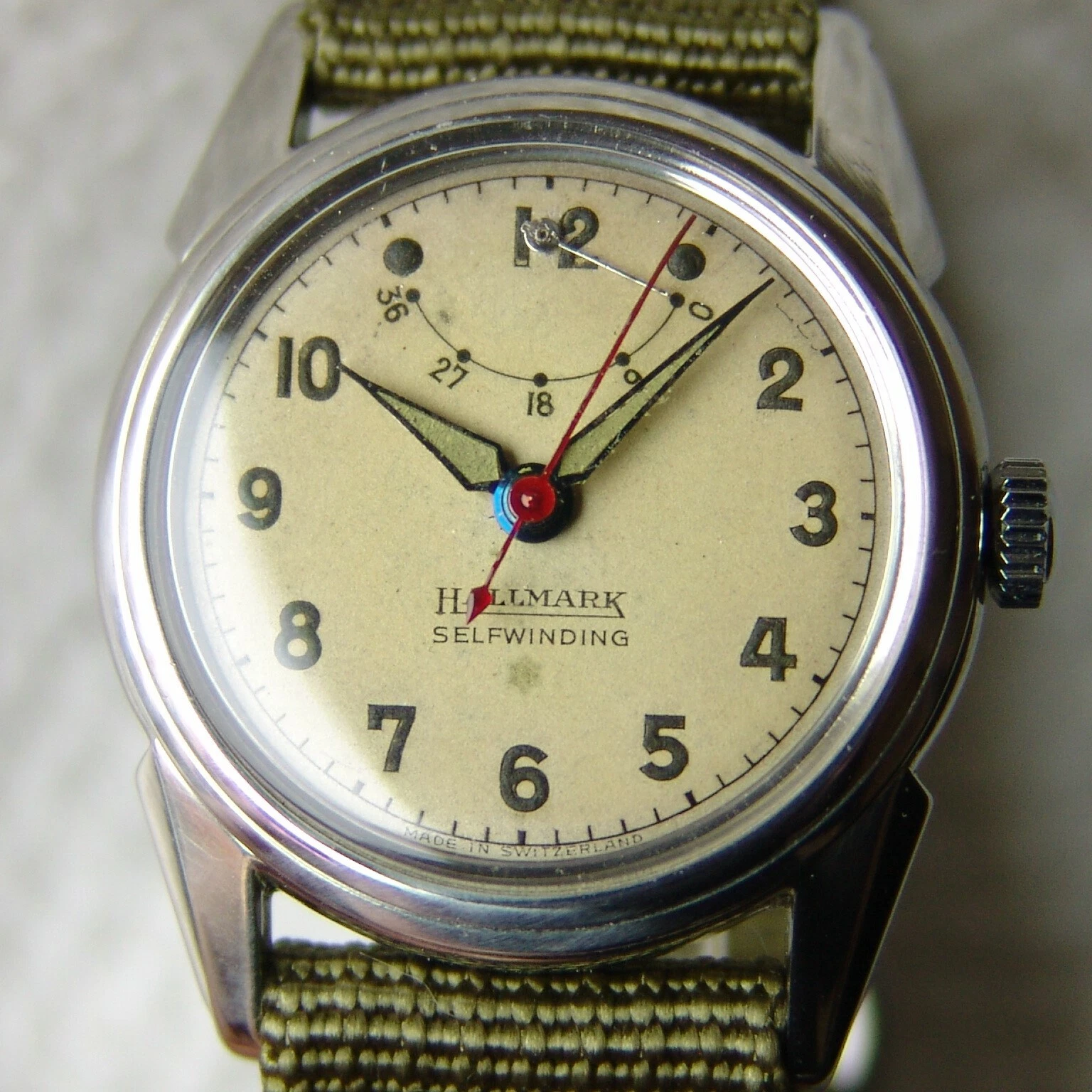 MENS vintage HALLMARK automatic GOOD CONDITION POWER RESERVE WRISTWATCH WWII ERA