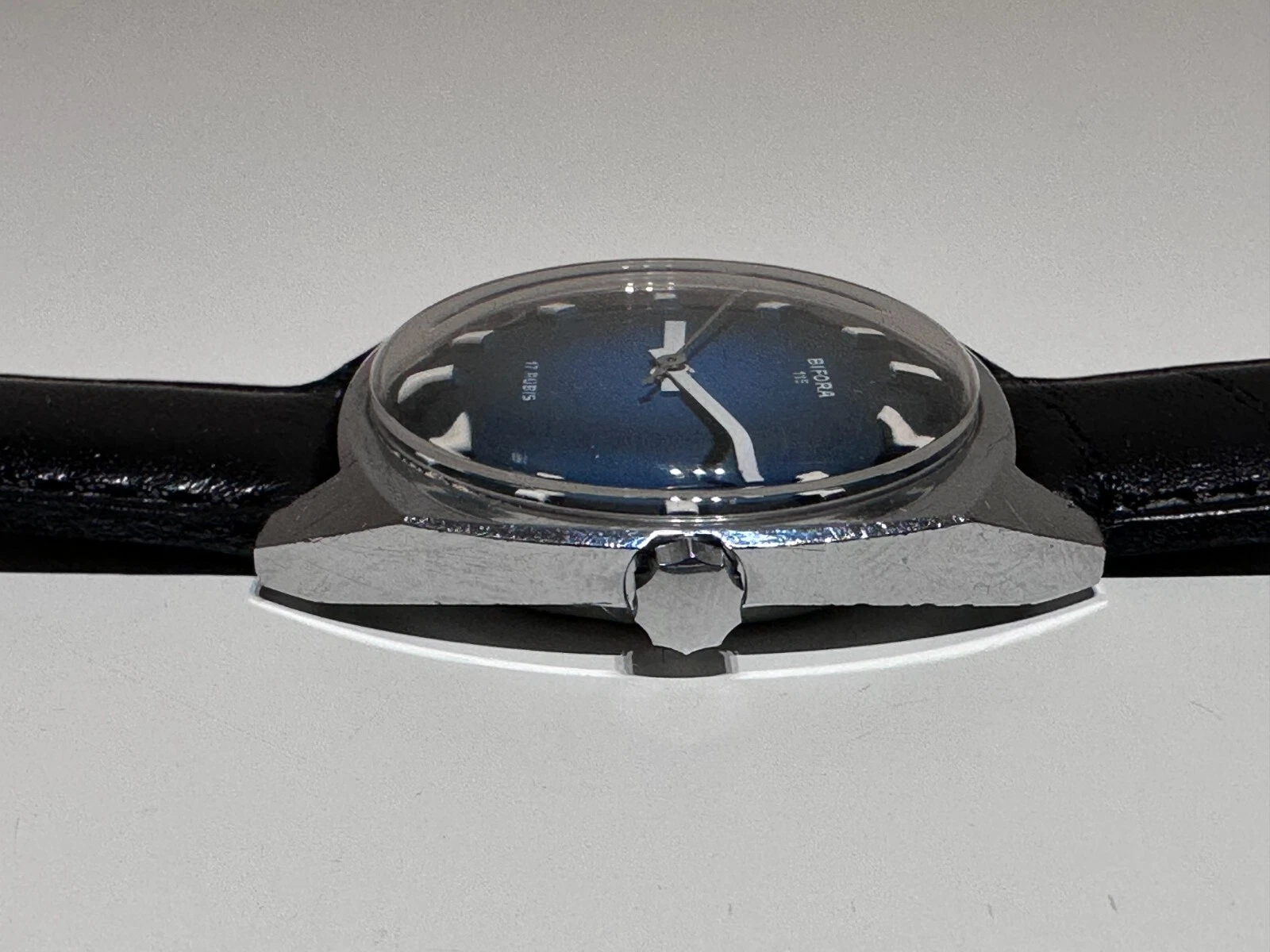 VINTAGE RARE BEAUTIFUL 34mm CHROMED MEN'S GERMANY MECHANICAL WATCH "BIFORA" 17J.