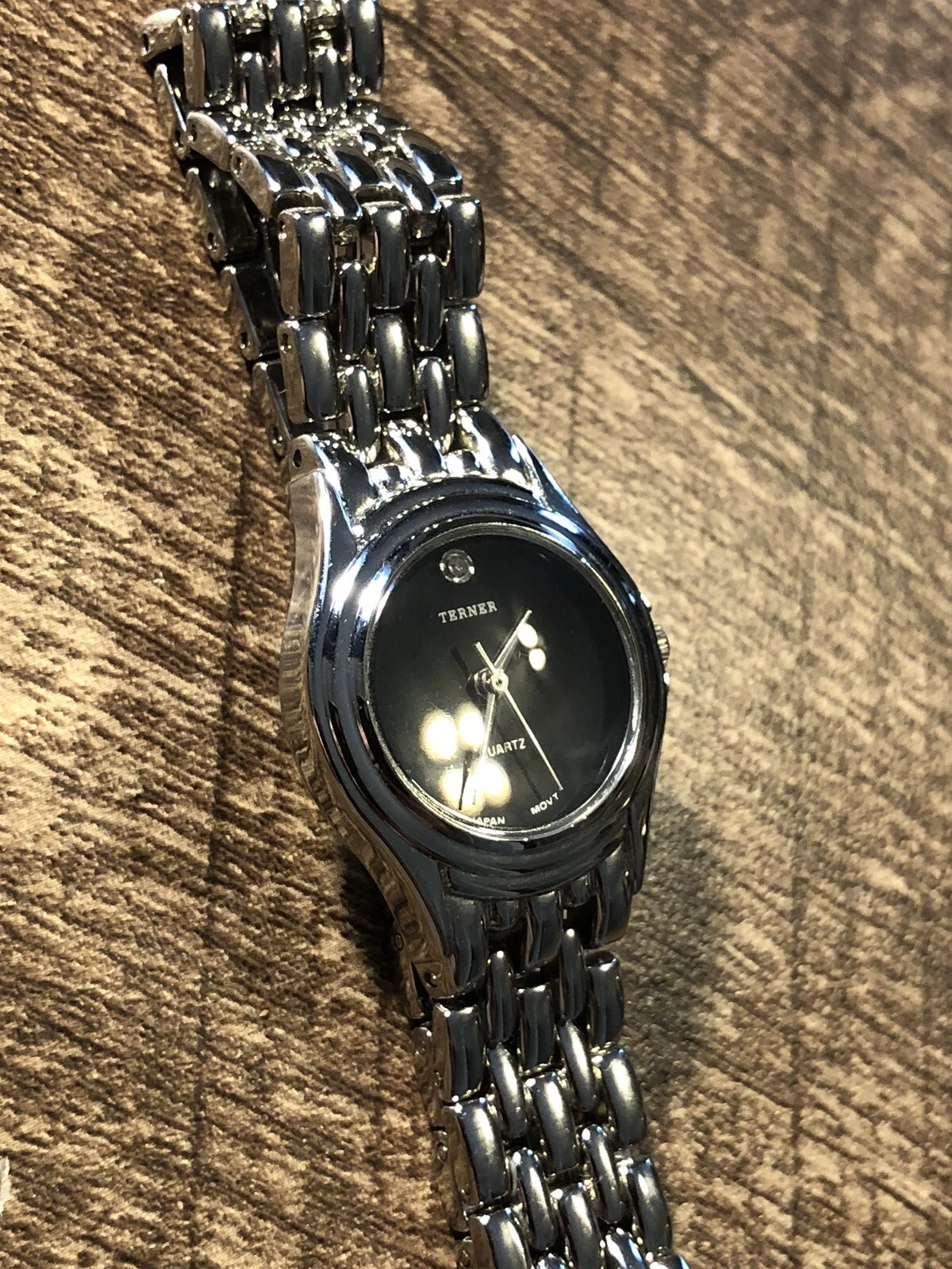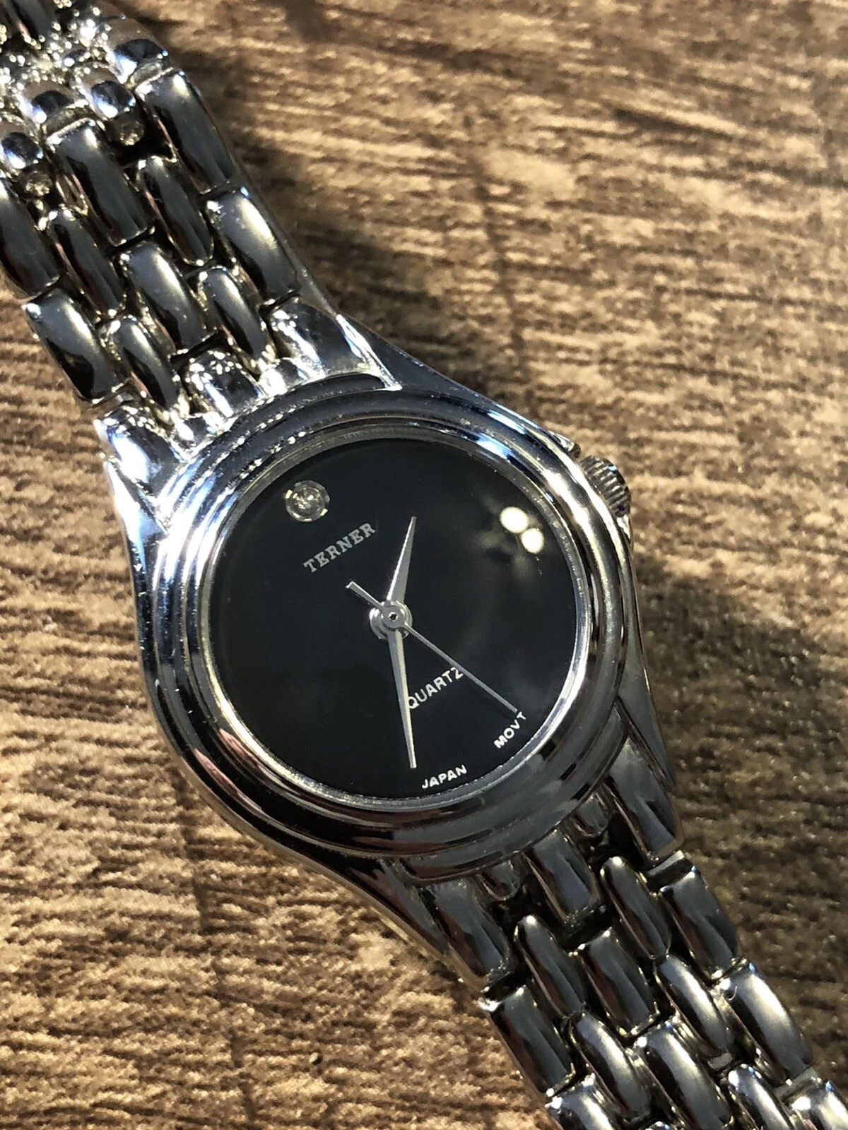 Bijoux Terner Women’s Watch Silver Tone Black Dial With Gem Ladies Wristwatch