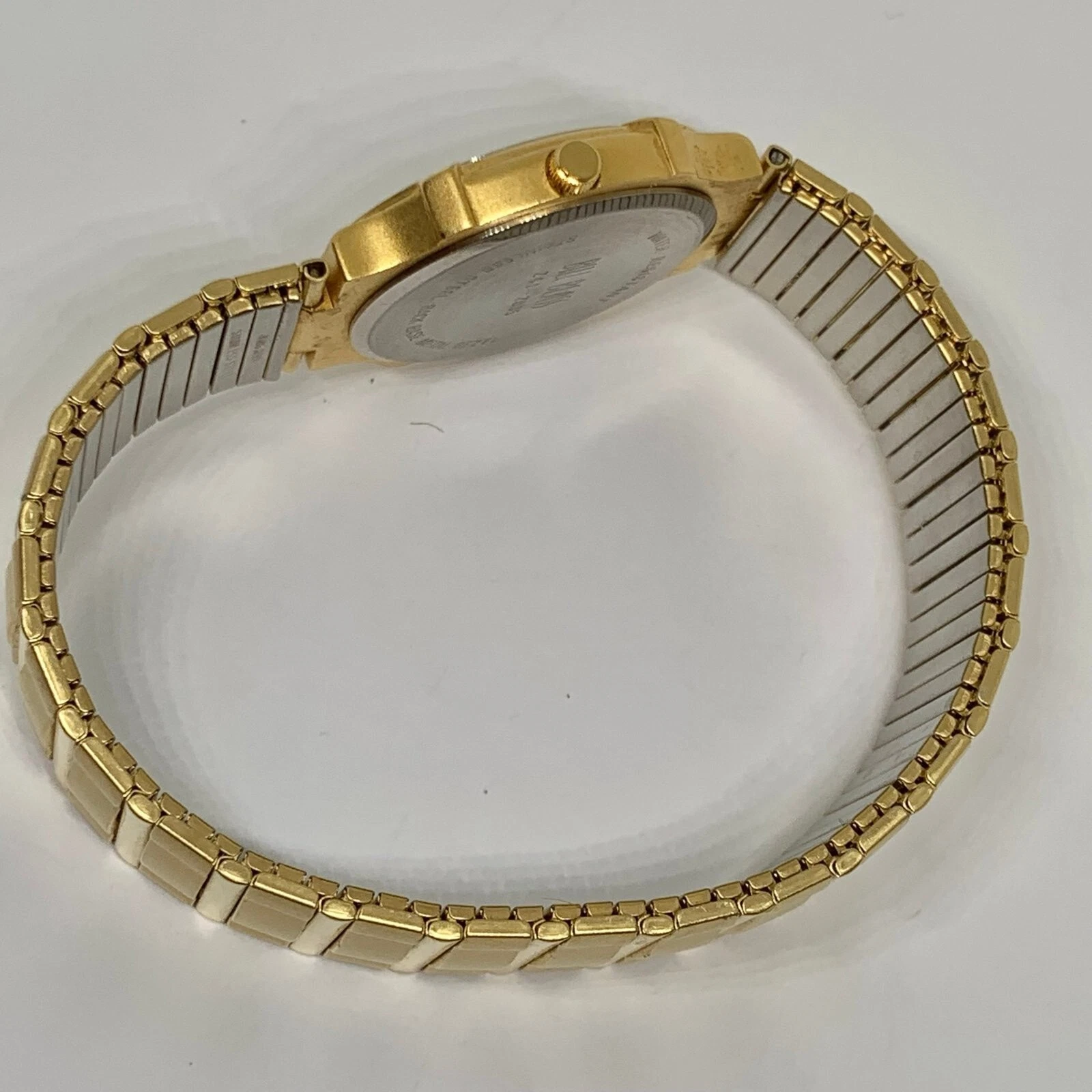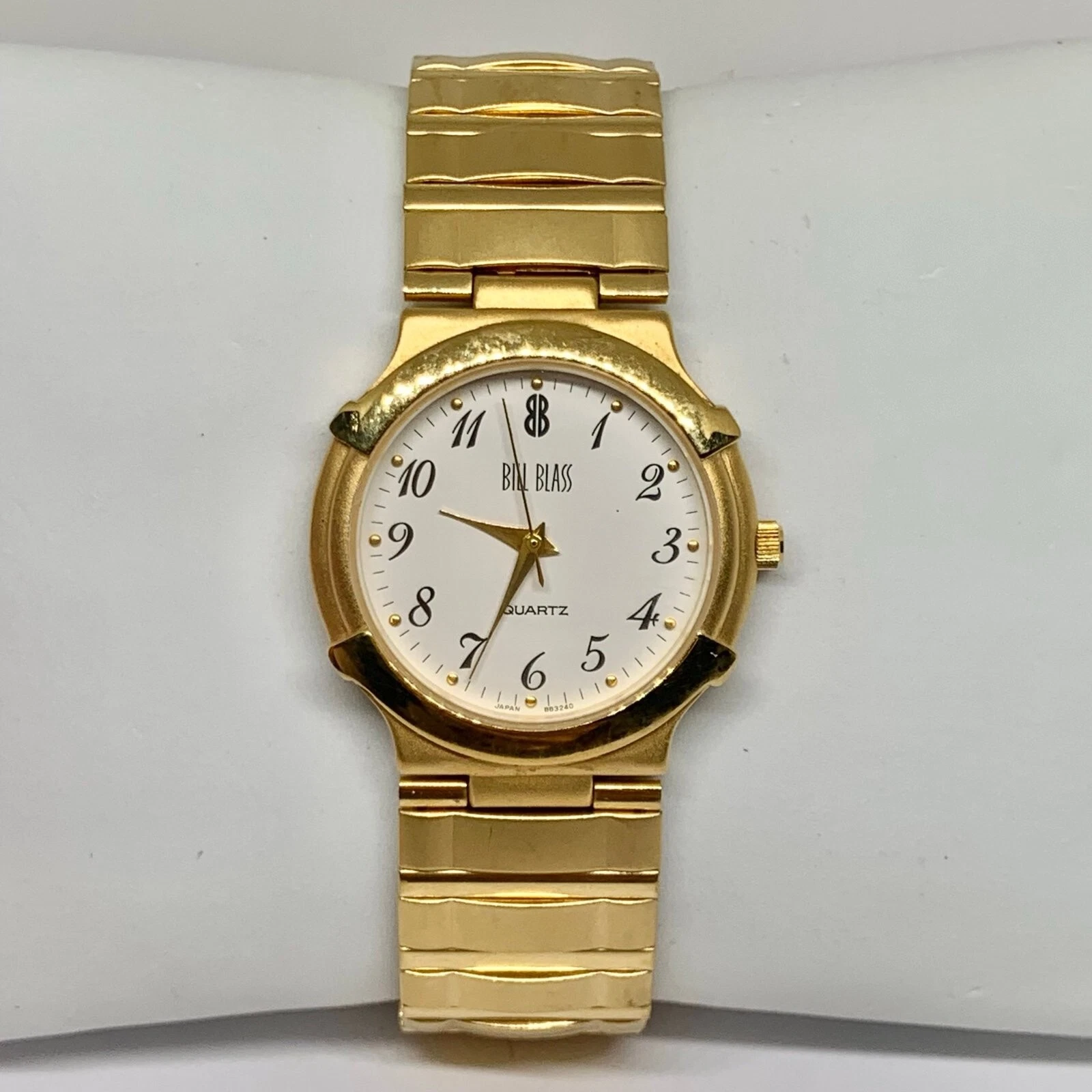 Bill blass men’s classic gold tone wrist watch 32mm case white dial , stretch ba