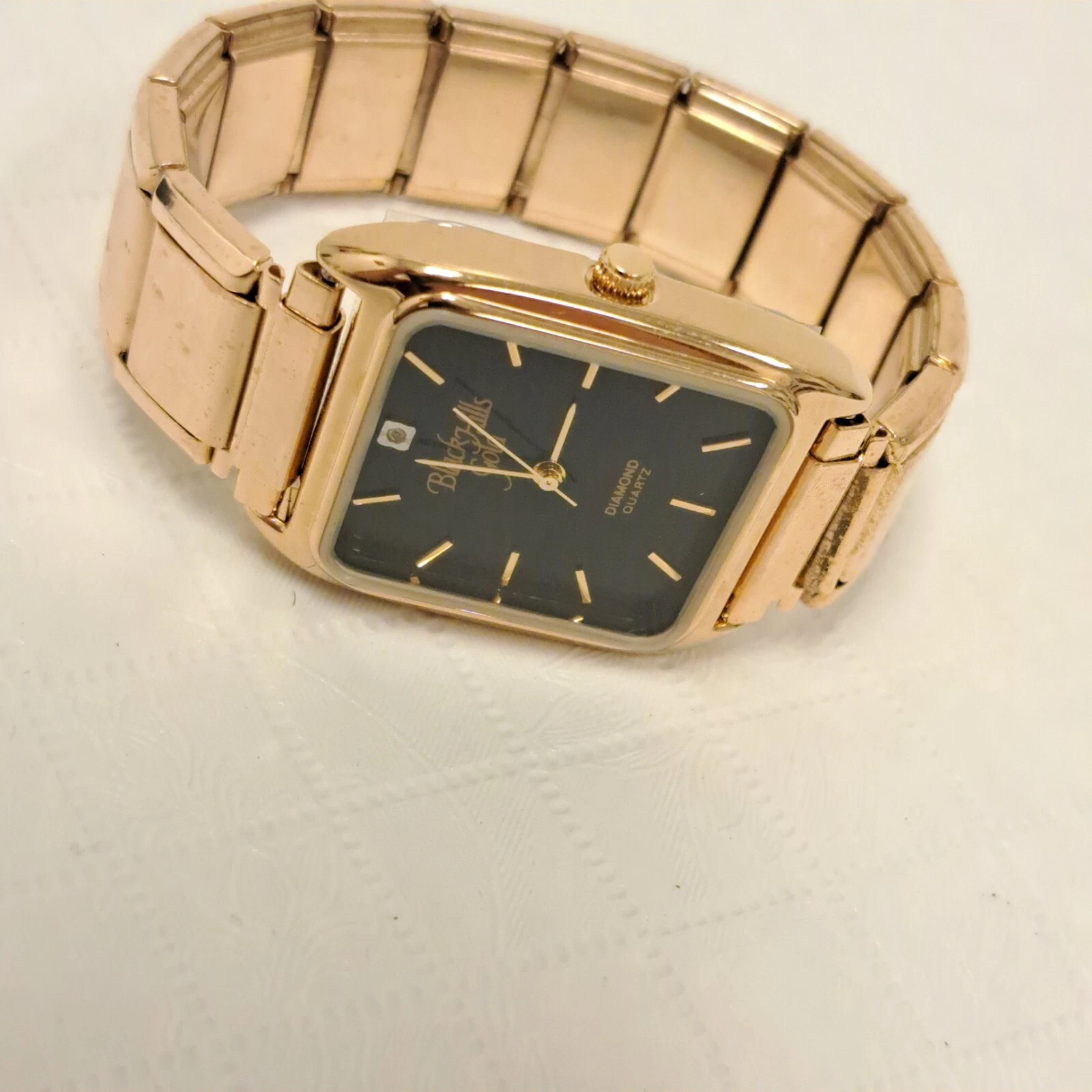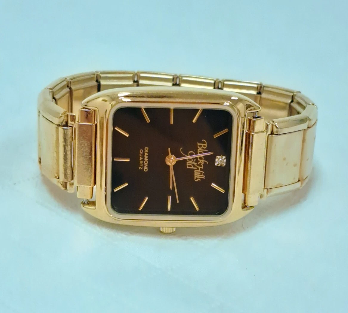 Black Hills Gold Tone Quartz Diamond Watch Black Dial Elegant