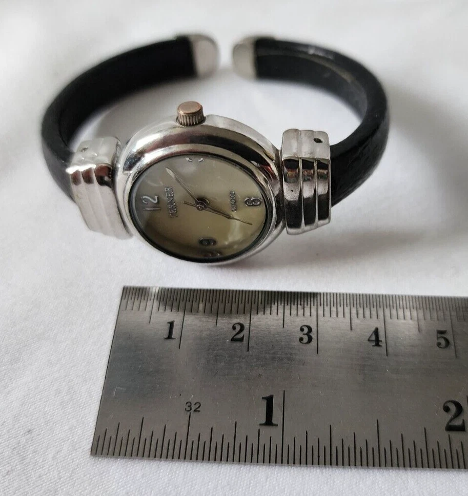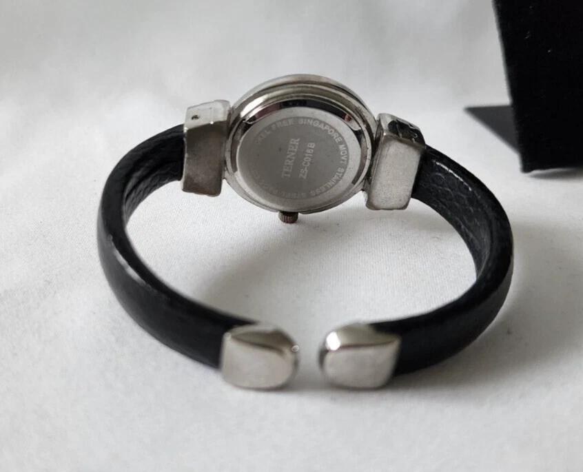 Vintage Terner Black Leather Look Spring Band Fashion Watch-Not tested