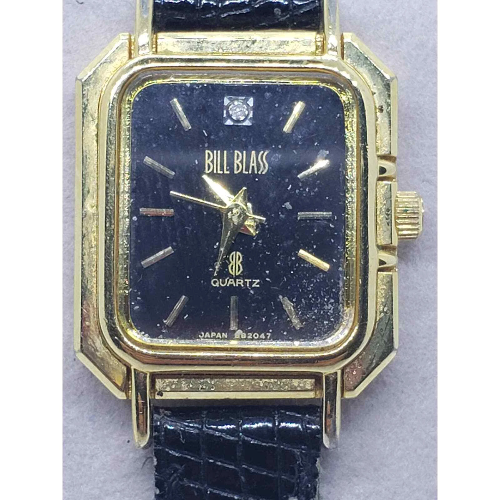Bill Blass women's watch, 300-2Y51. Blue square face with gold accents