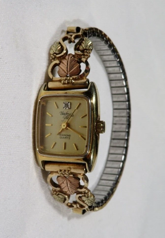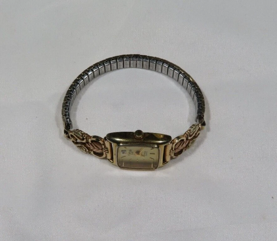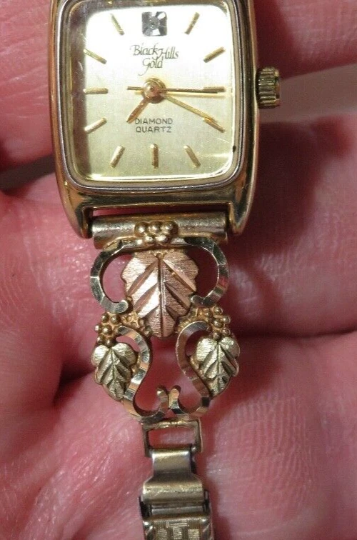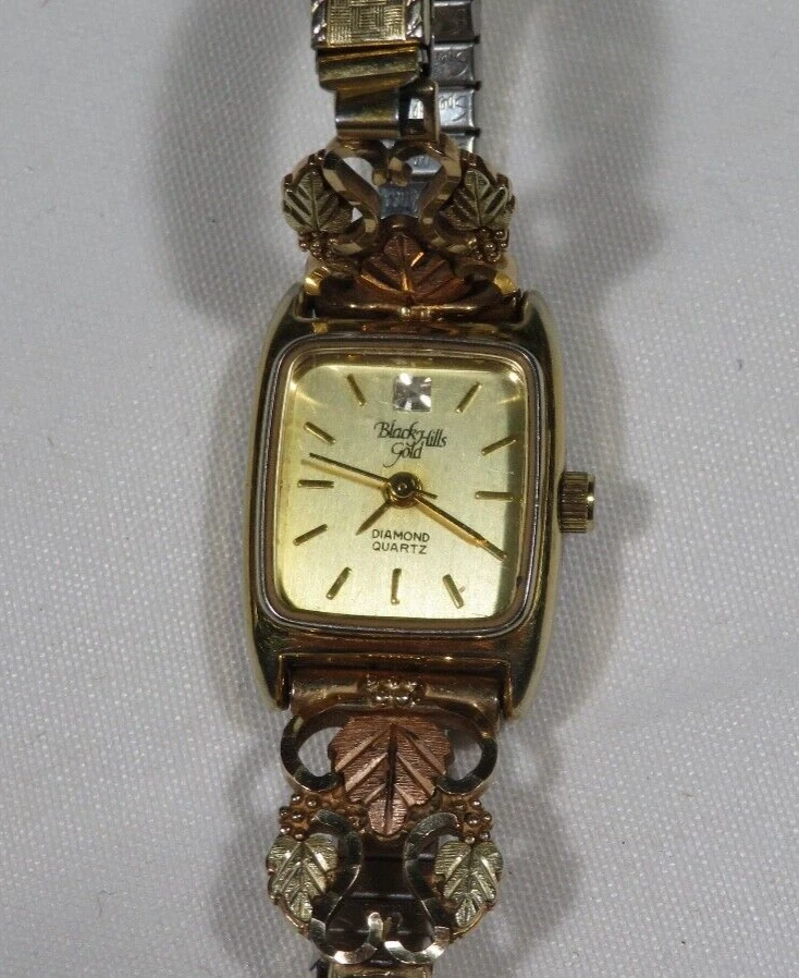 Black Hills Gold ladies quartz watch 10kt GOLD watch tips Speidel band NEW batt