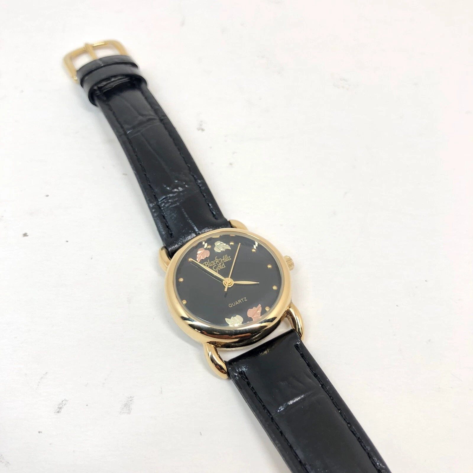 Black Hills Gold 12k Watch Solid Leaves Womens Ladies Wristwatch Working Battery