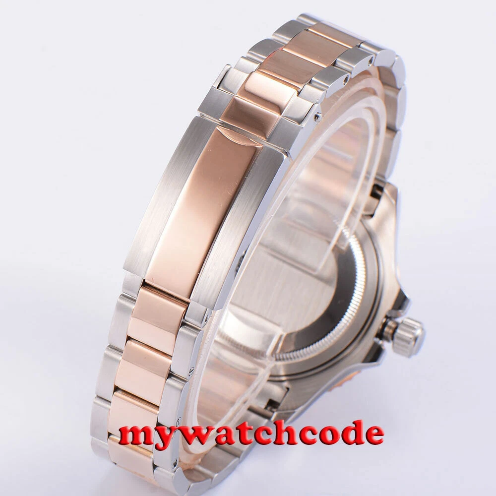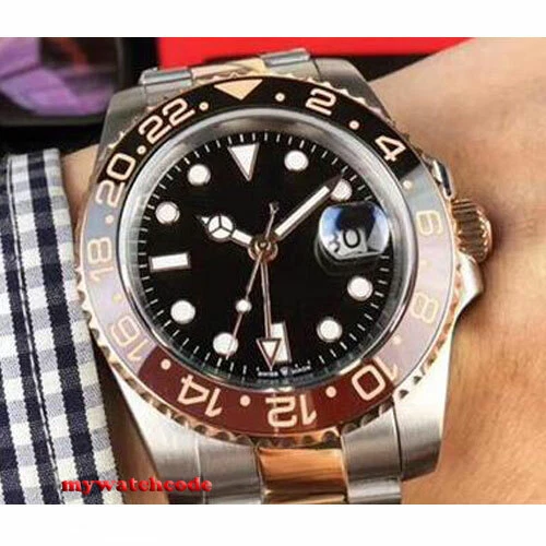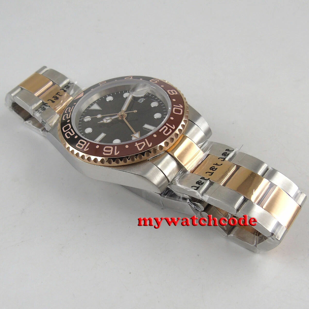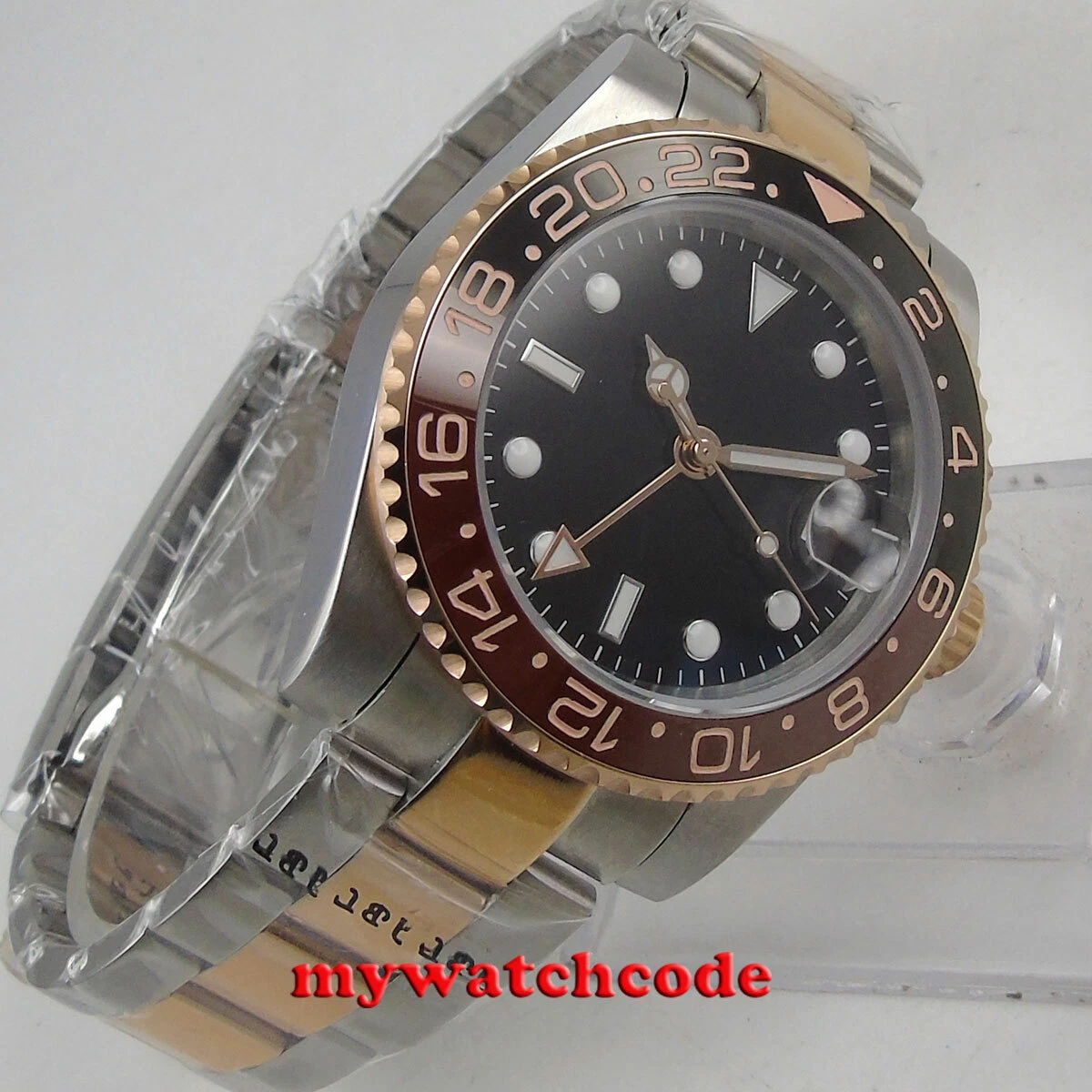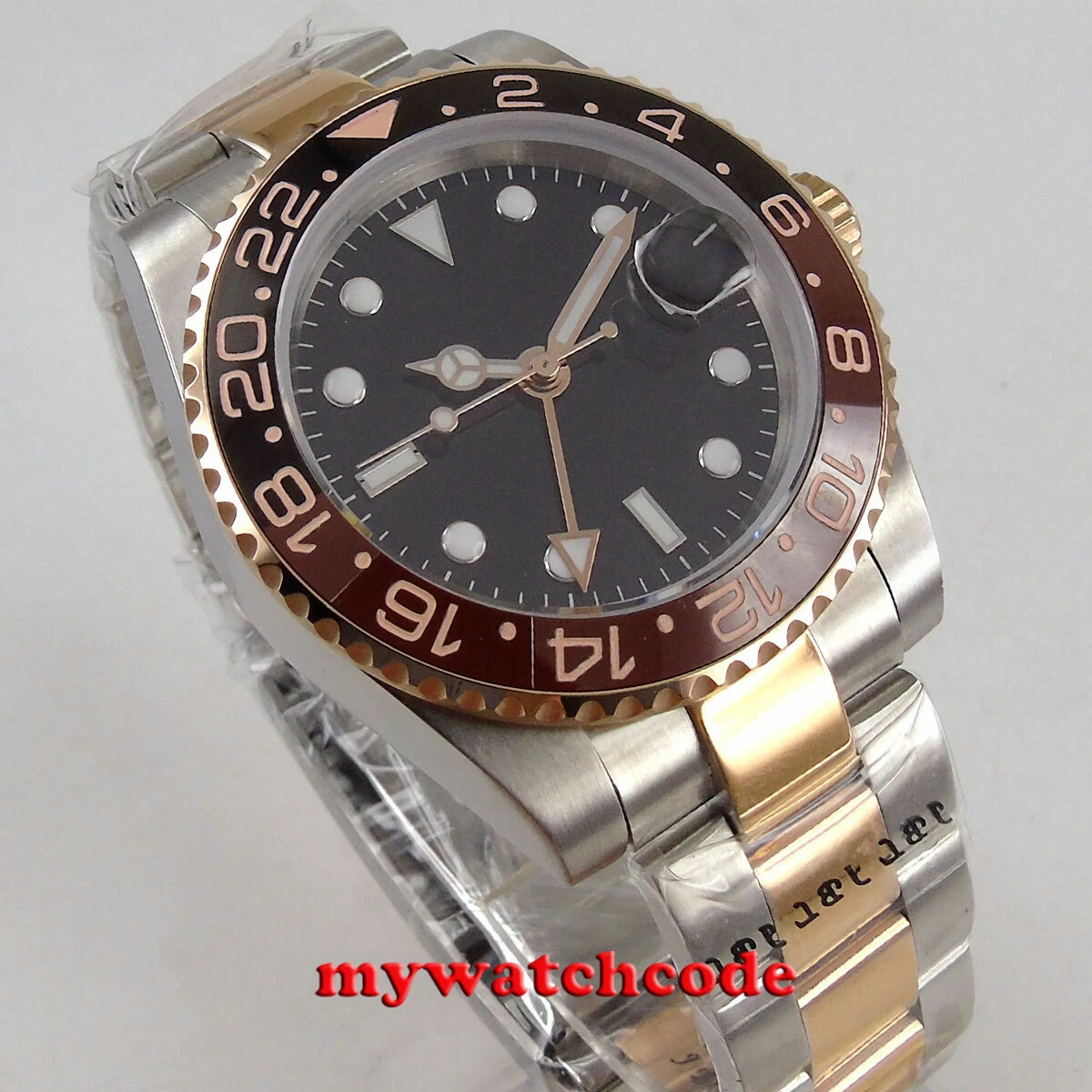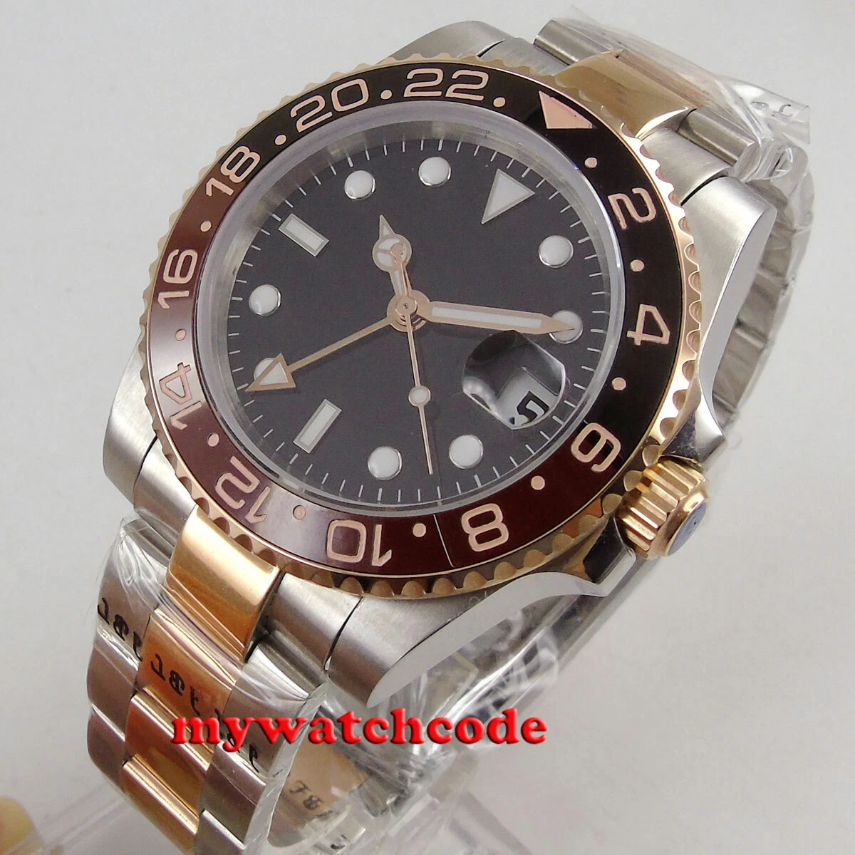 40mm bliger black dial GMT rose golden case sapphire glass automatic mens watch