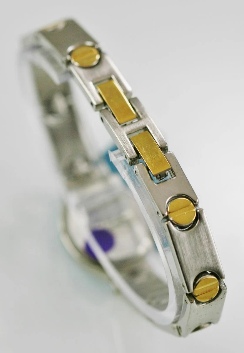 Bill Blass Watch Womens Stainless Steel Gold Silver Water Resistant White Quartz