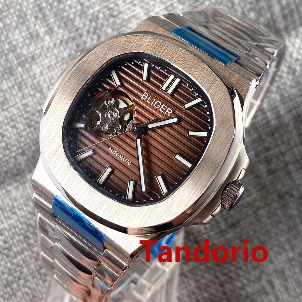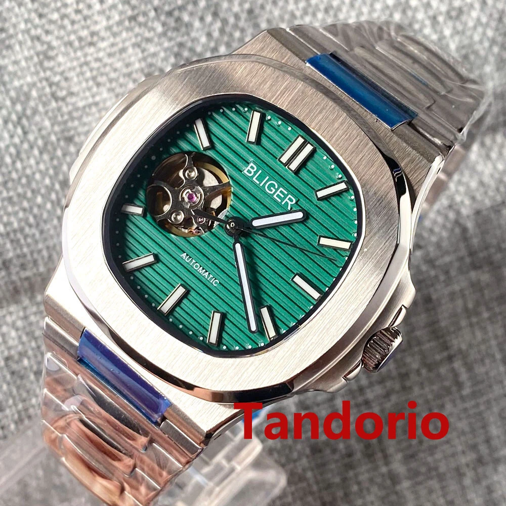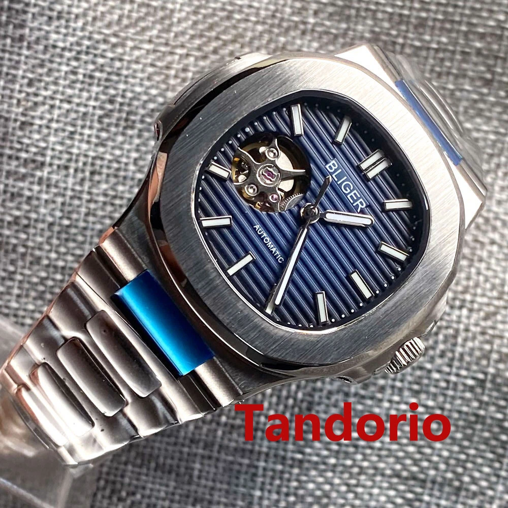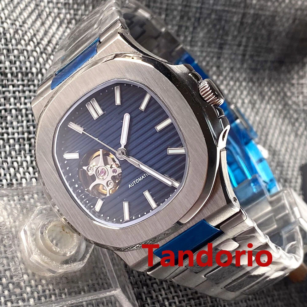 Sapphire Glass 40mm Automatic Movement Blue Dial NH38 Mental Strap Square Case