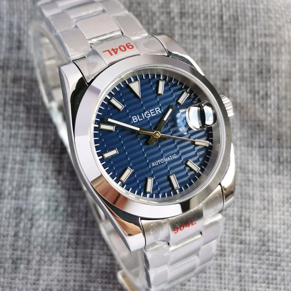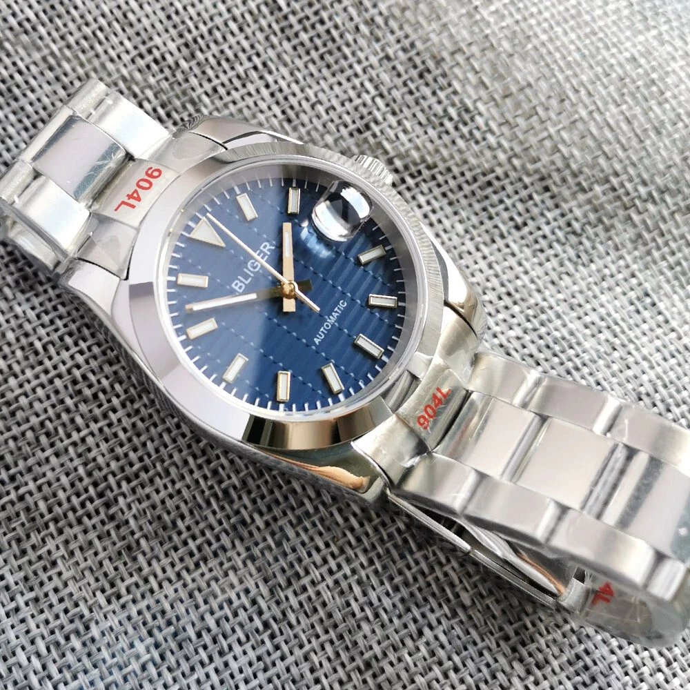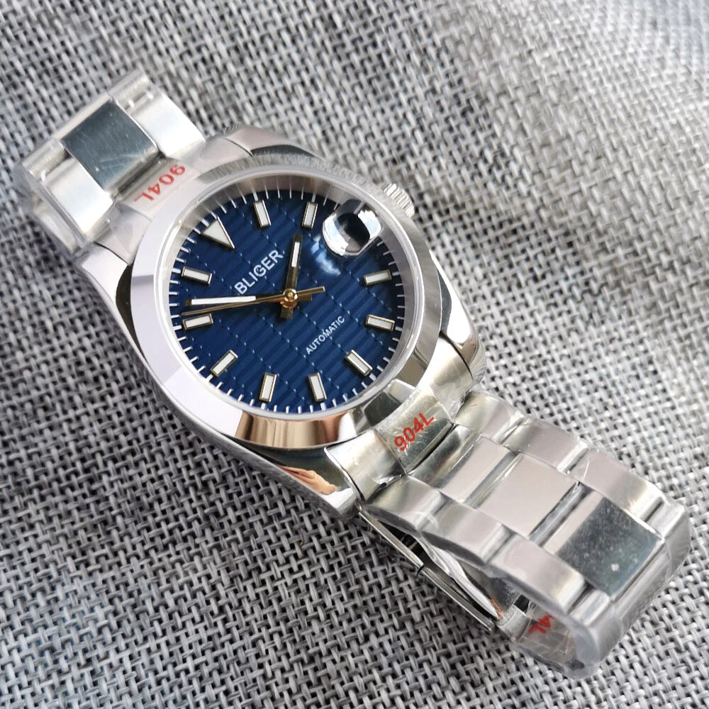 BLIGER Blue Dial Polished 36/39mm NH35A Automatic Men Watch Sapphire Glass Date