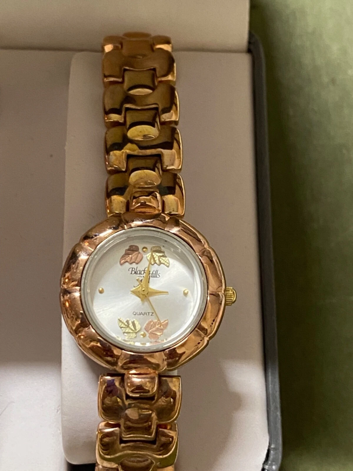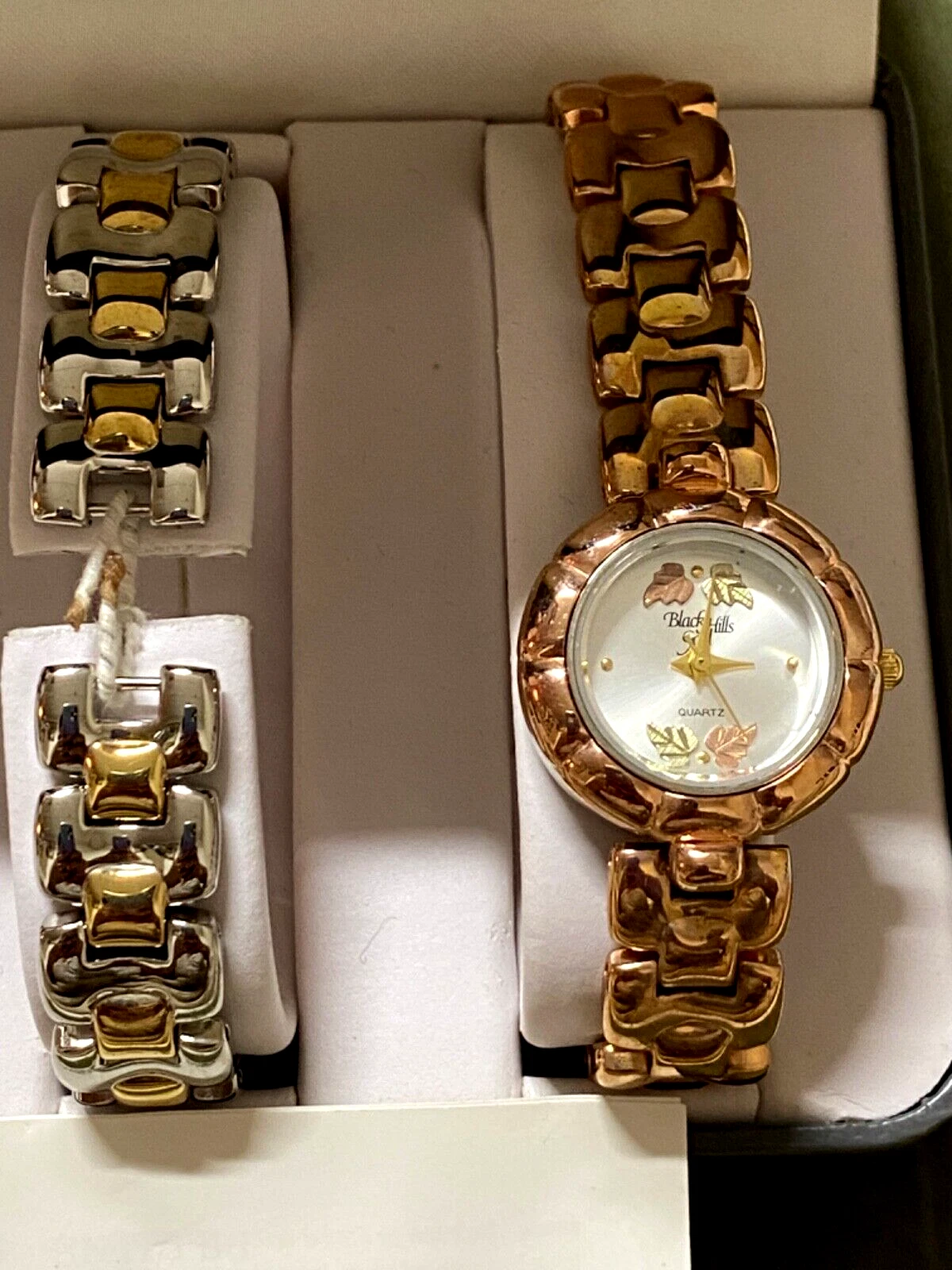 Ladies Black Hills Gold Changeable Bracelet/Bezel WatchNew. Real 14k YG Dial Acc