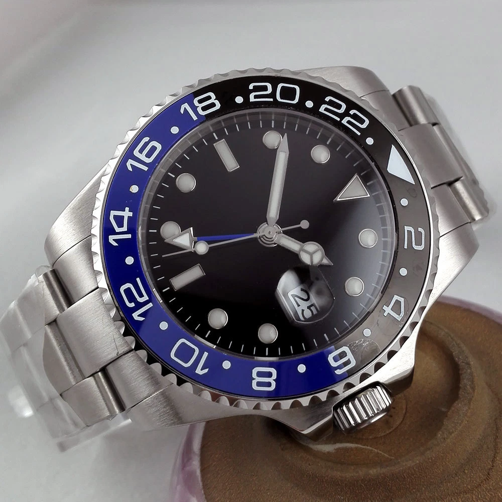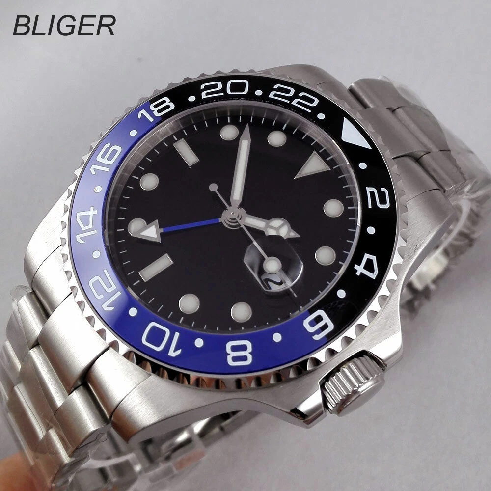 43mm BLIGER Black Dial Date Sapphire Glass GMT Automatic Movement Watch Mens Watch