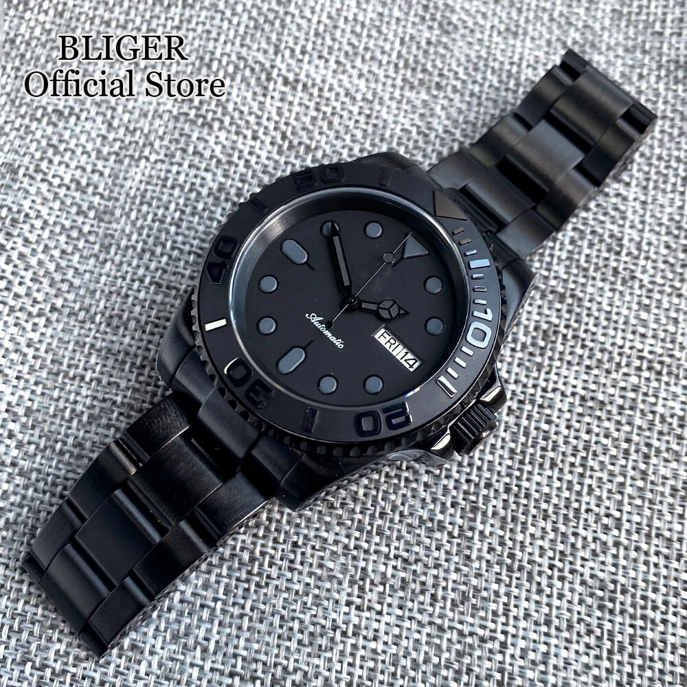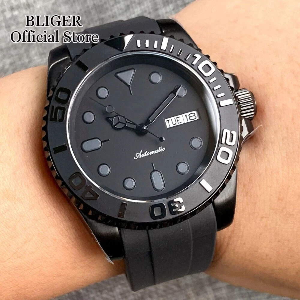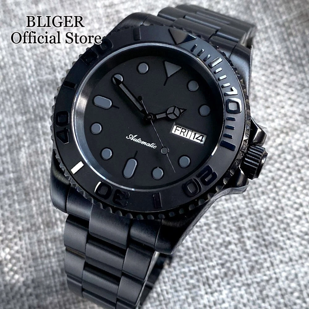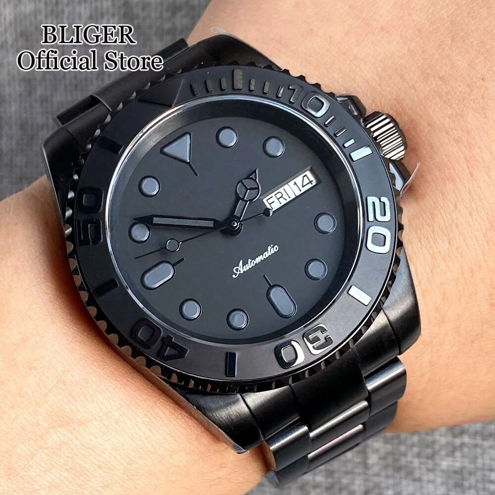 PVD Case 200M Waterproof NH36 Black Dial Date Week Automatic Men Diving Watch