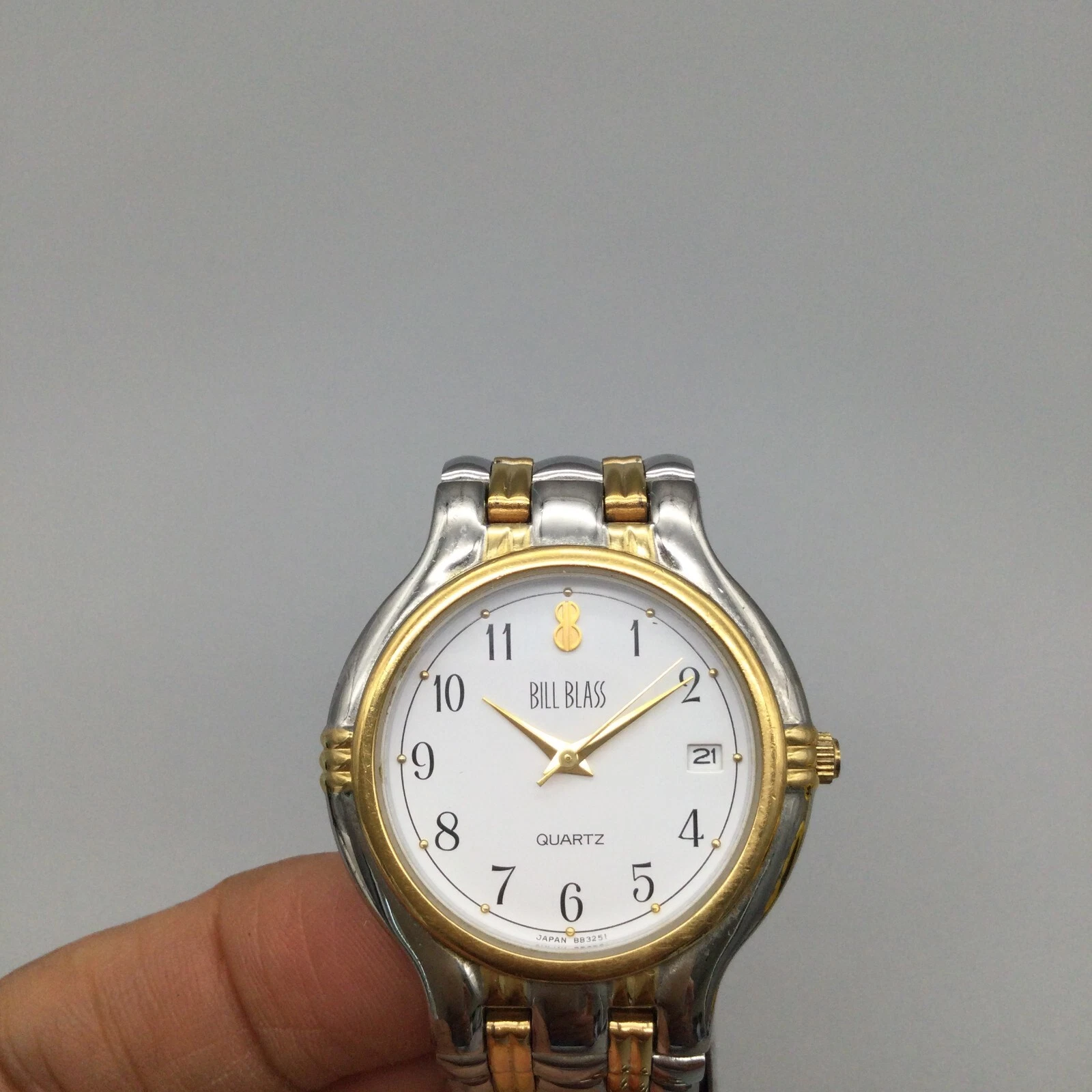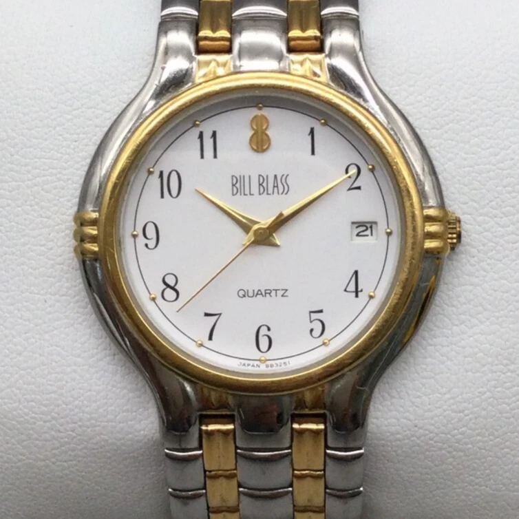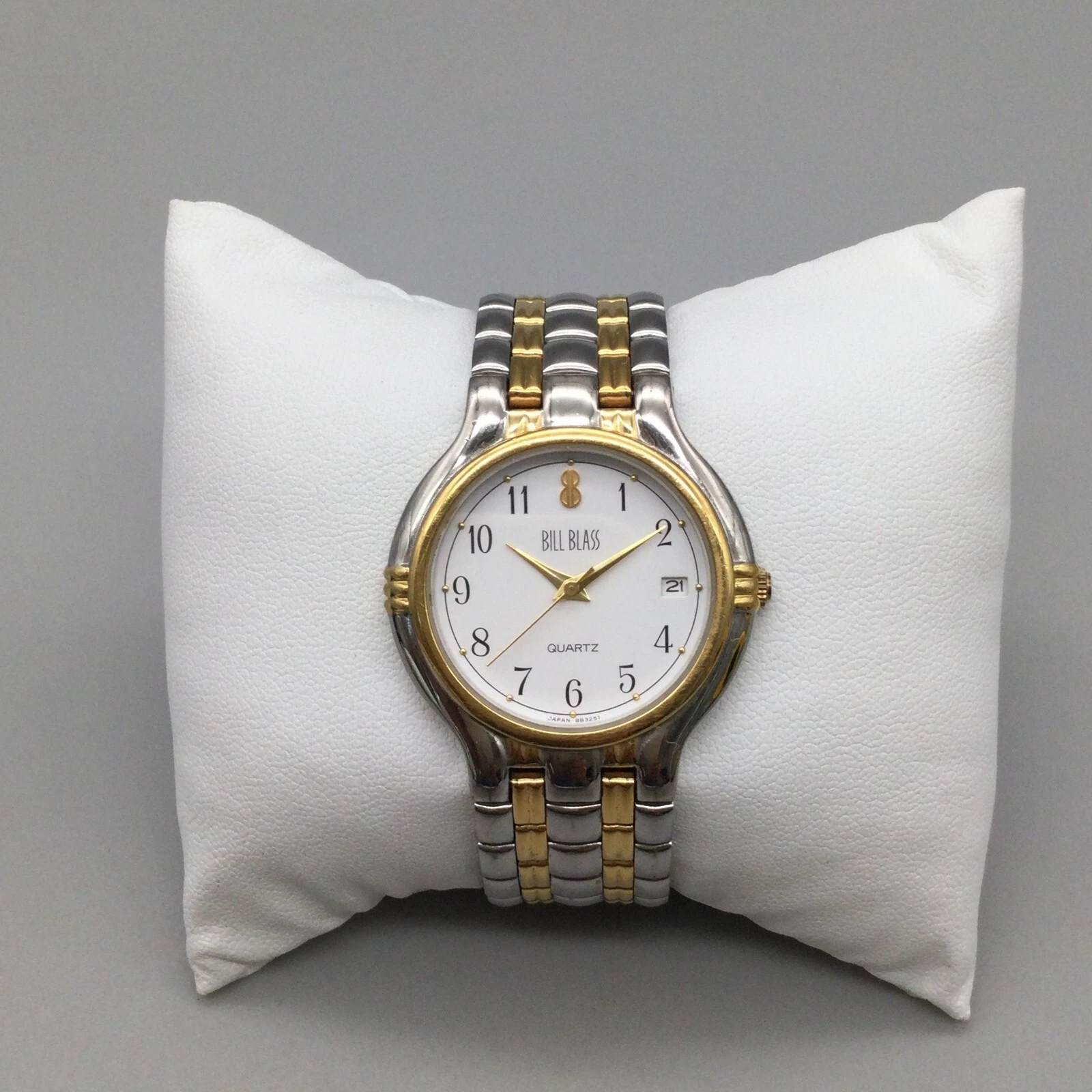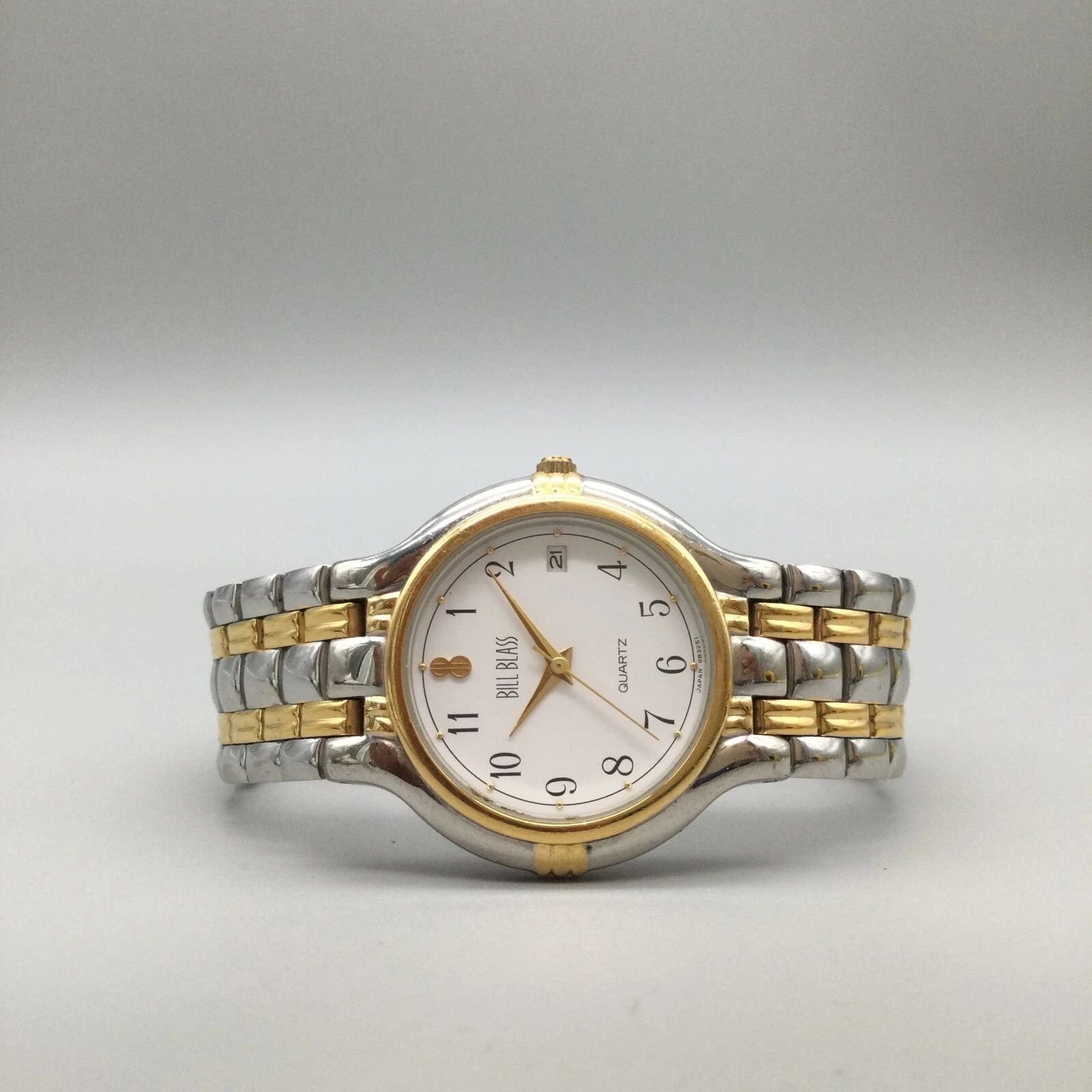 Bill Blass Midsized Face Women's 33mm Two Tone Silver Gold Date Watch 236-vx32