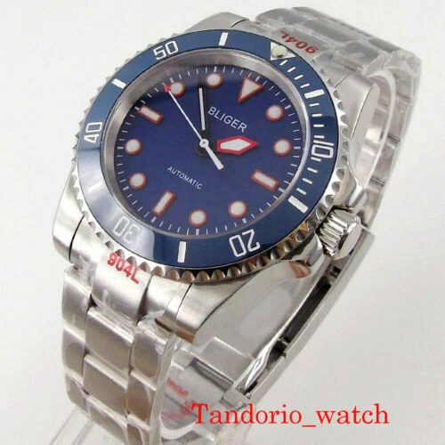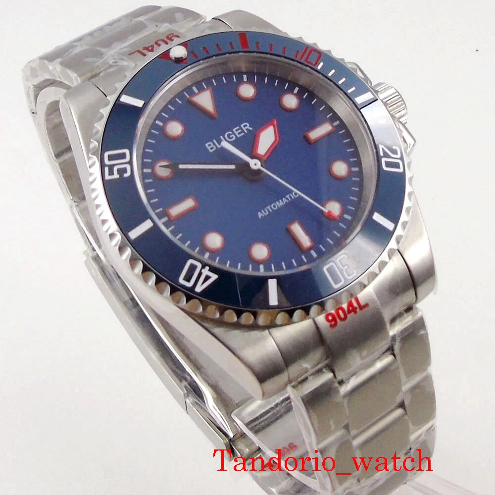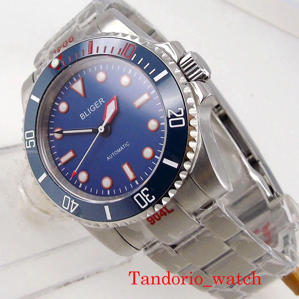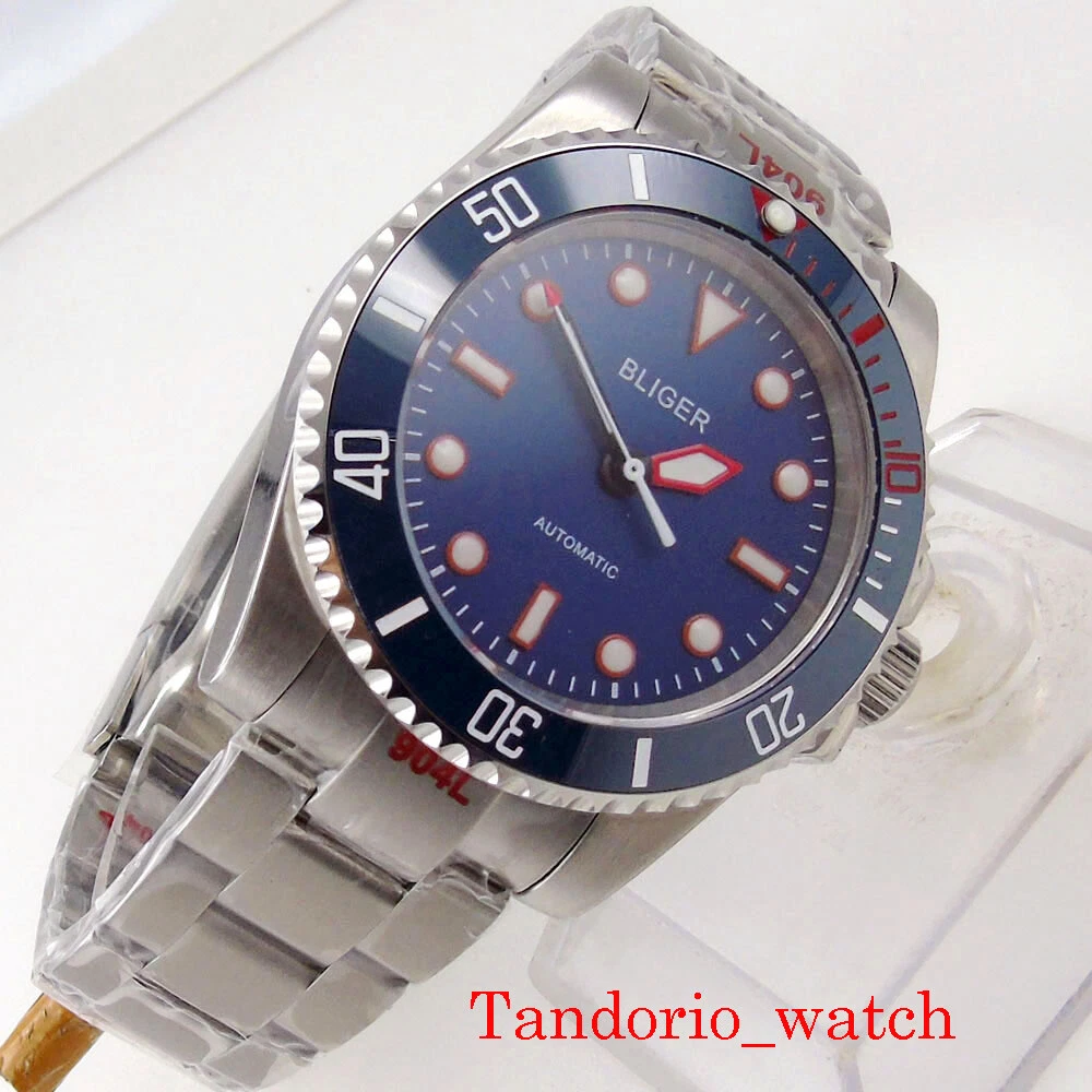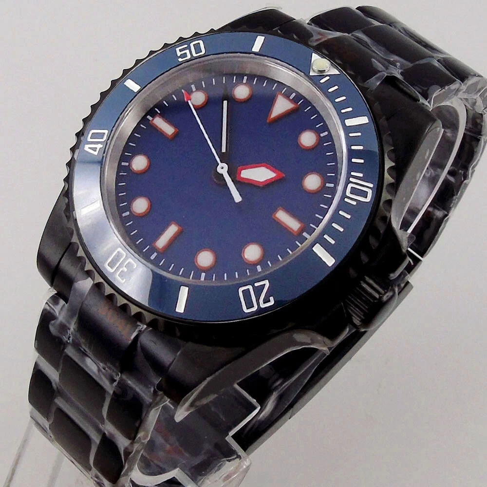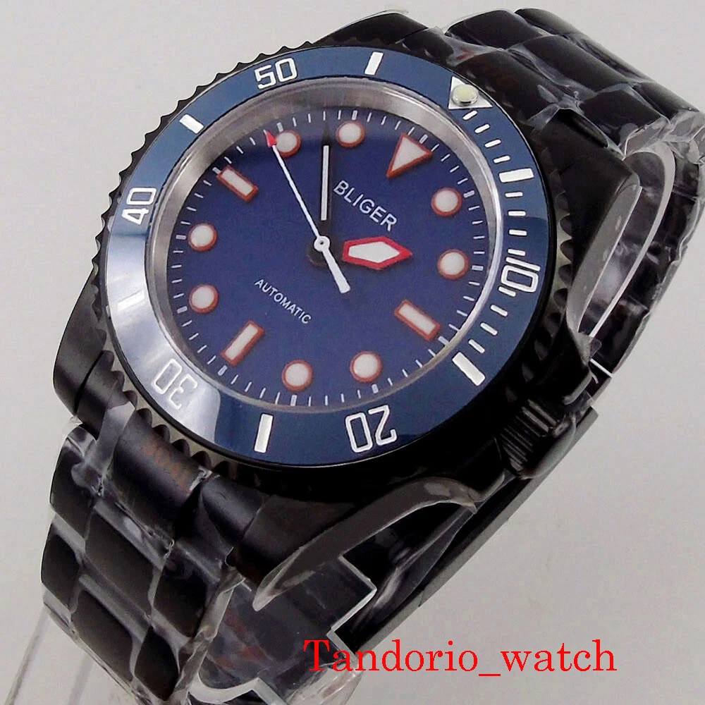 40mm Bliger Black PVD Red Mark MIYOTA 8215 Automatic Men Watch Sapphire Crystal