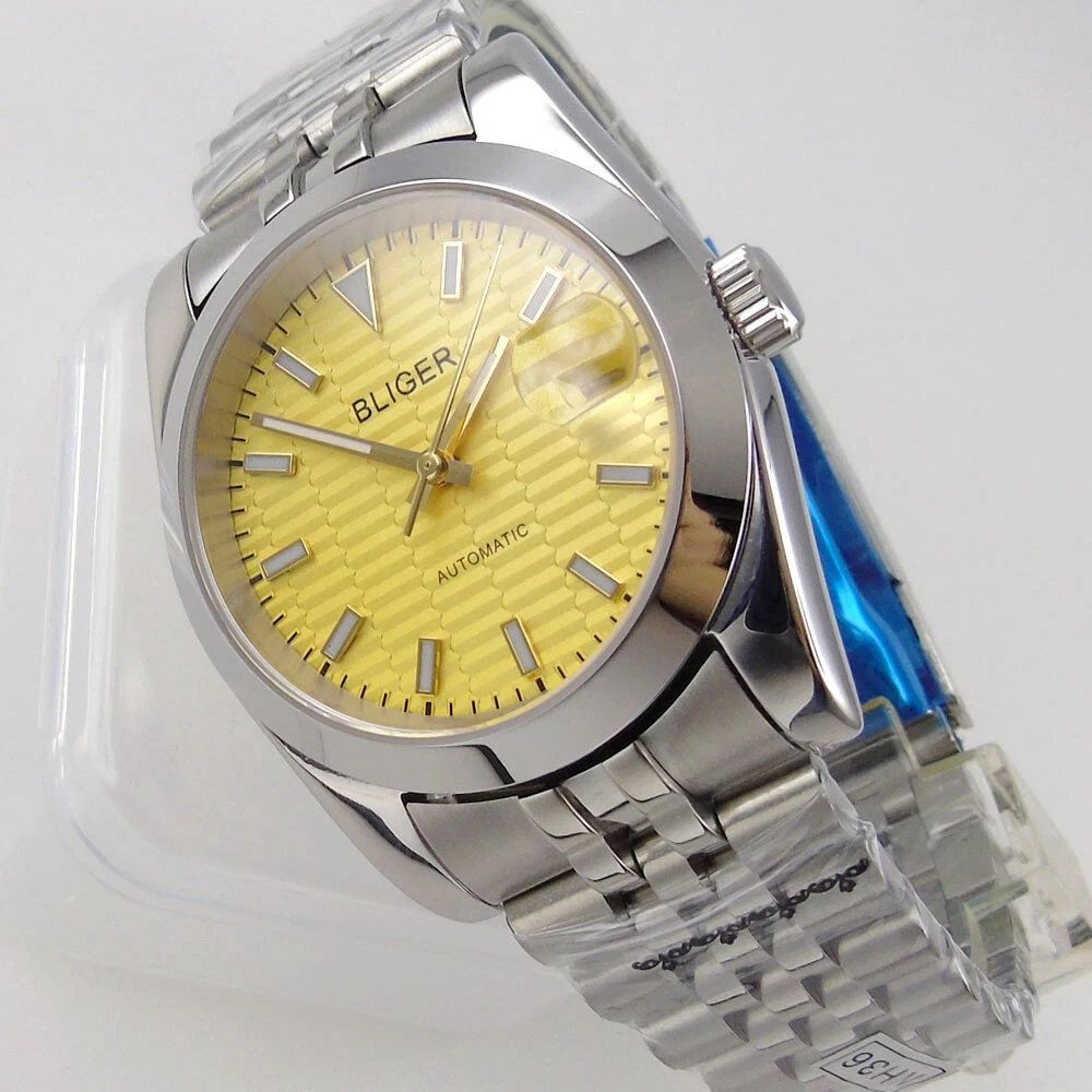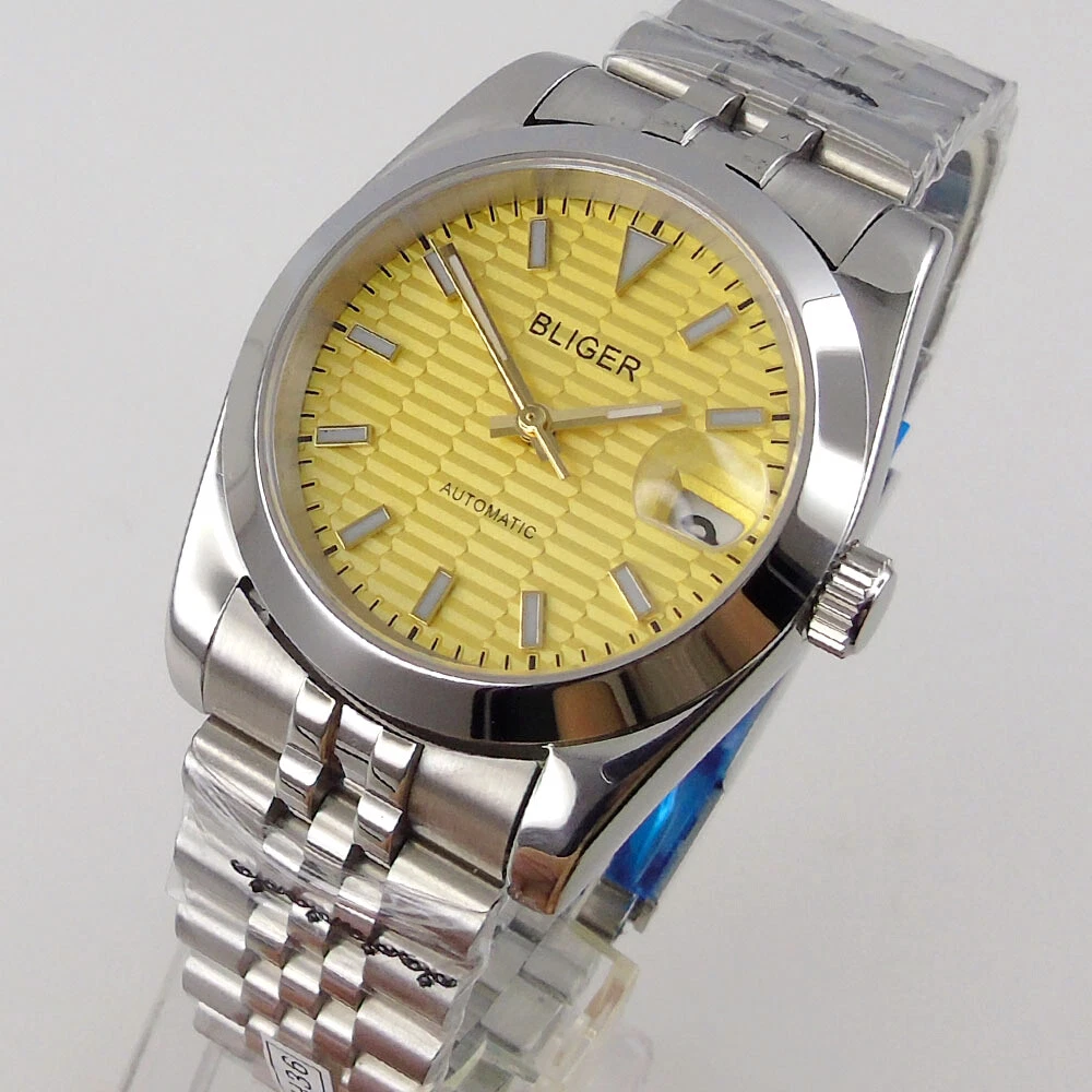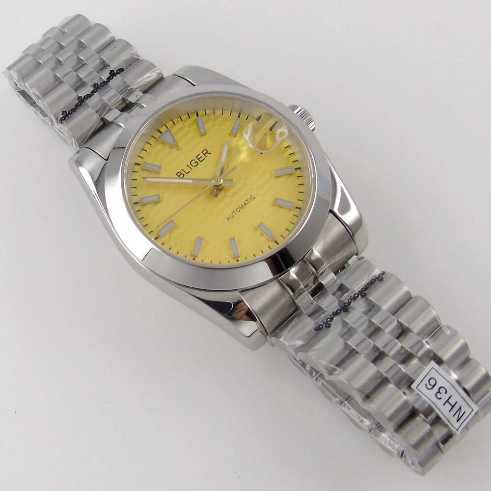 BLIGER Yellow Dial Polished Automatic Men Watch 24 Jewels NH35A Sapphire Glass