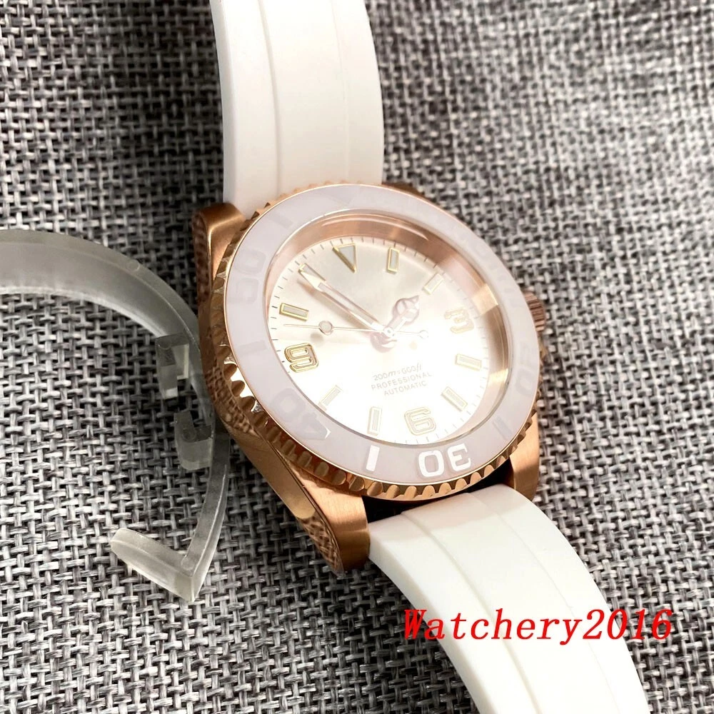 40mm Bliger Silver Dial Rotating Bezel Automatic NH35A Mens Watch Rose Gold Case