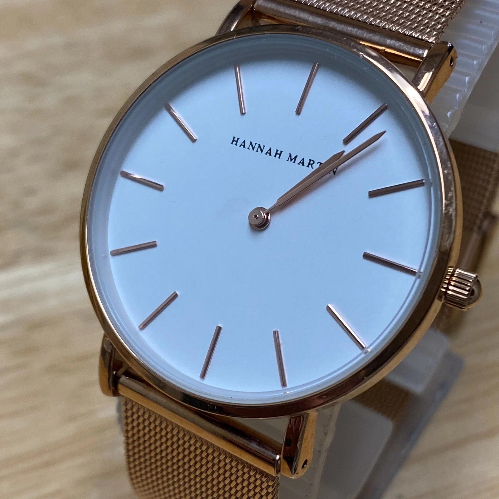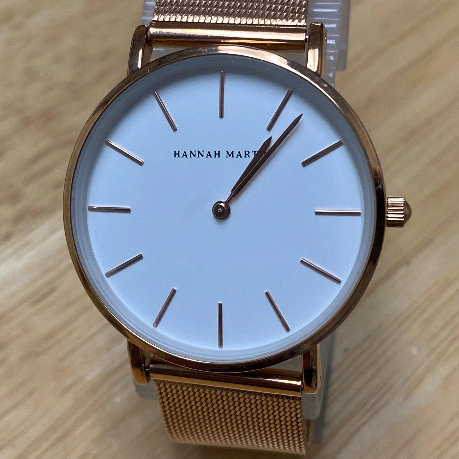 Hannah Martin Men Lady 30m Rose Gold Tone Mesh Band Analog Quartz Watch~New Batt