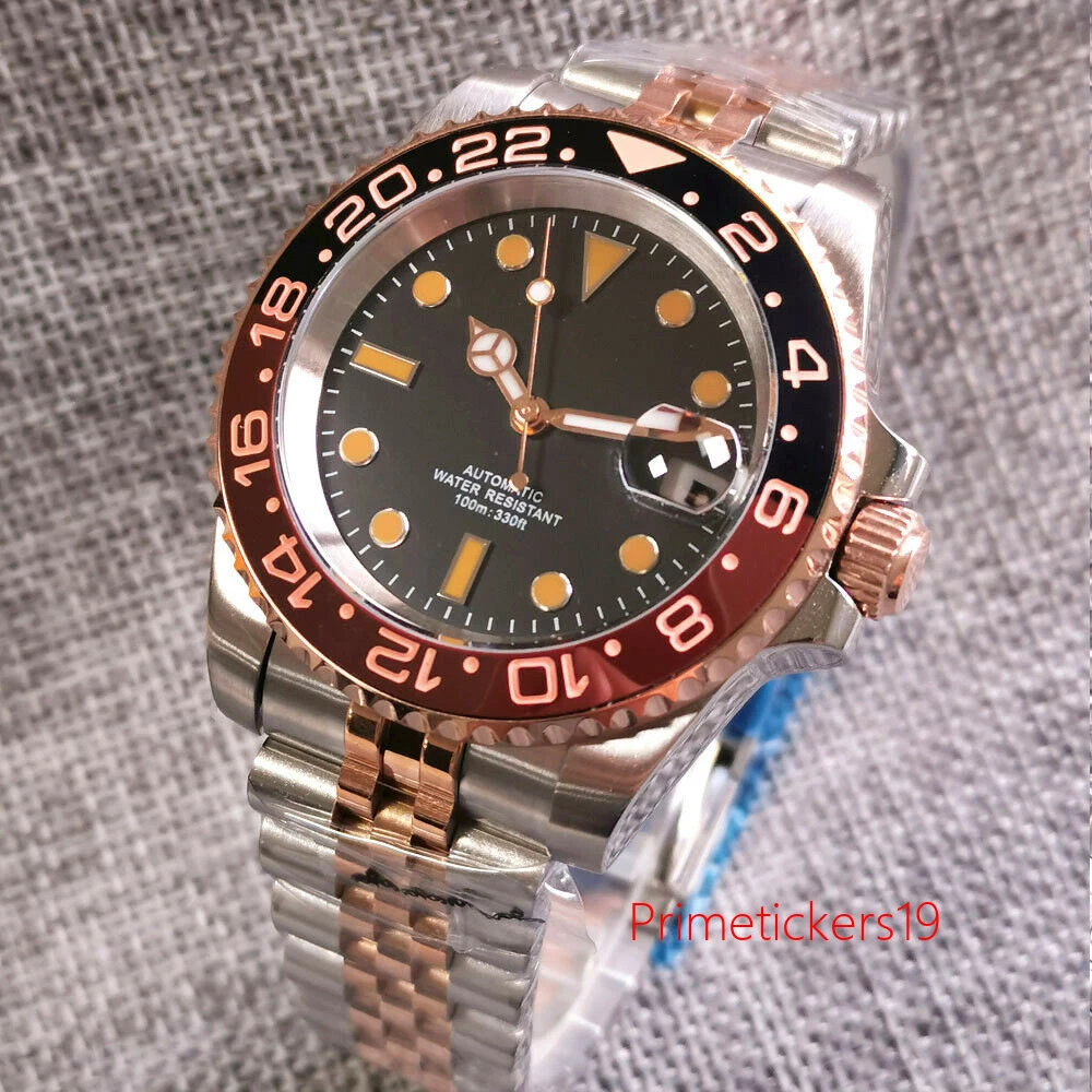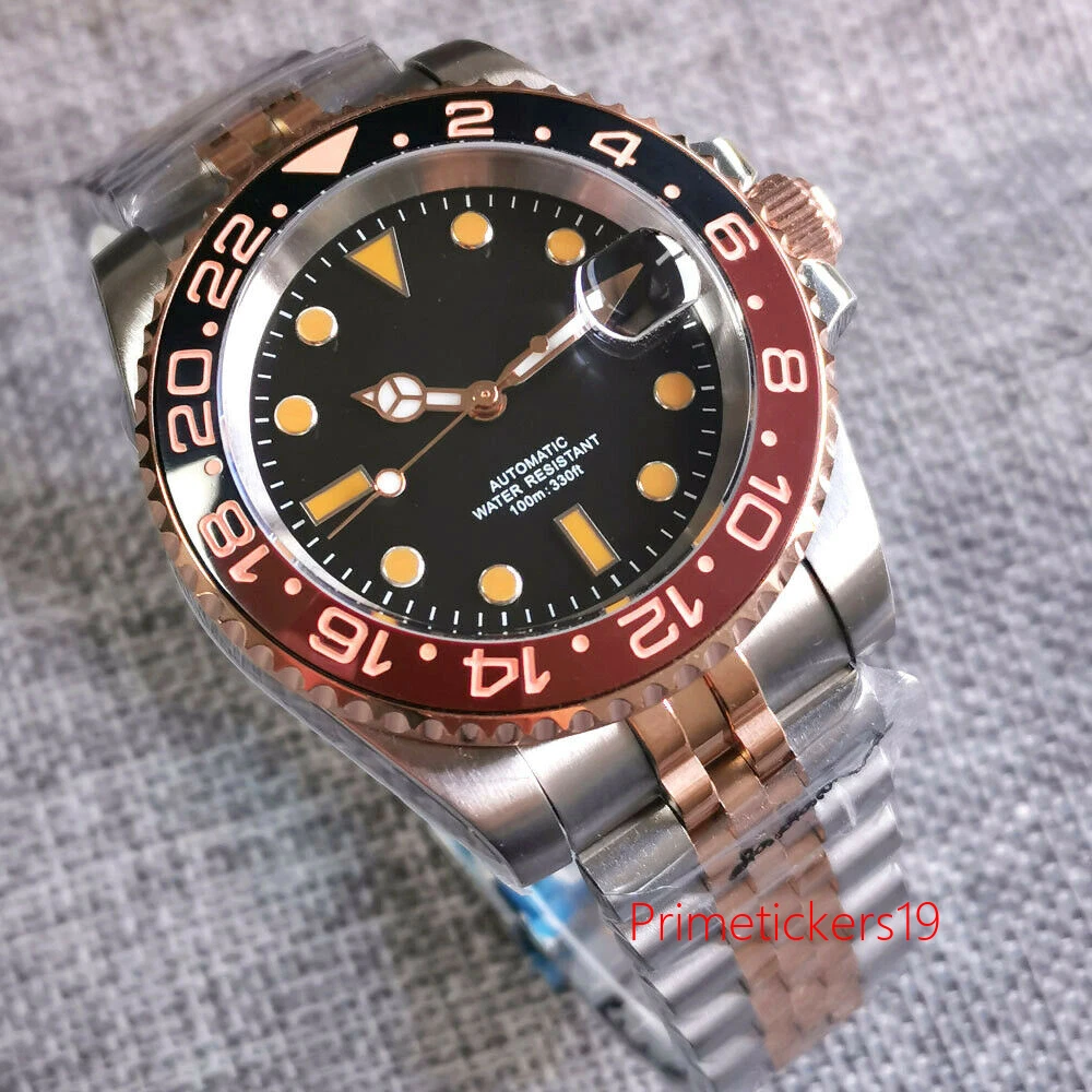40mm Automatic Men Watch Sapphire NH35A PT5000 Black Dial Date Two Tone Bracelet