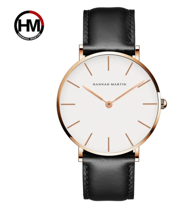 Men's Watch with Leather strap, waterproof, quartz, high quality, rose gold dial