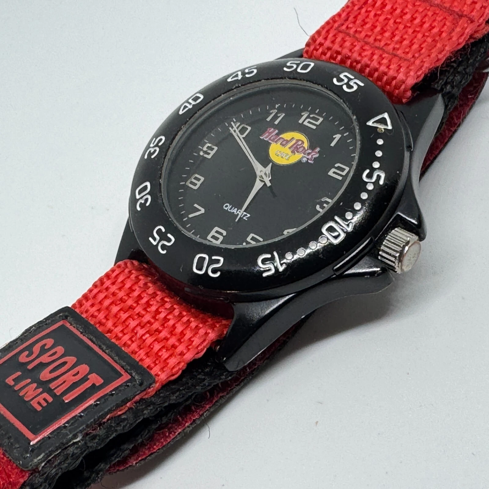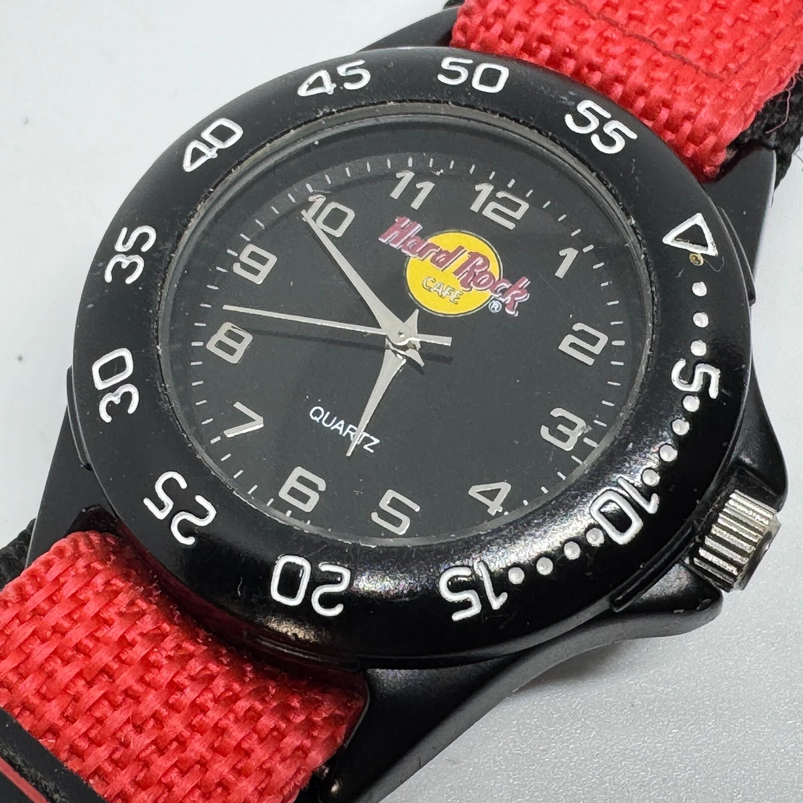 Hard Rock Cafe Quartz Watch Men Black Rotating Bezel Nylon Band New Battery