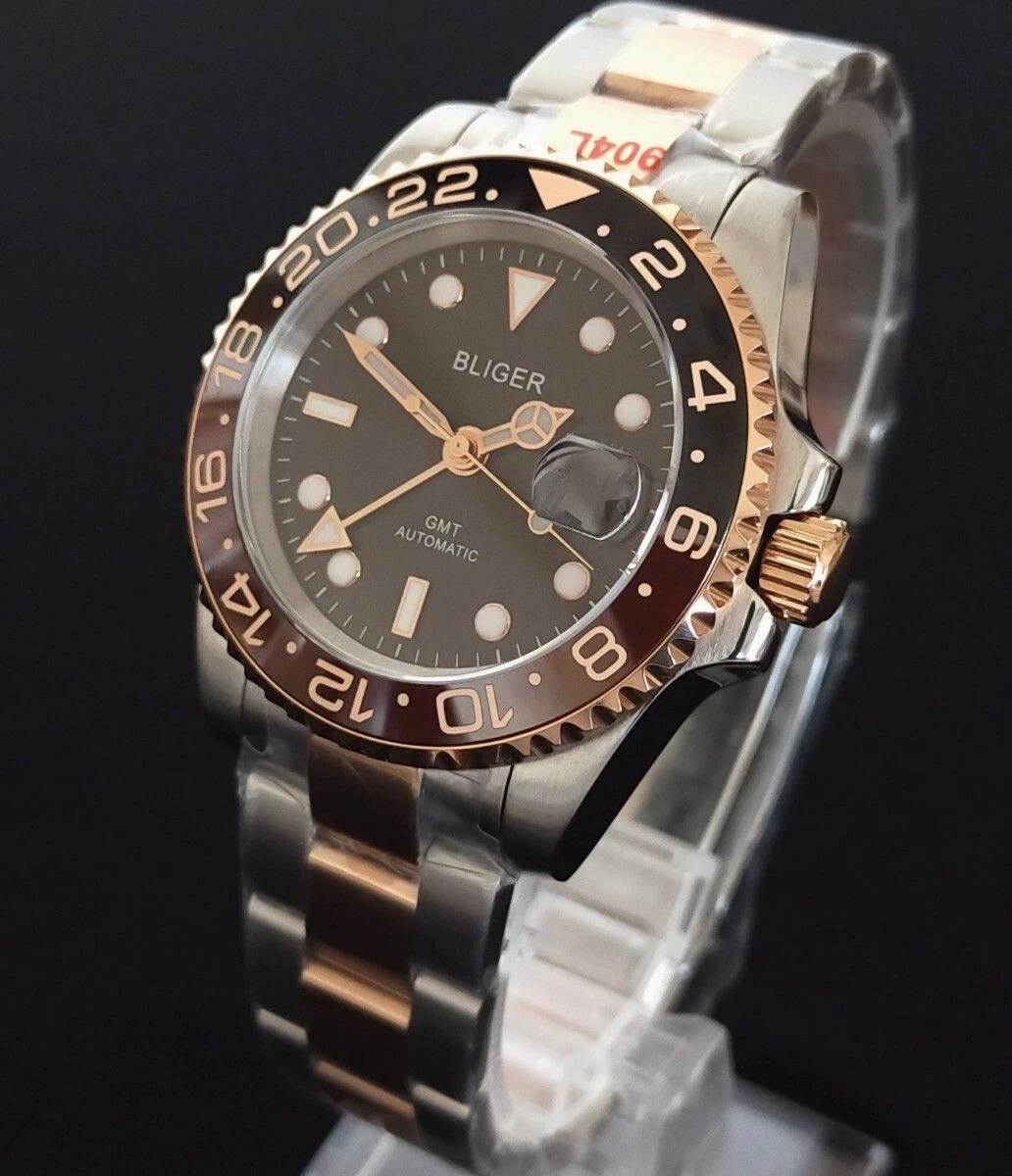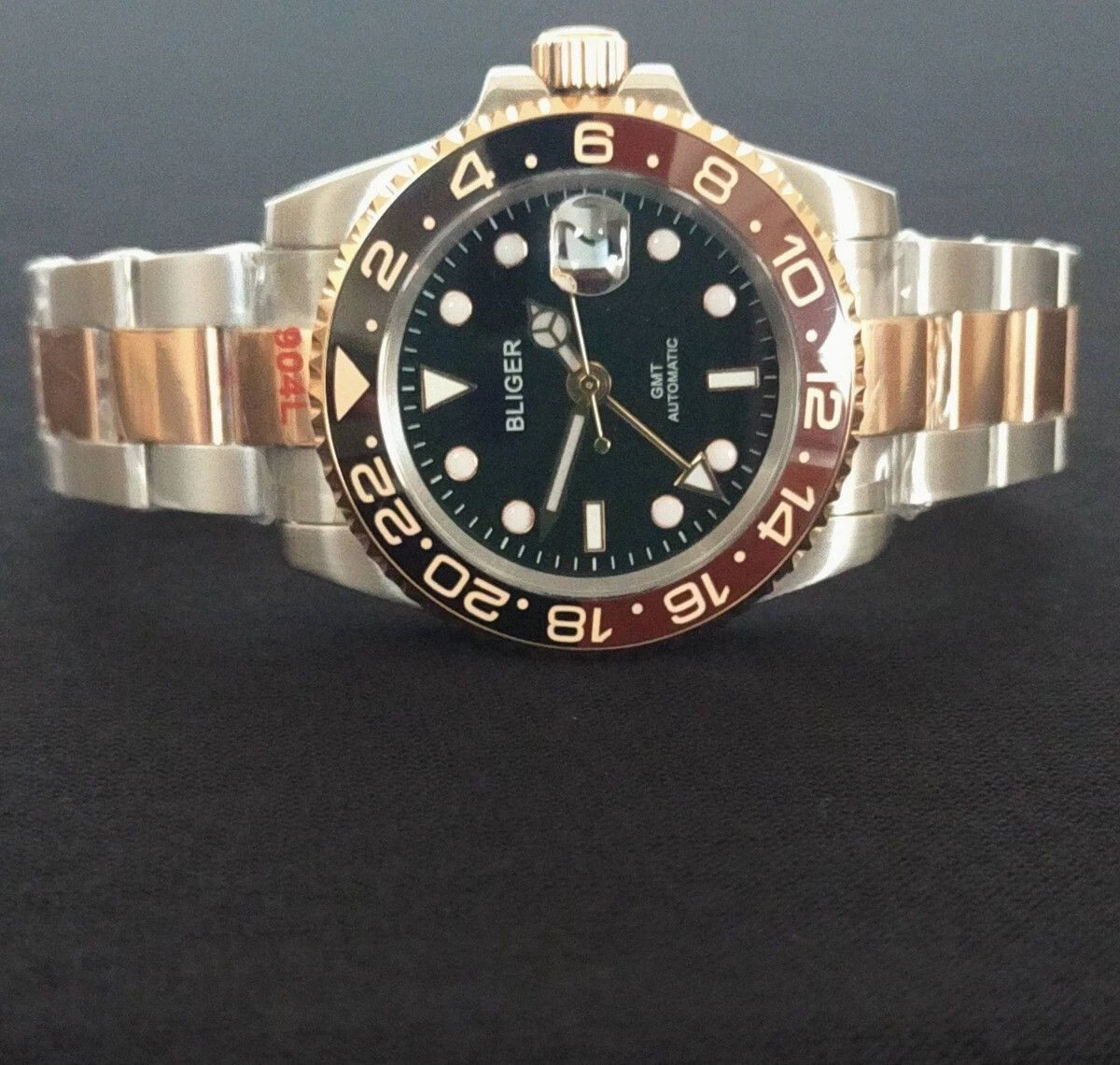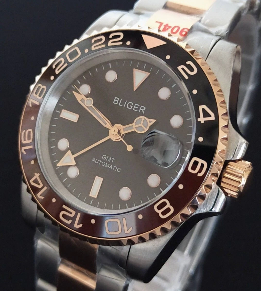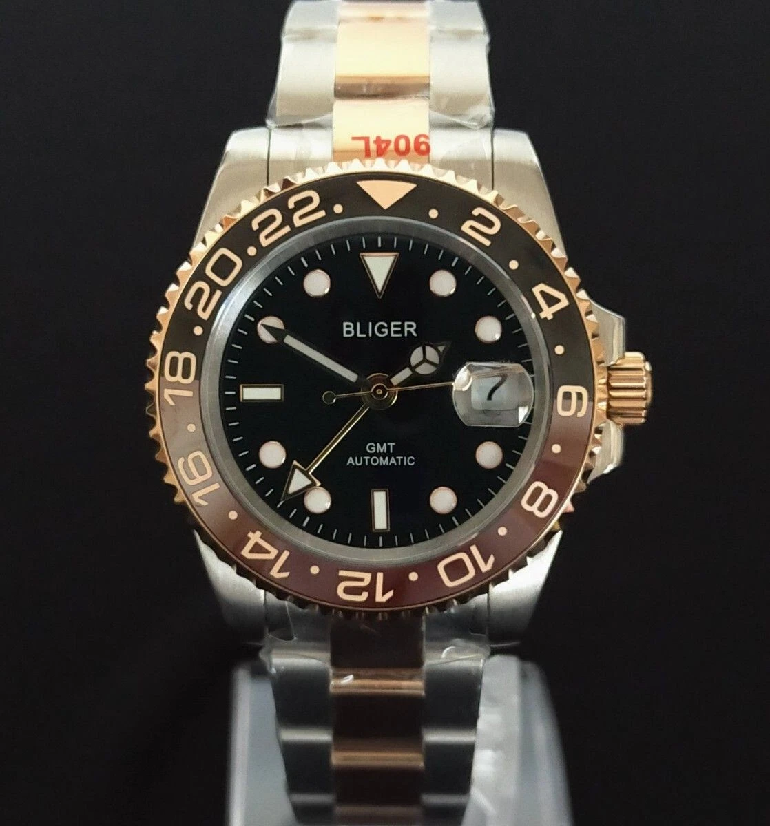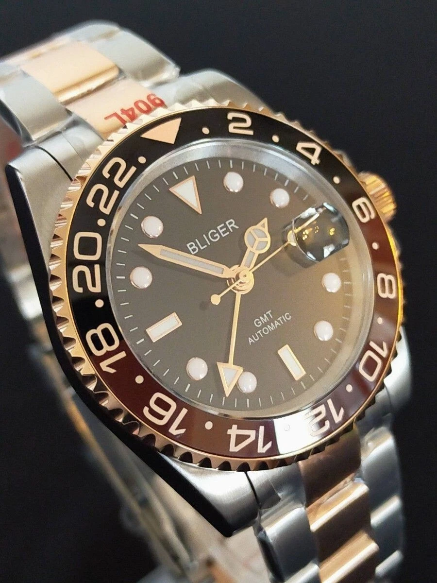 BLIGER GMT Automatic Watch Sapphire Crystal & Ceramic Bezel - Rose Gold 0080