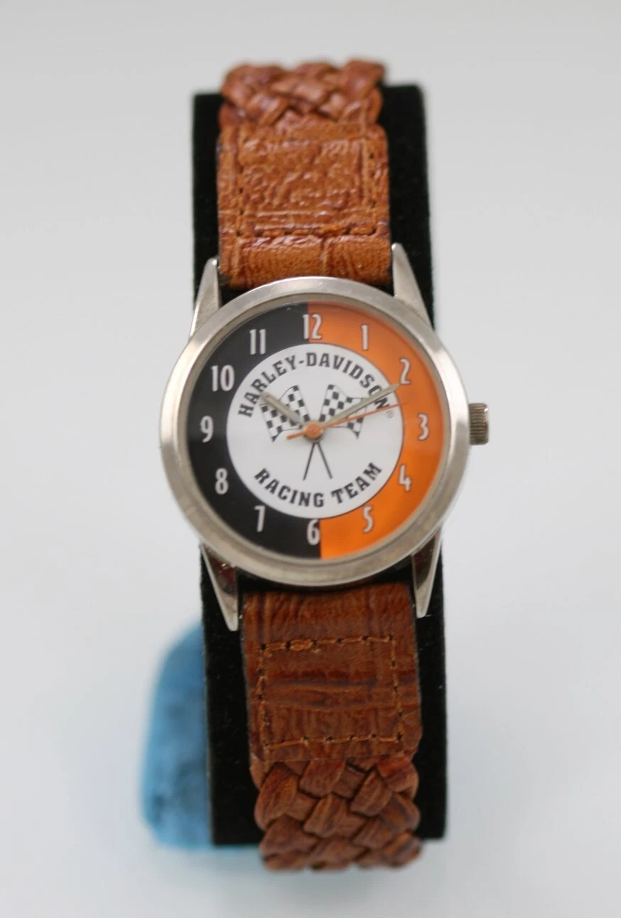 Harley Davidson Racing Team Womens Watch Rare Stainless Silver Leather Quartz