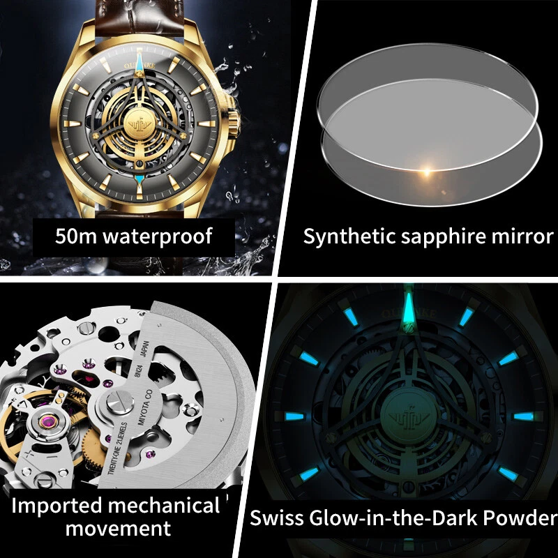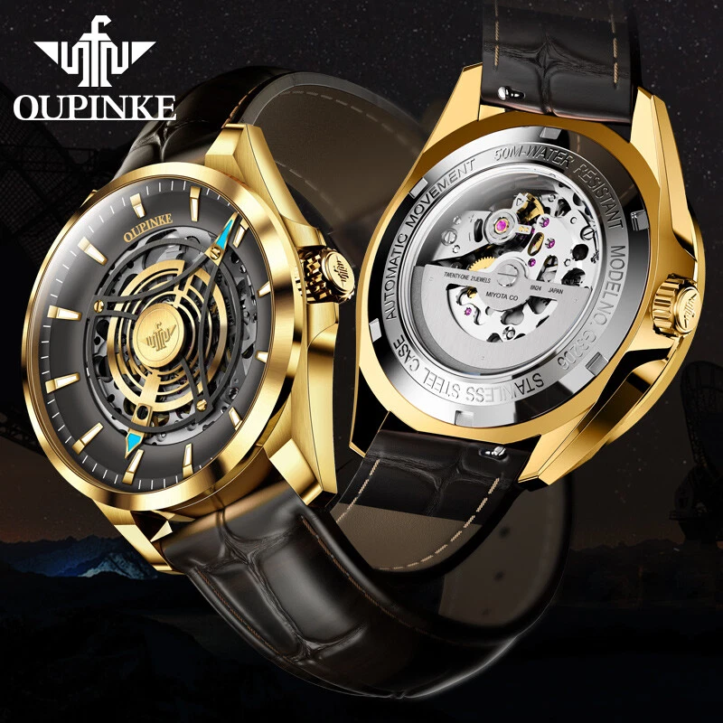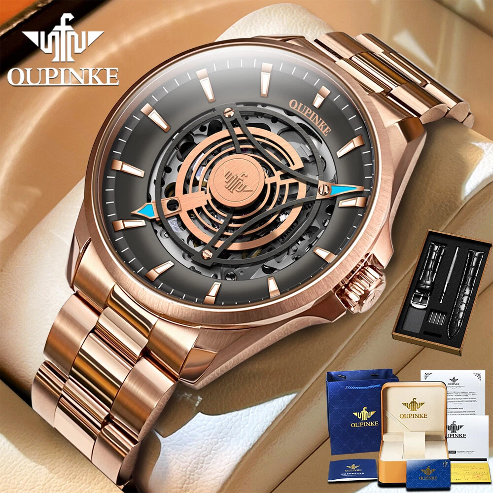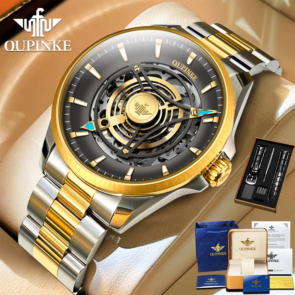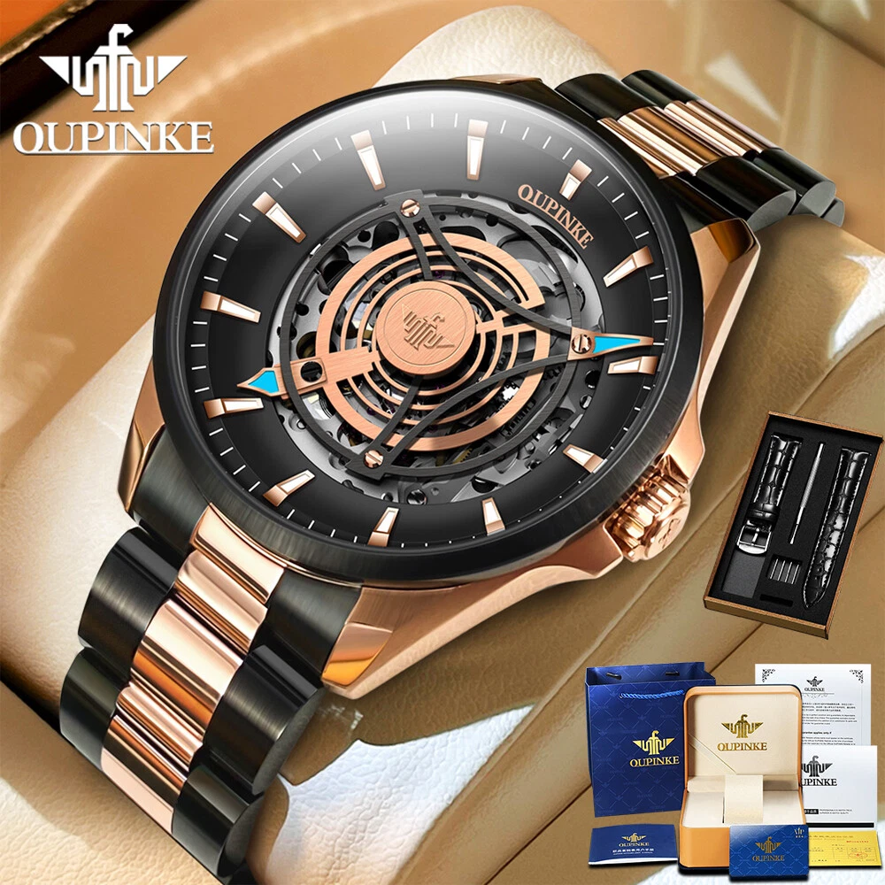 OUPINKE 3206 Automatic Mechanical Watch For Men Hollow 40mm Dial Original Hand
